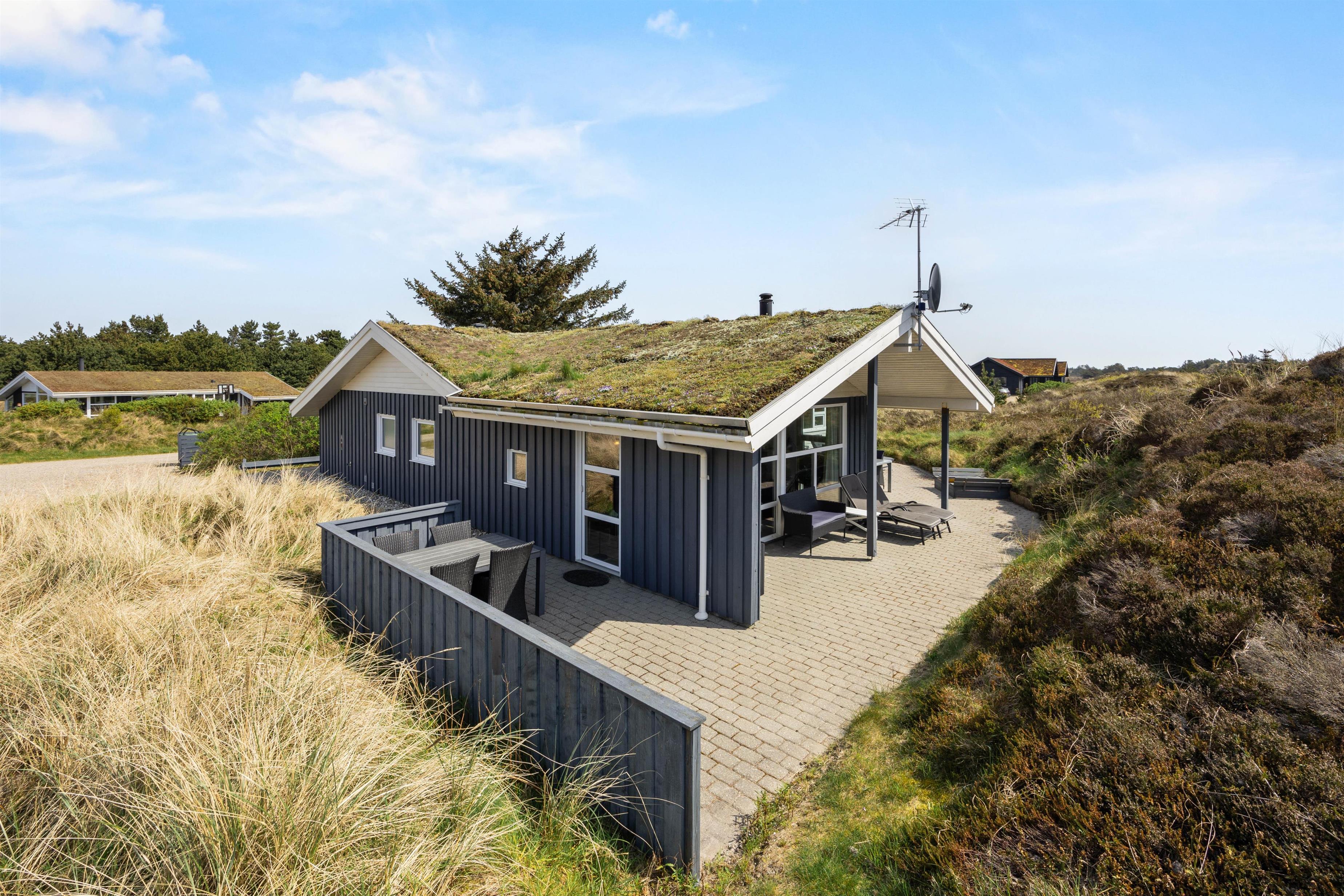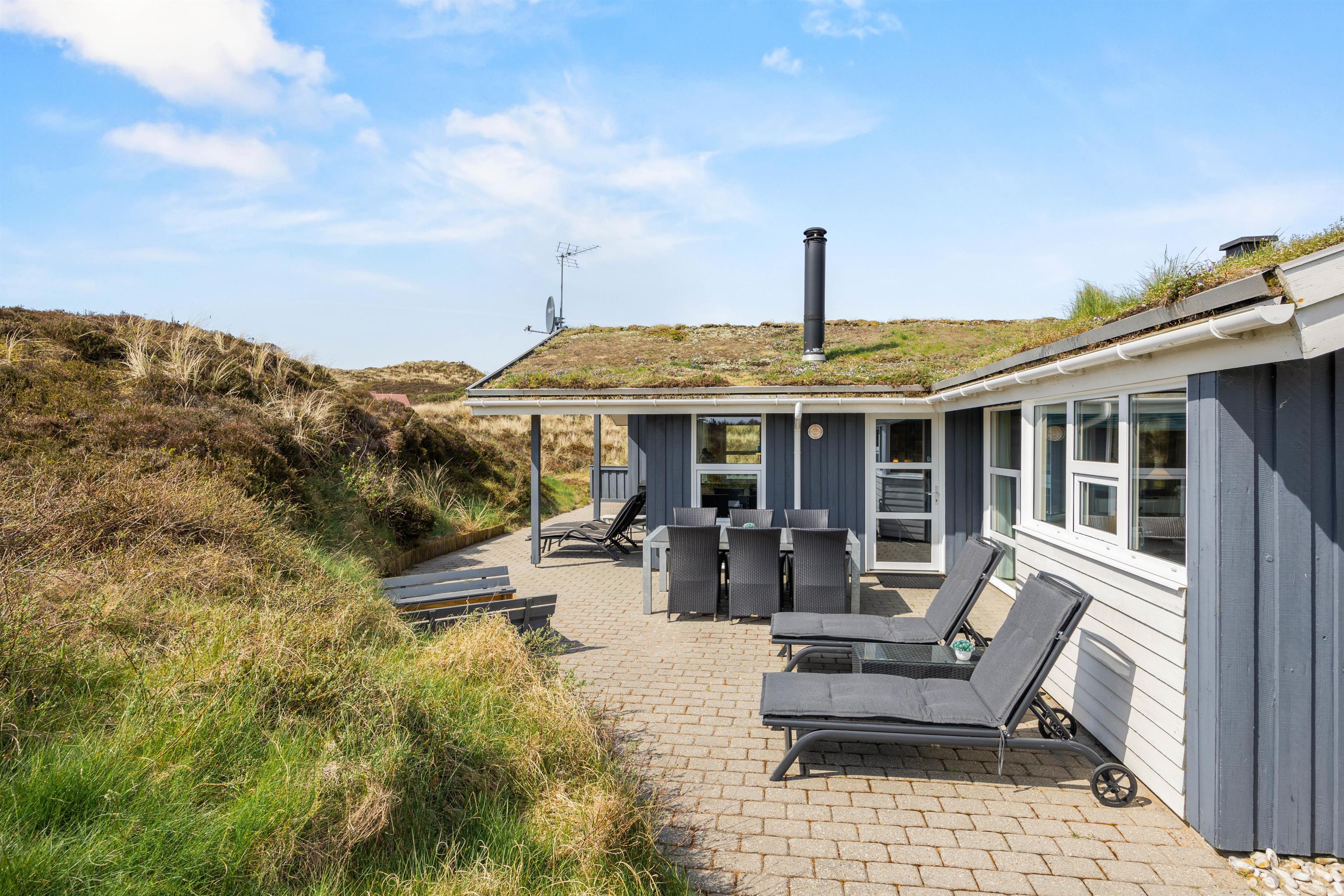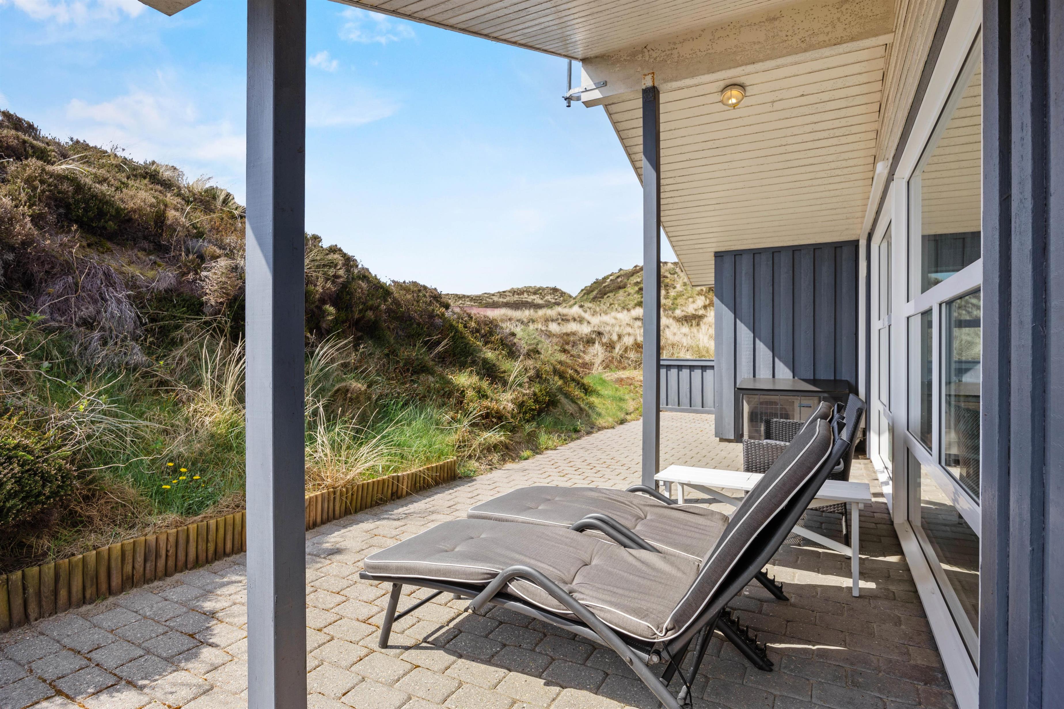 Ikke-ryger huset ligger rigtig dejligt midt i Henne Strands klitbeklædte ferielandskab. Høje klitbanker fungerer som afskærmning på terrassen, og giver jer ikke kun læ, men også god ro og fred til at nyde solen fra liggestolene.