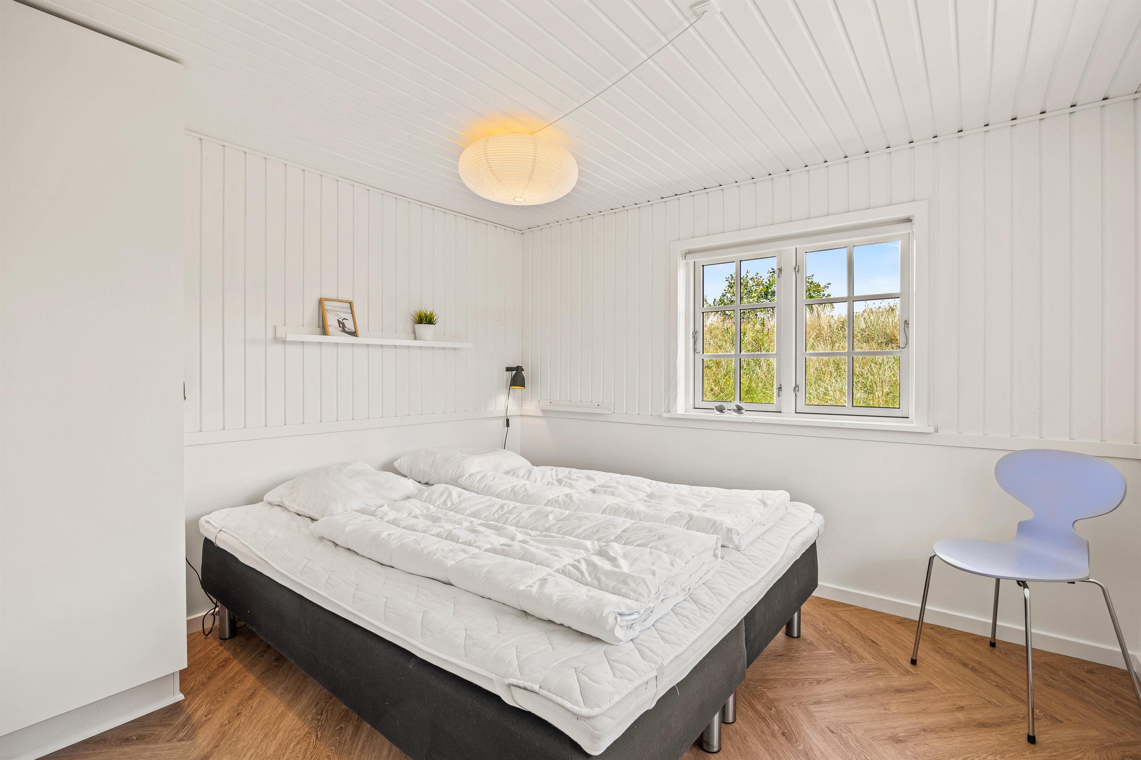 Så snart du træder ind af døren, føler du dig velkommen i dette nyindrettede feriehus med de lyse vægge. I det dejlige og godt udstyrede køkken med induktionskomfur kan I snildt tilberede lækre måltider, - opvaskemaskinen klarer resten, så der er tid til et familiespil ved husets spisebord eller til hygge i sofaen, mens ilden knitrer i brændeovnen og hunden hygger sig i sin kurv, efter en lang løbetur ved stranden.