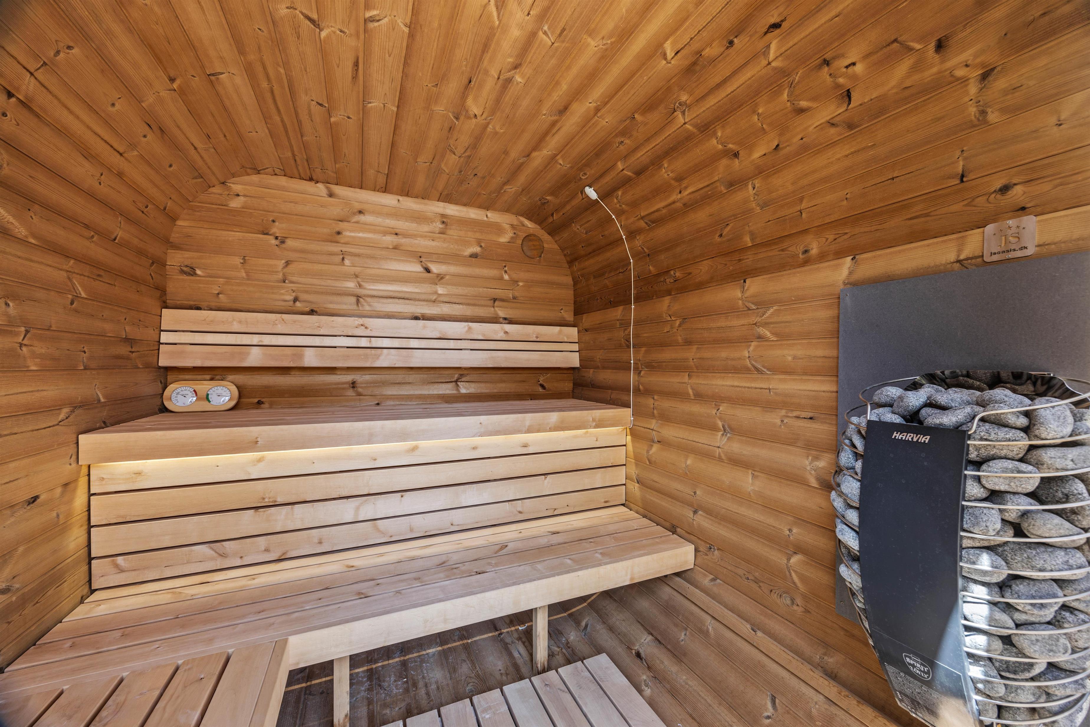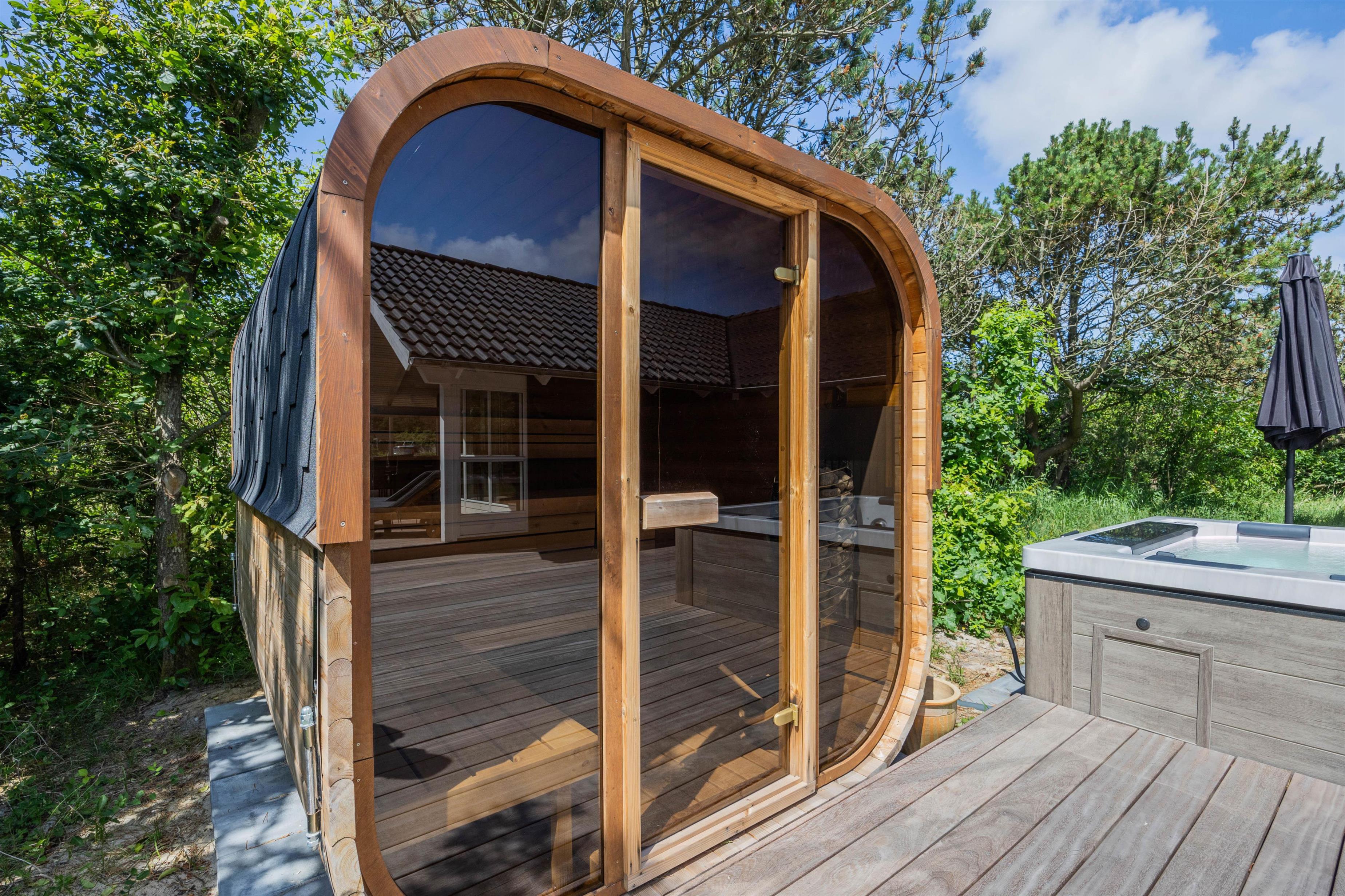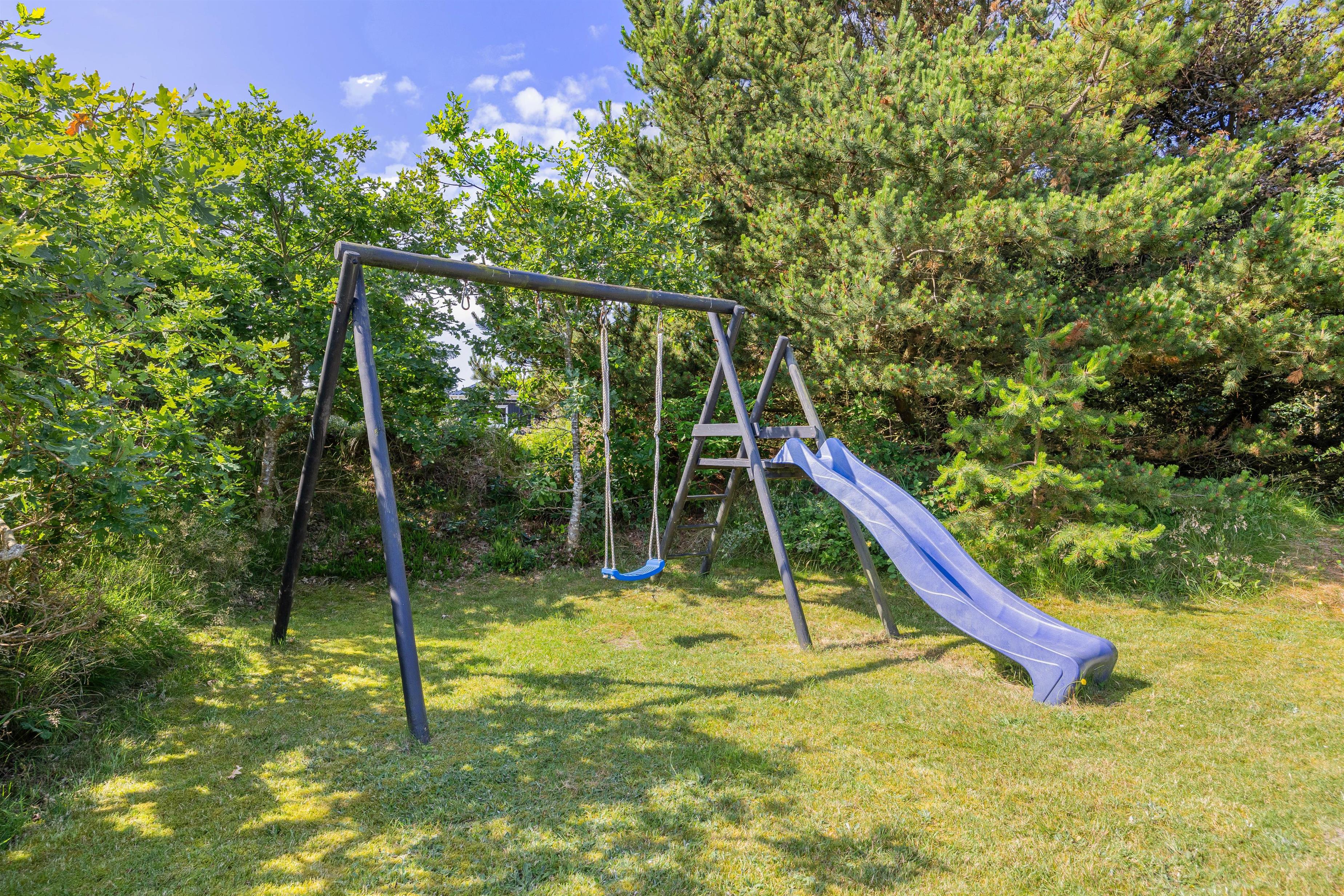 Godt afskærmet af træer og buske vil I på din store plænegrund kunne nyde afslappende feriedage - med både sandkasse og et legestativ med gynge er der rigeligt plads for også de mindste at boltre sig på. I kan også nyde en skøn udesauna, udespa og udebruser ved dette sommerhus.