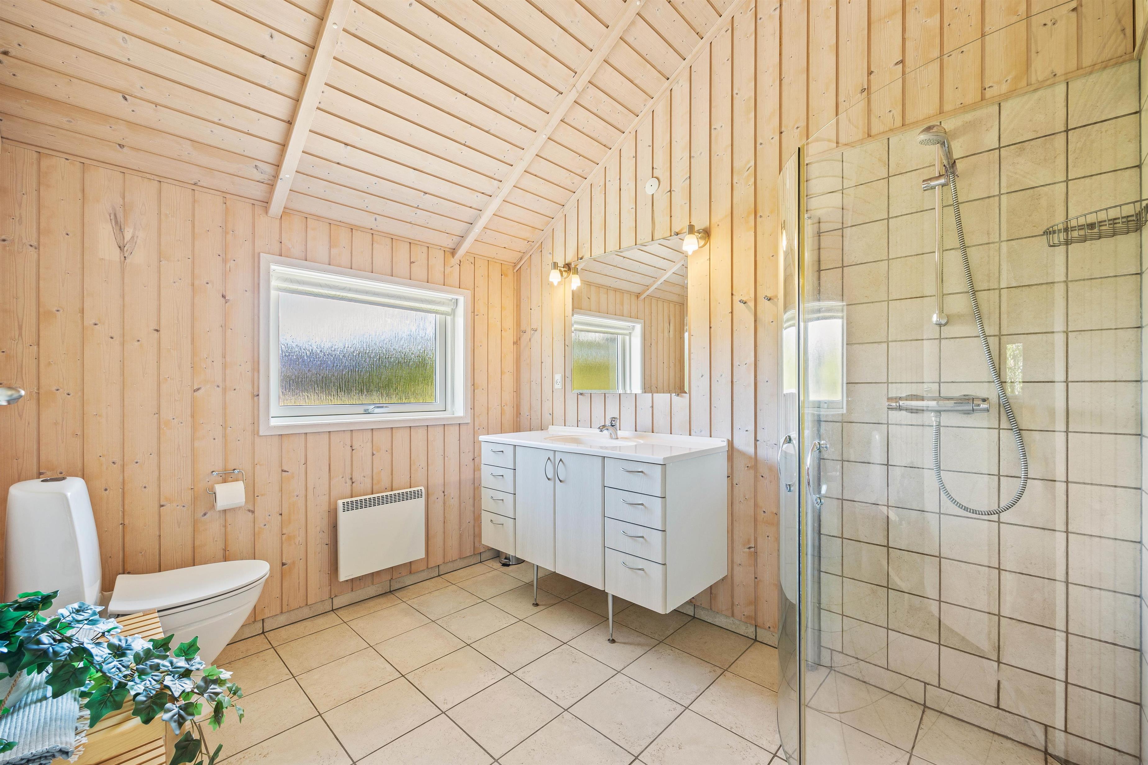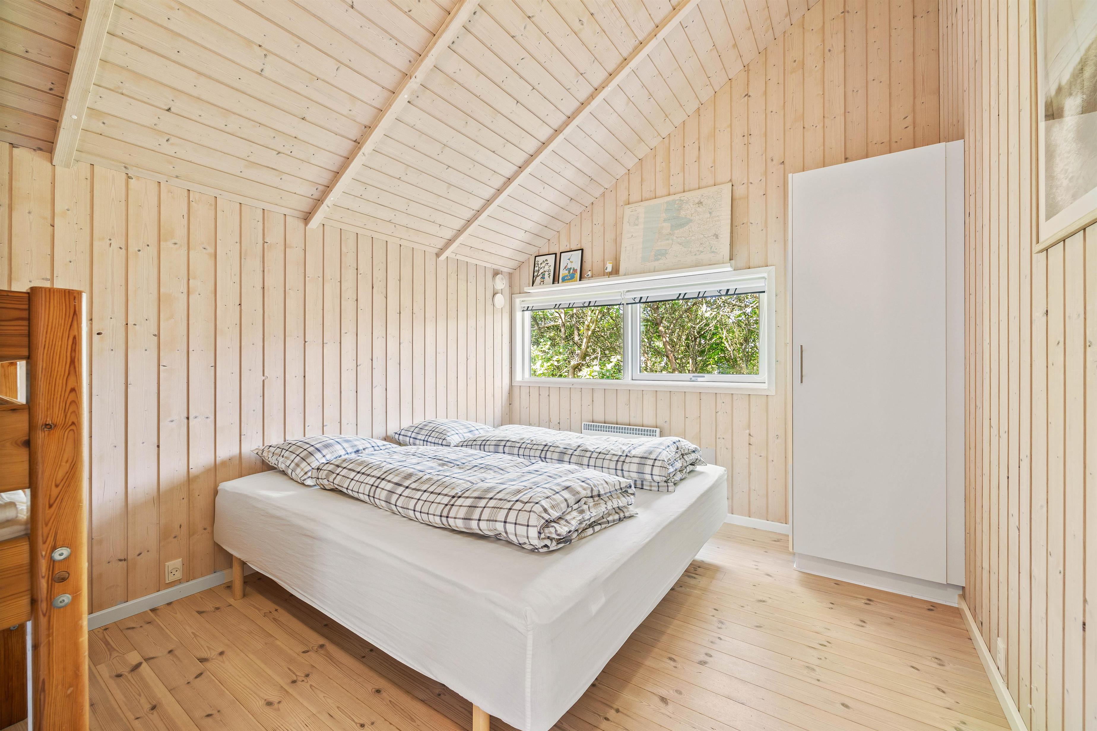 Det 121m² store sommerhus har 4 yderst rummelige soveværelser. Alle soveværelser er indrettet med dobbeltsenge, og det ene af soveværelserne indeholder, udover en dobbeltseng, også en køjeseng – et ideelt værelse til børnefamilien. Sommerhusets lyse og praktiske badeværelser har indlagt gulvvarme.