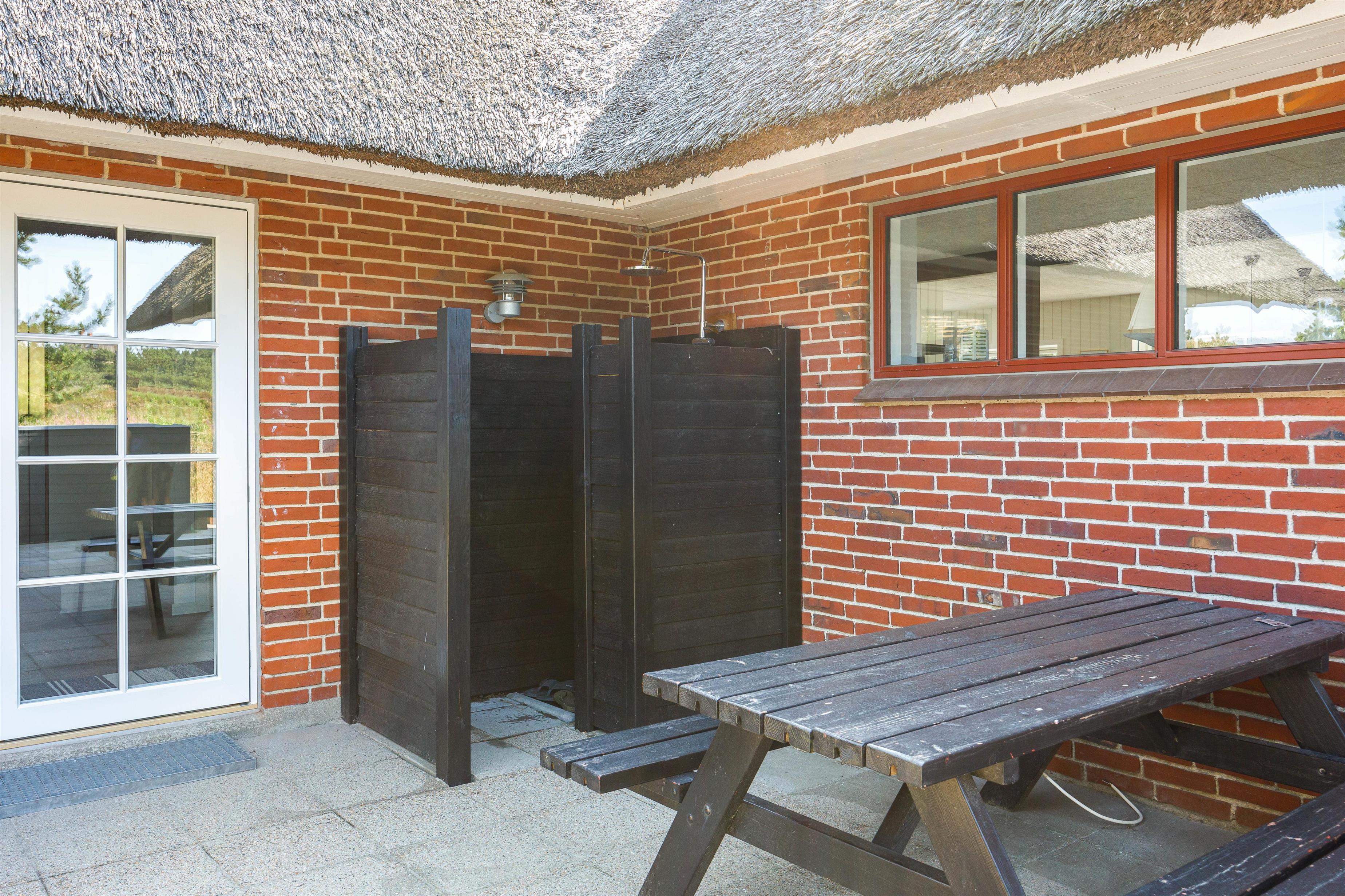 Det røde murstenshus med stråtag, der har gennemgået en stor renovering i 2021 passer så fint ind i landskabet med lyng og fyrretræer. Her er stemningen lagt til en hyggelig og afslappende ferie.