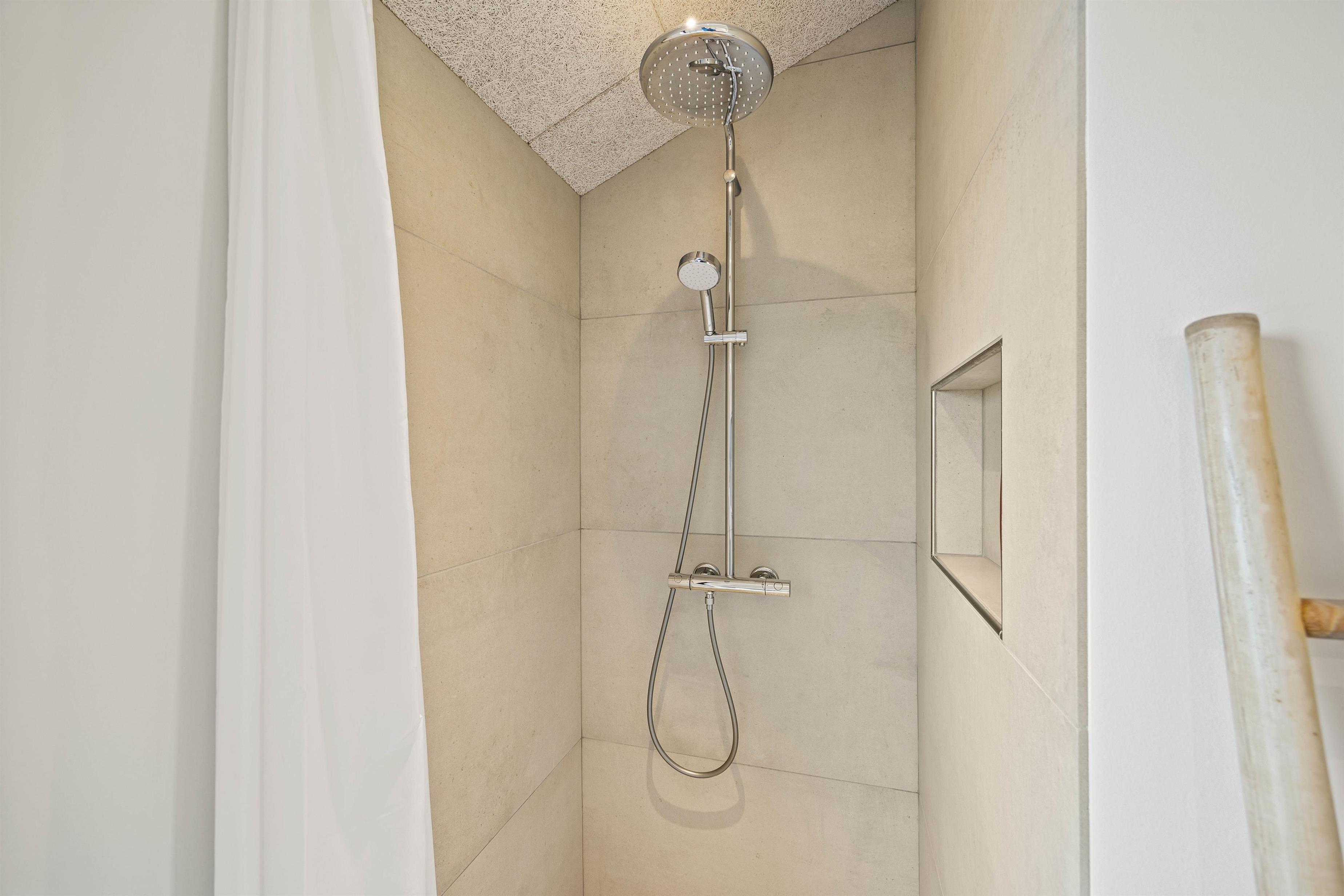 De 2 praktisk indrettede badeværelser med gulvvarme gør, at I ikke behøver at stå i kø til morgenbadet. Og et af badeværelserne er endda udstyret med et dejligt badekar.