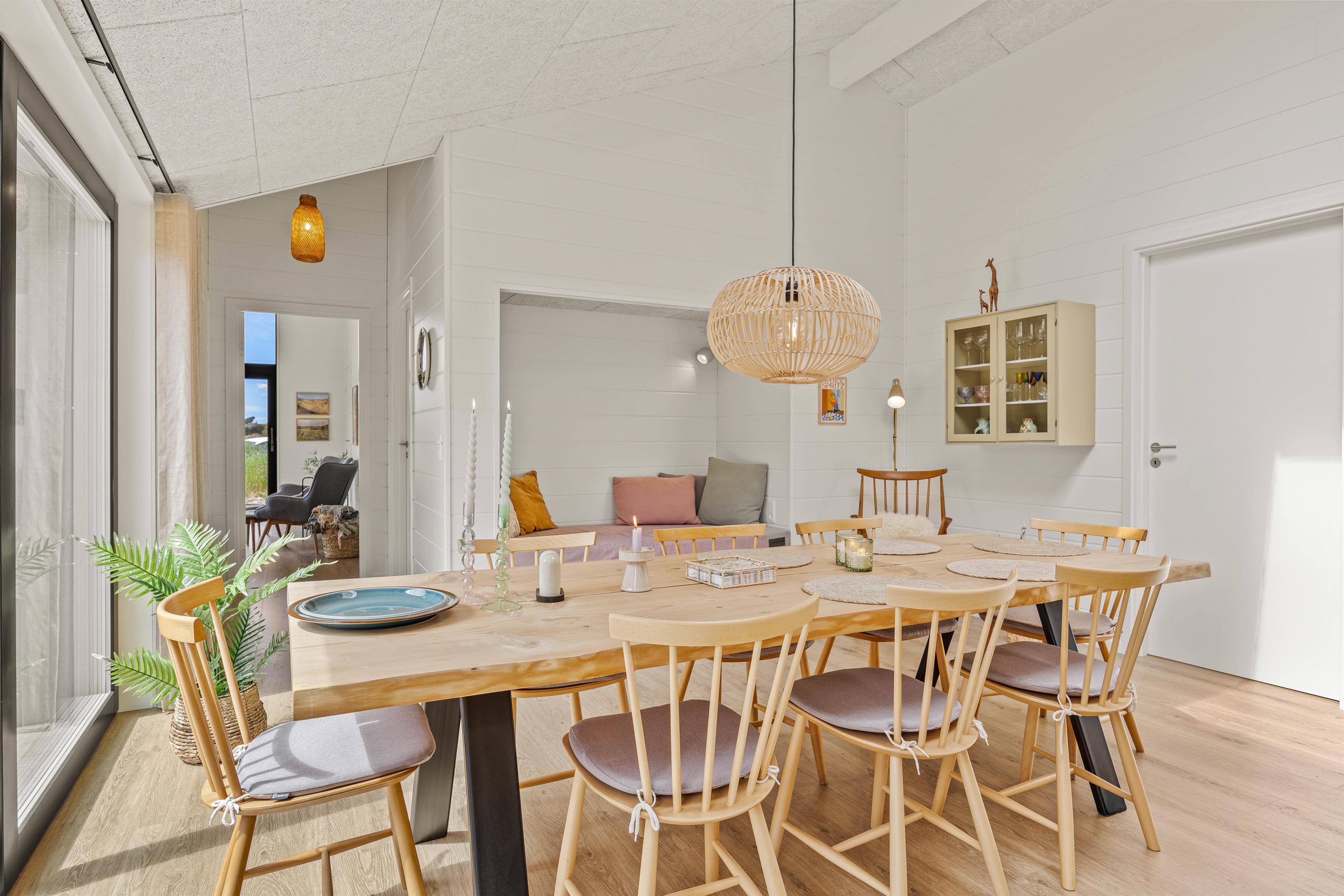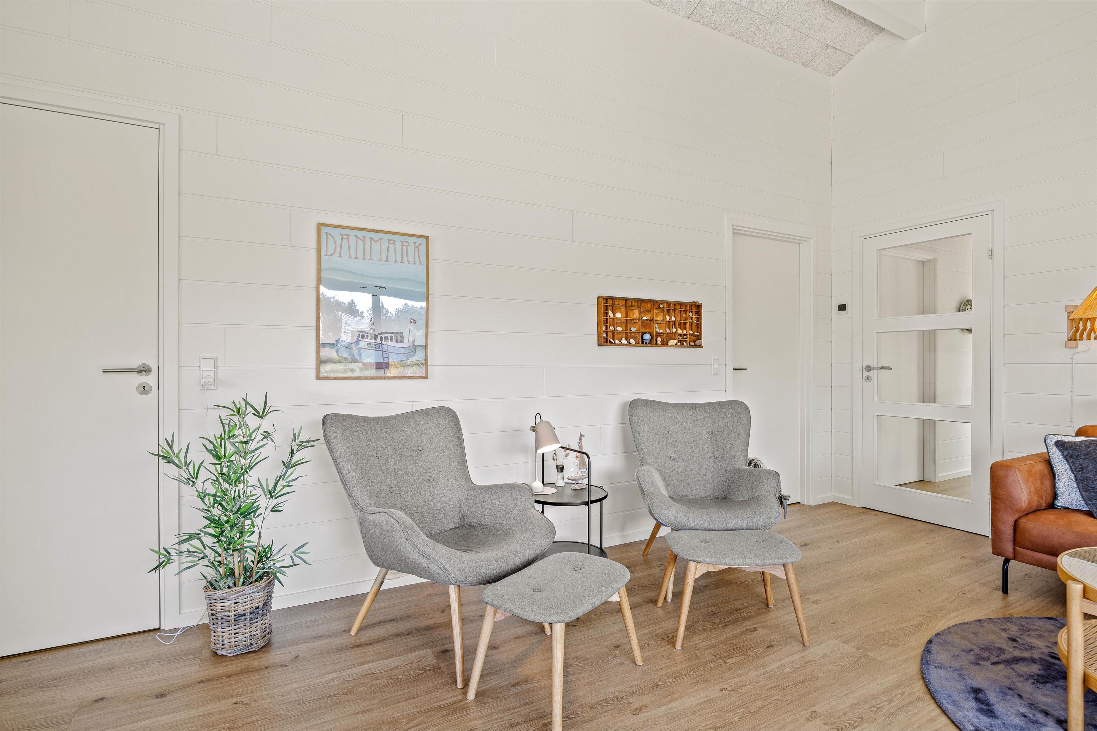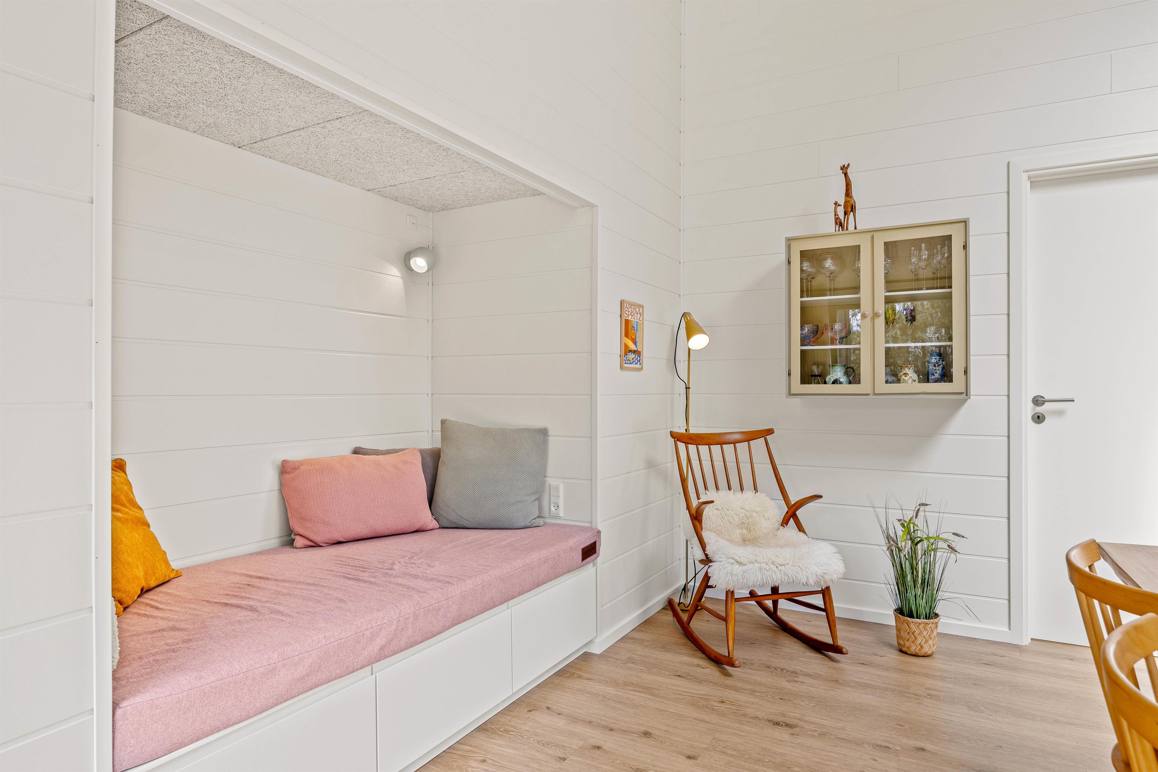 Dette moderne indrettede sommerhus har meget at byde på. I den rummelige stue kan I hygge jer med tv, arrangere en spilaften eller læse en god bog. Det moderne køkken er veludstyret og indbyder til at lave madaftener sammen. Særligt praktisk her er opvaskemaskinen, mikrobølgeovnen, et rummeligt køleskab (182L) og en fryser (86L). Og køkkenets skønne alkove med bænk kan også bruges til at slappe af for en stund - måske for at koble af ved at se lidt fjernsyn?