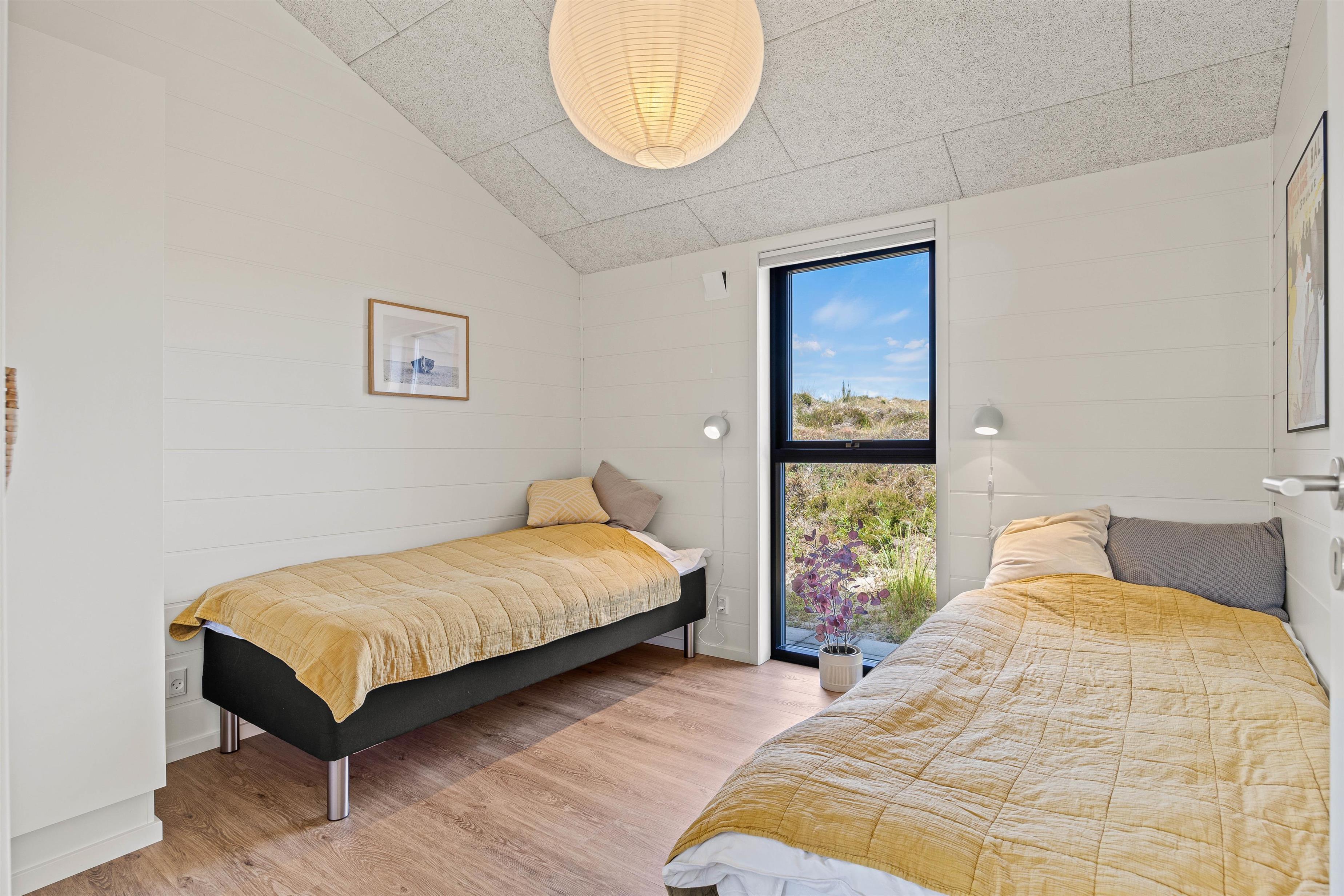 Sommerhusets 4 soveværelser er opdelt i 3 værelser med dobbeltsenge og 1 værelse med 2 enkeltsenge. De komfortable senge giver i den grad mulighed for at få en rolig og afslappende søvn i den friske vesterhavsluft.