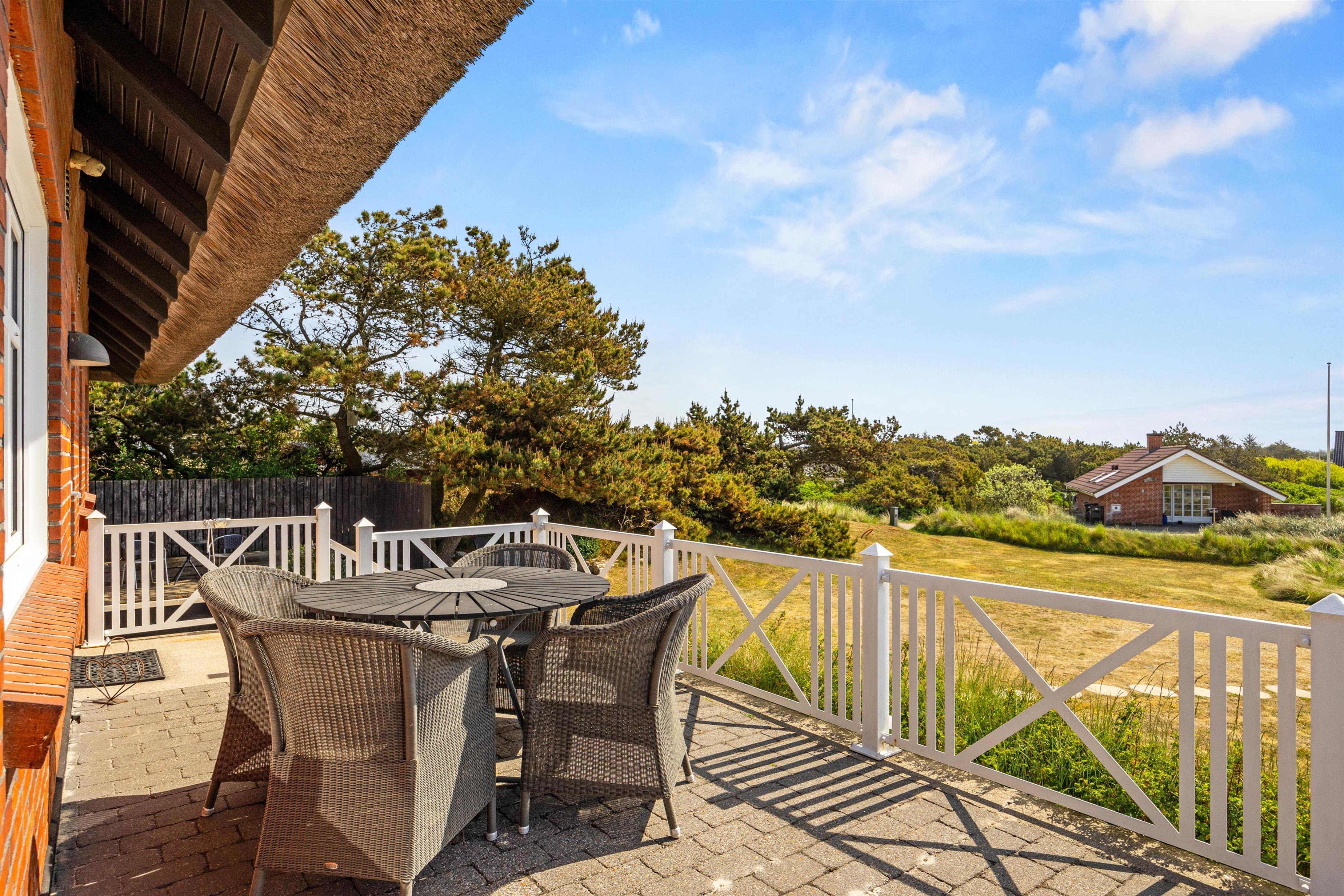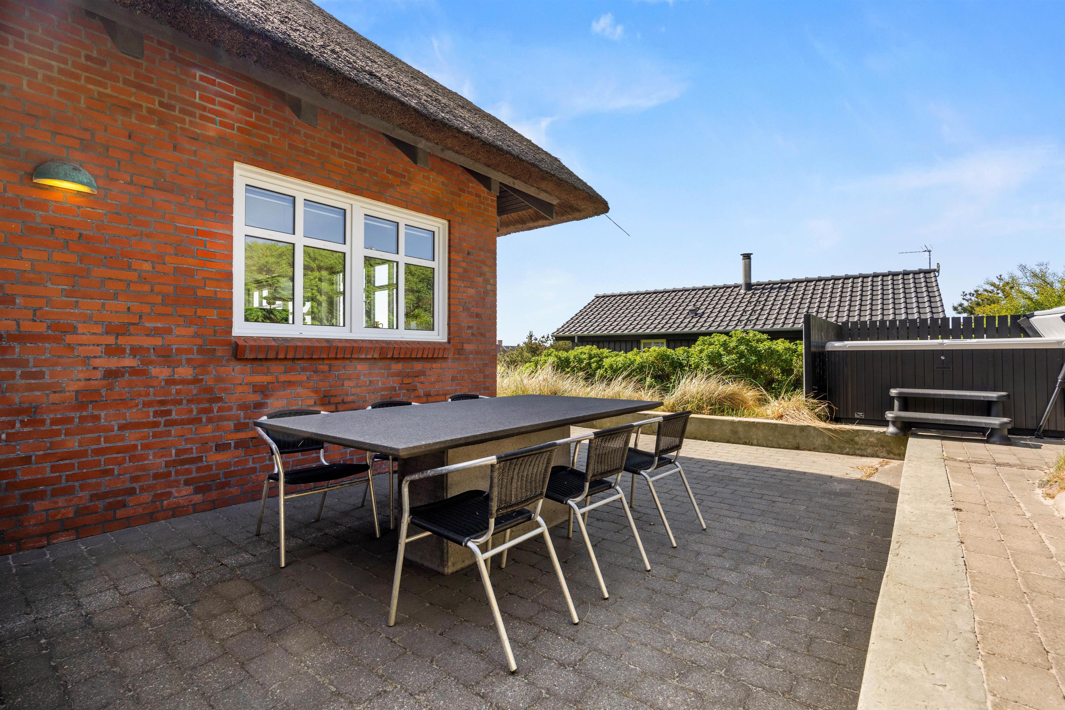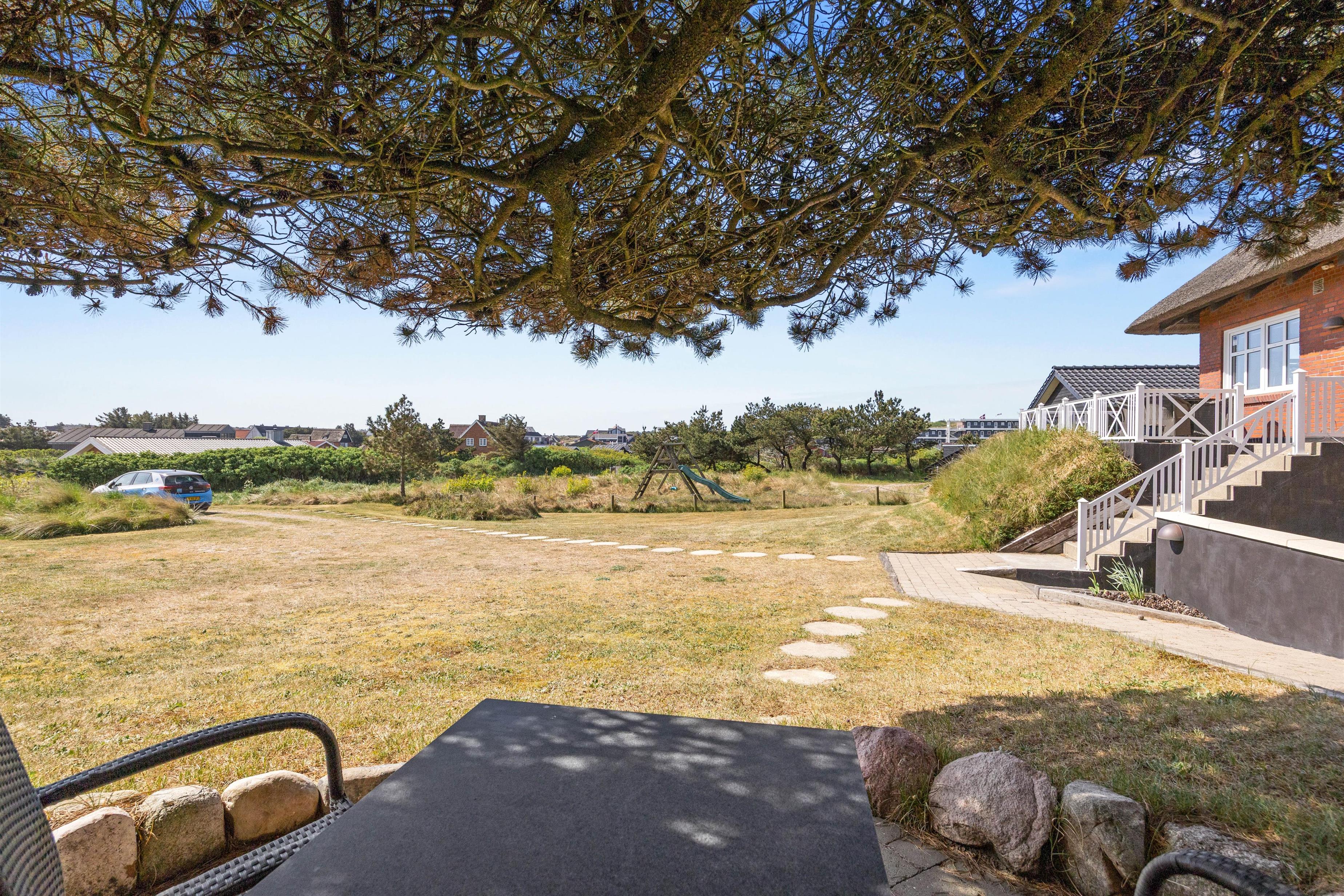 Den kuperede grund omkring sommerhuset giver mulighed for at nyde det naturlige terræn, der er kendetegnende for området omkring Henne Strand. På den åbne terrasse er det nemt at finde afslapning i de komfortable havemøbler, mens I nyder den friske luft og den fredelige atmosfære. For dem, der ønsker lidt ekstra forkælelse, er udespaen en uovertruffen highlight, der kan give en følelse af luksus. Sommerhuset tillader også, at I kan tage en enkel husdyr med, så også jeres firbenede ven kan være en del af ferien.