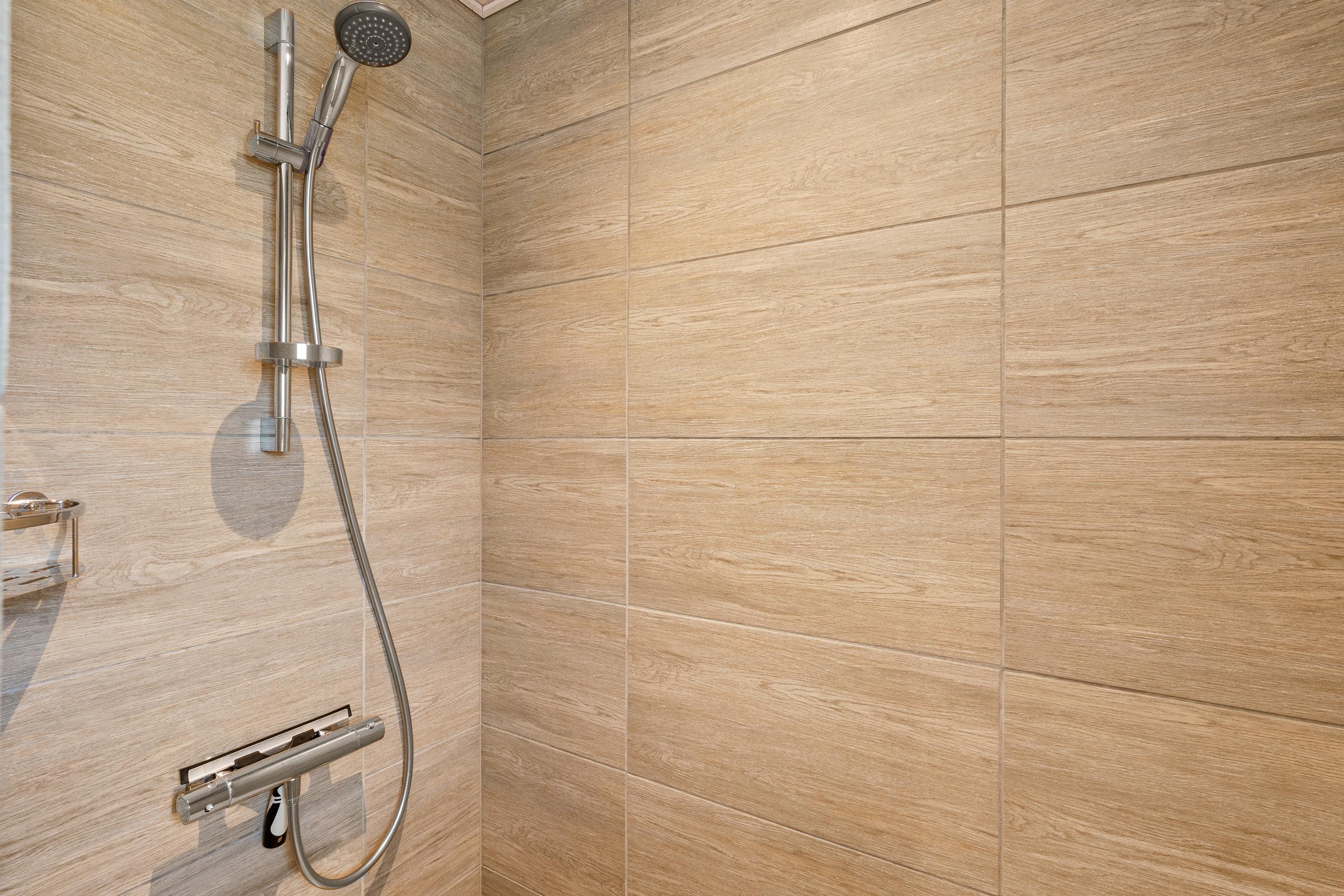 I det 155 kvadratmeter store sommerhus er der hele 2 badeværelser. Dermed slipper I for at skulle stå i kø om morgenen, og I slipper samtidig også for at fryse tæerne, for begge badeværelser er udstyret med gulvvarme.