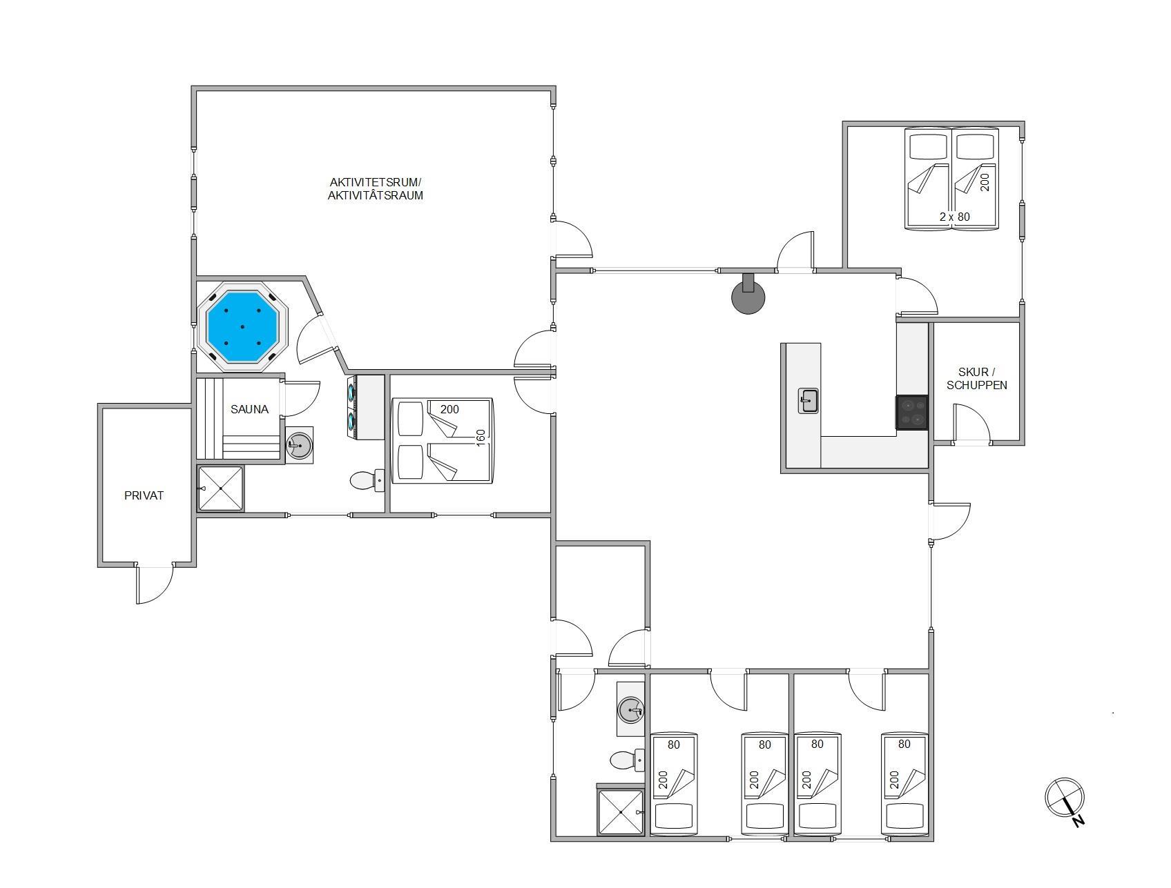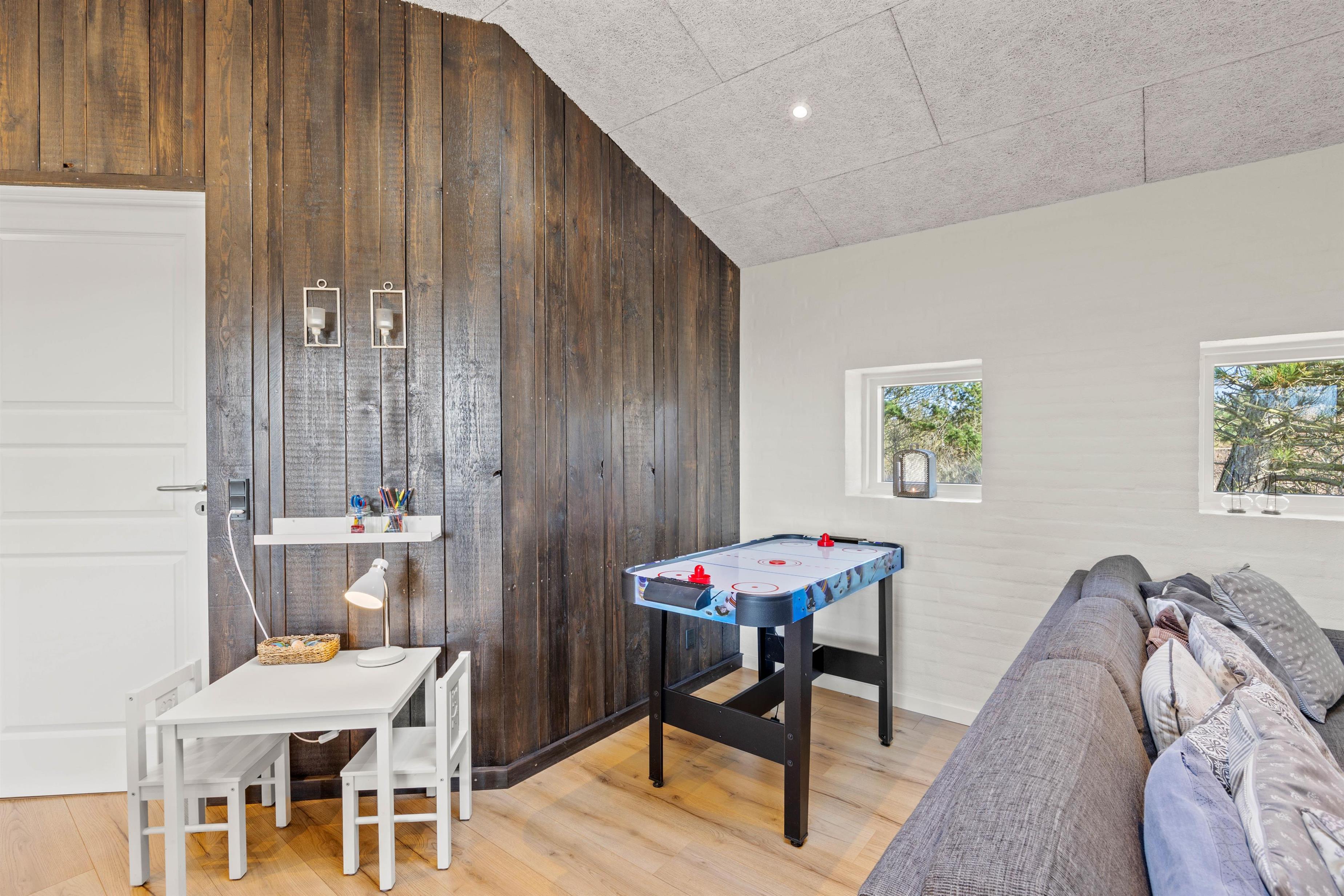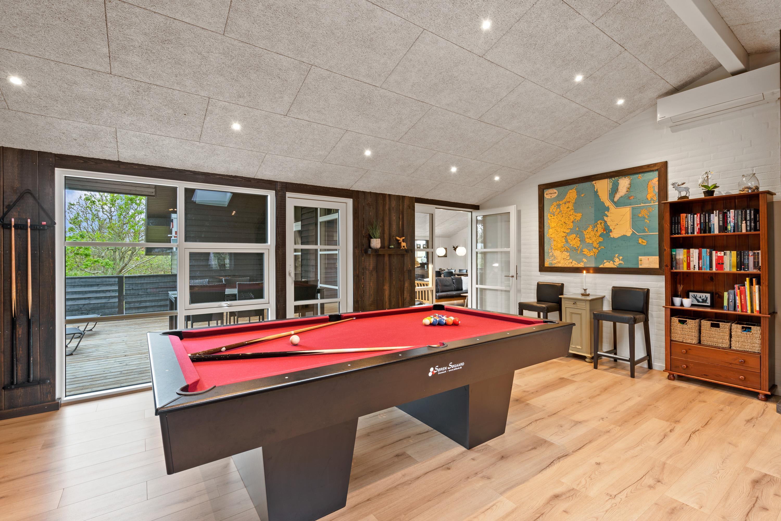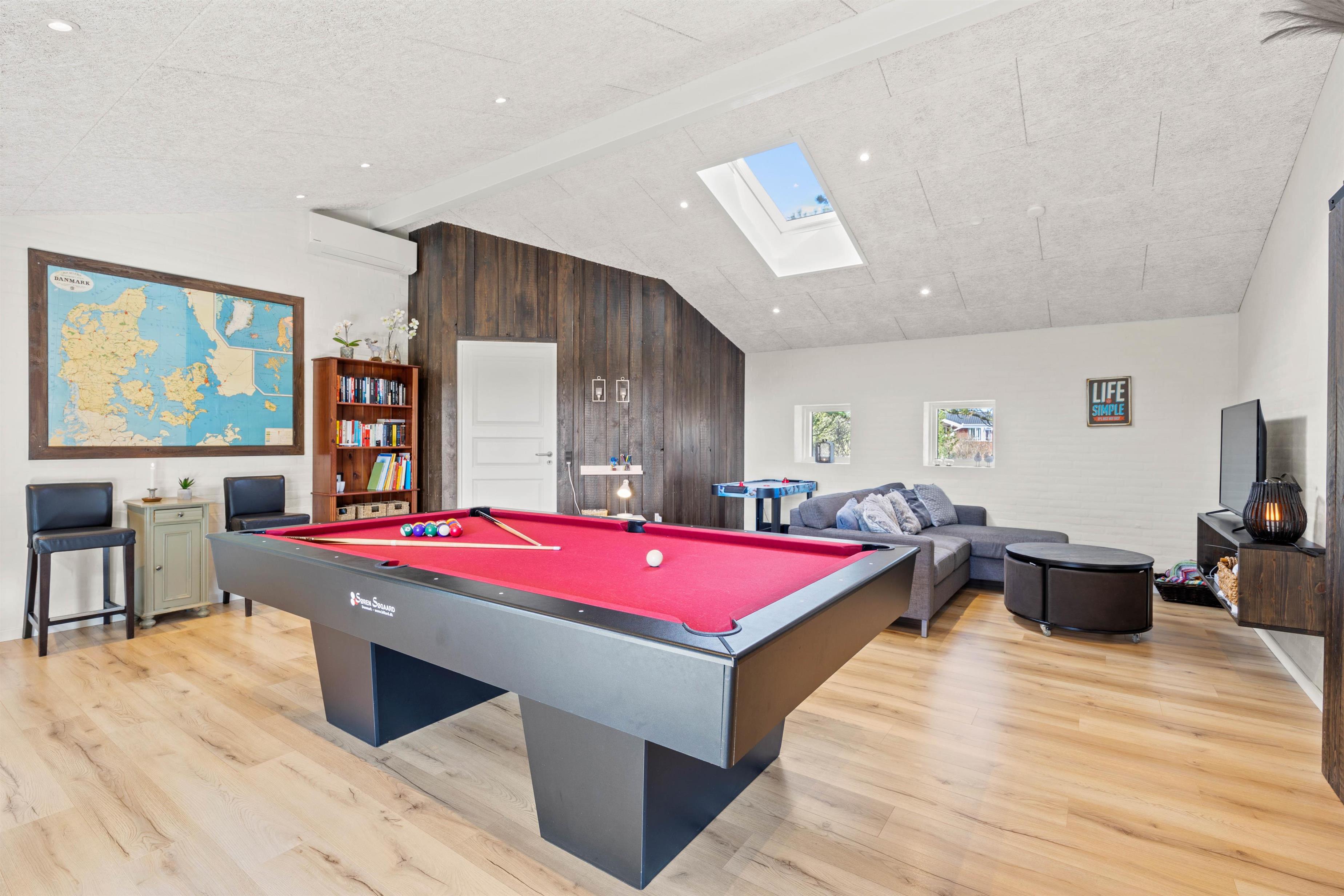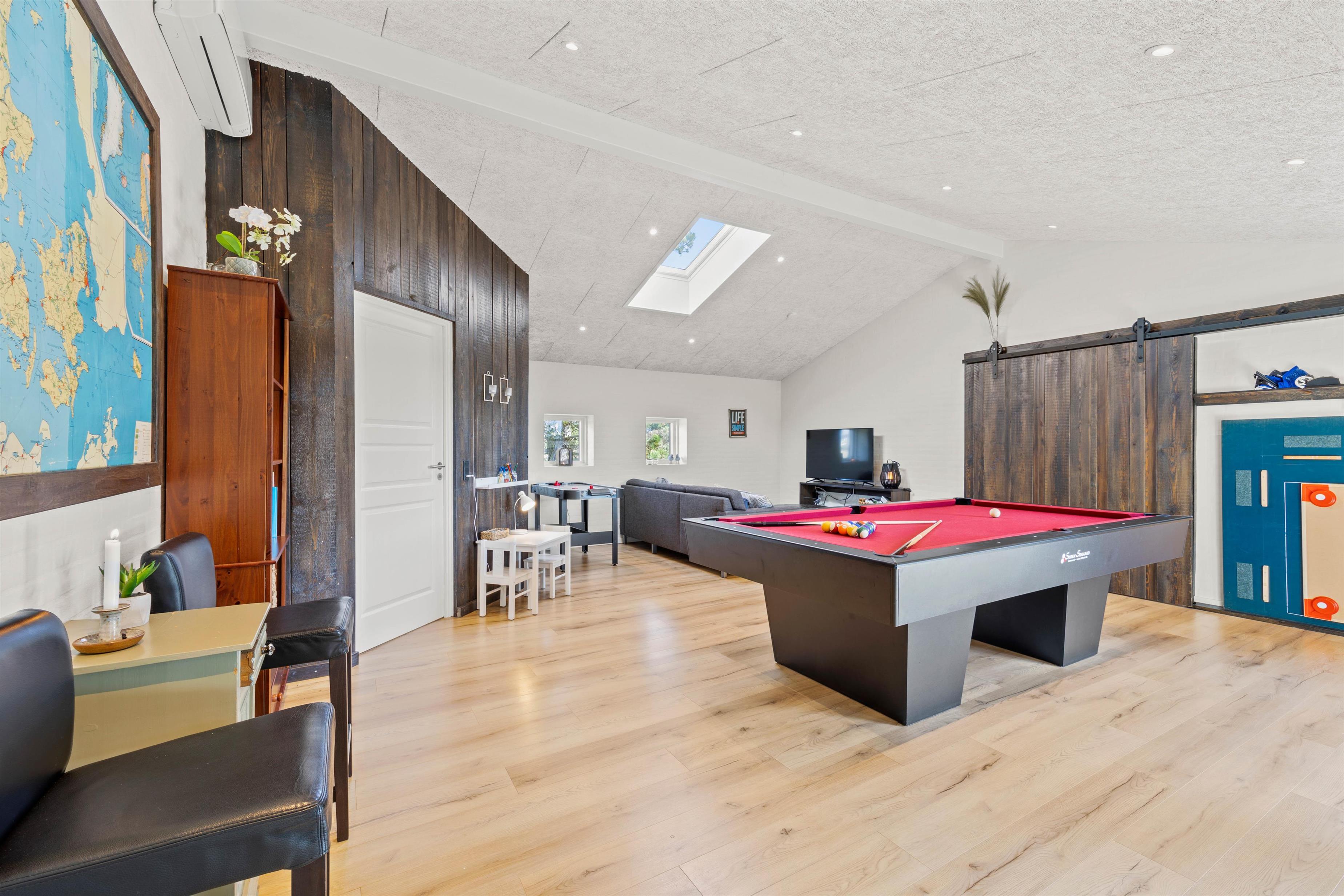 Et andet højdepunkt i sommerhuset er aktivitetsrummet. Her er rammerne sat for mange timer i underholdningens tegn, hvor I kan give jer i kast med at spille billard, bordtennis og airhockey. I kan også afholde en turnering for at finde den helt store spilmester – måske på en aften med snacks og drikkevarer til?