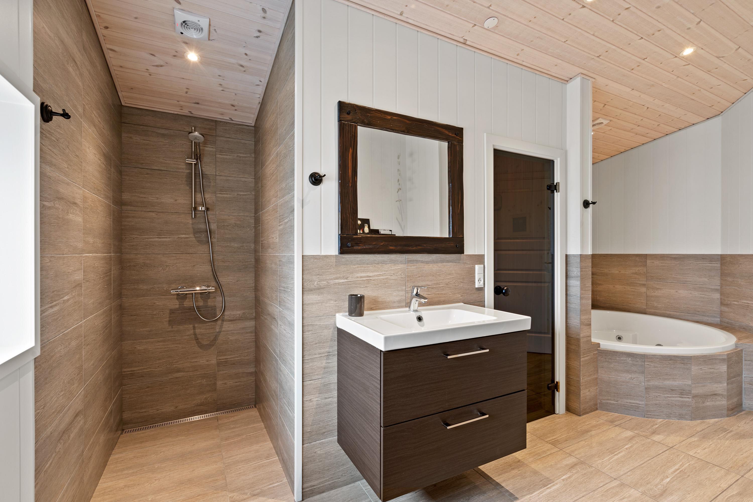 På det ene af badeværelserne kan I desuden afholde en lille wellnesssession, hvor I bliver forkælet med ekstra meget afslapning på ferien. Her er der nemlig en lækker spa og en skøn infrarød sauna, som står klar til at hjælpe jer med at komme helt ned i gear.