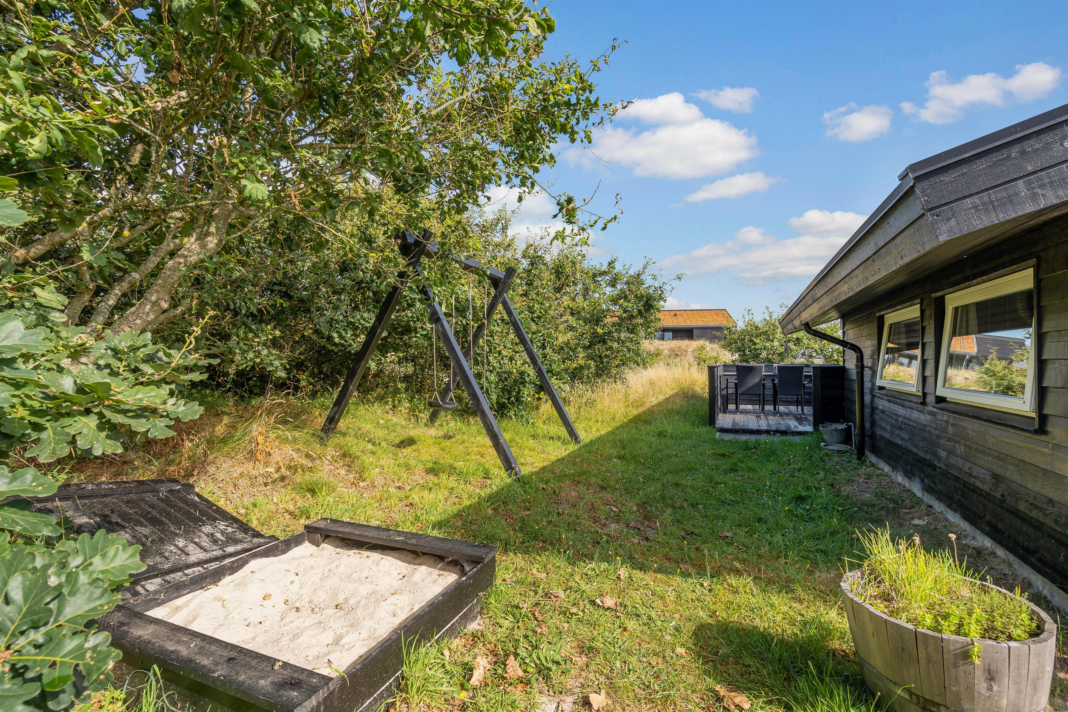 På terrasserne kan I sætte jer til rette i havemøblerne og liggestolene, slappe af og se til, mens børnene leger på grunden, hvor der både er gyngestativ og sandkasse til dem. Om aftenen kan hele ferieholdet samles på terrassen til en middag på grillen med lækre bøffer og kolde drikkevarer.
