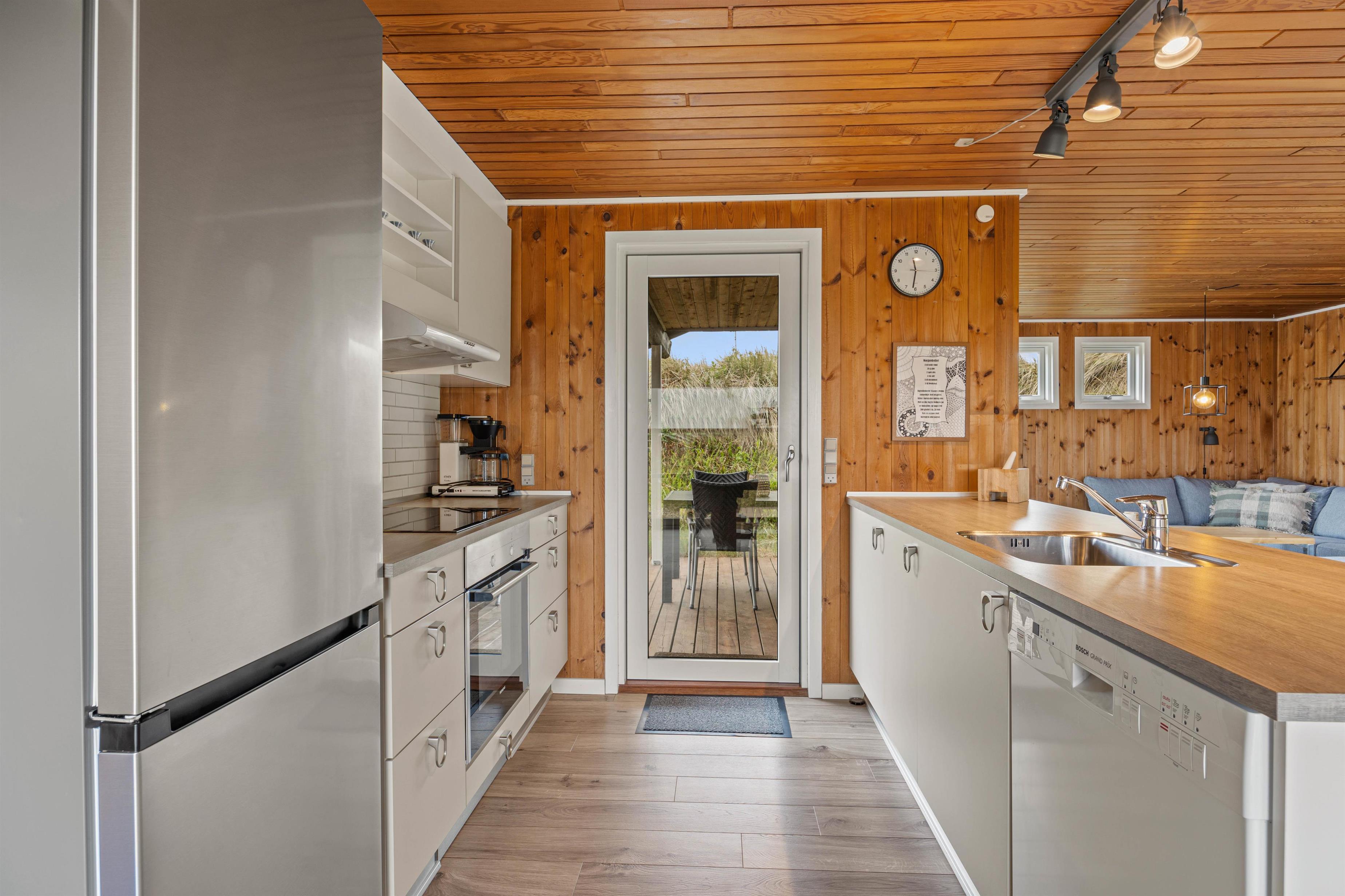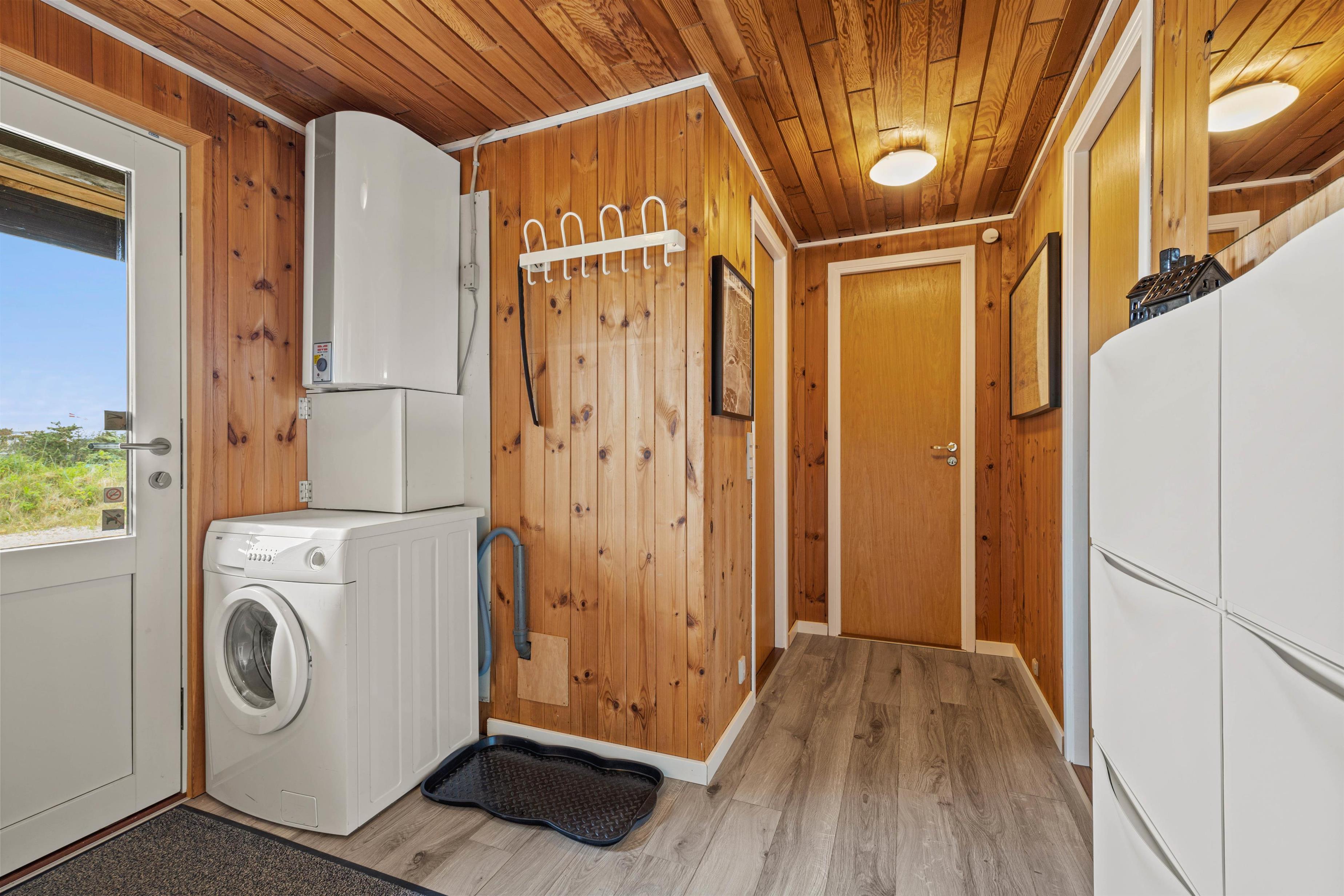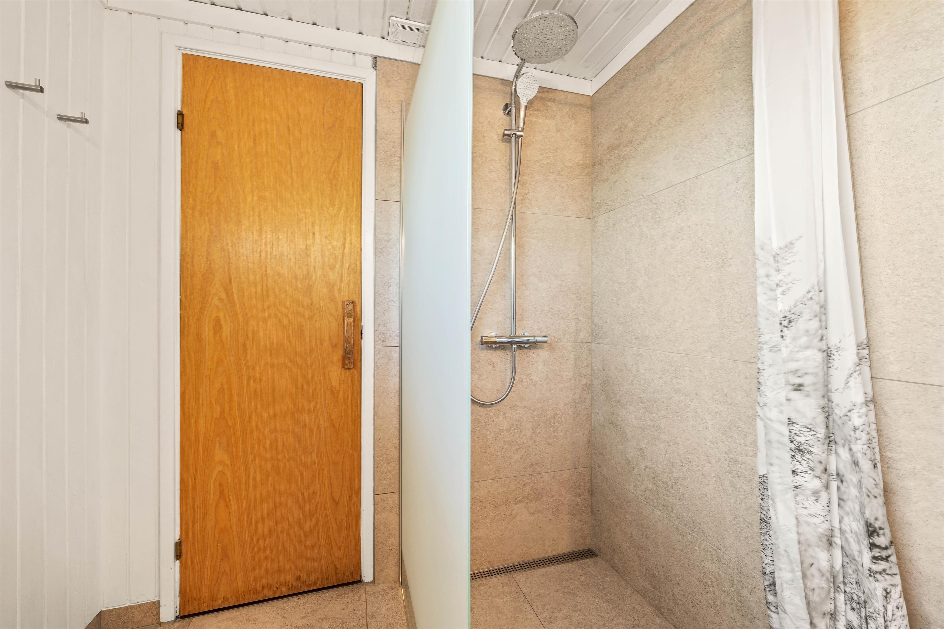 Sommerhuset har 3 soveværelser, hvoraf 2 er udstyret med en dobbeltseng. Det 3. værelse har en køjeseng. Badeværelset har gulvvarme, og her finder I også sommerhusets højdepunkt – en dejlig sauna, hvor I kan slappe af og varme jer op efter en lang tur på stranden.