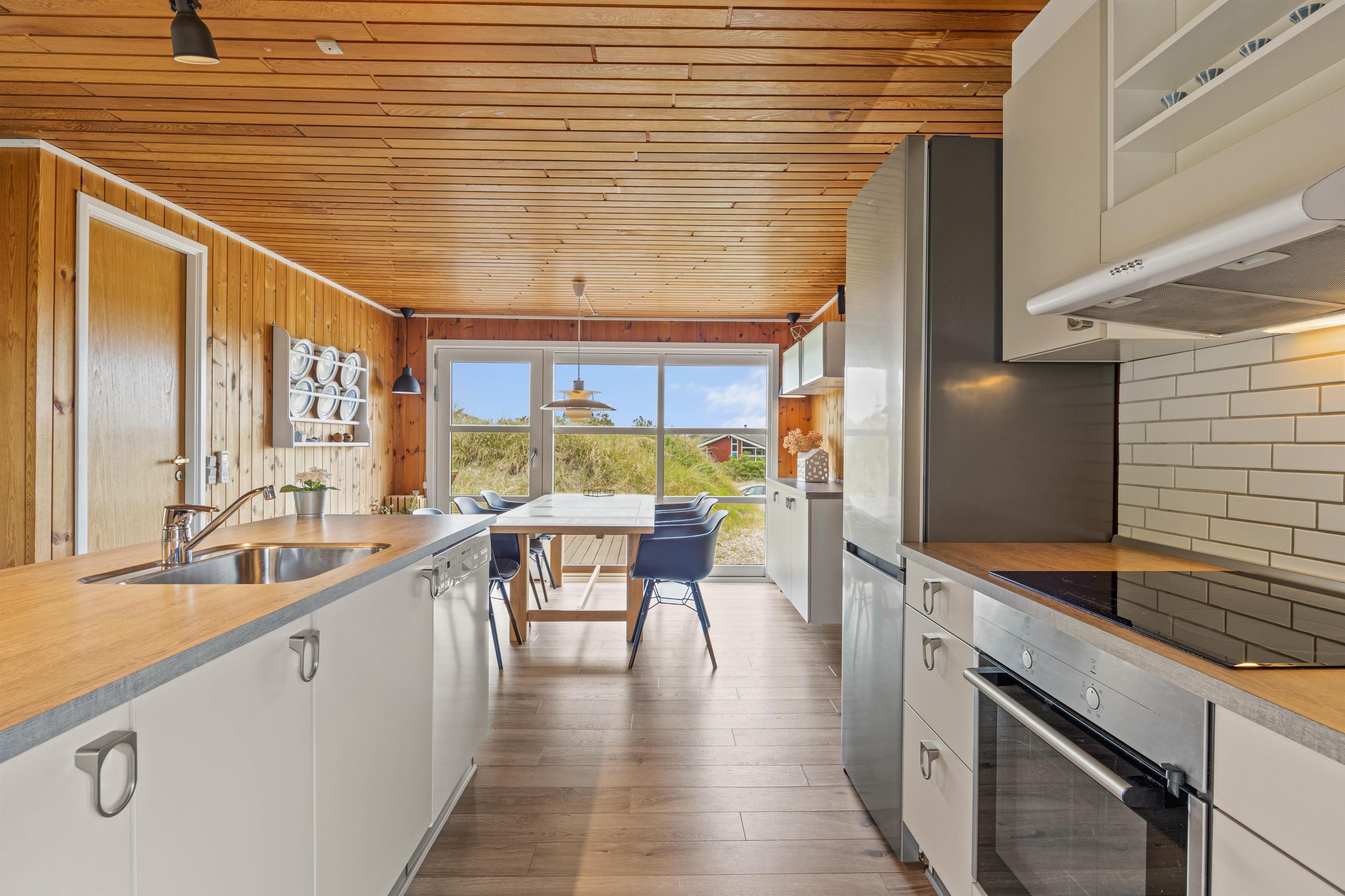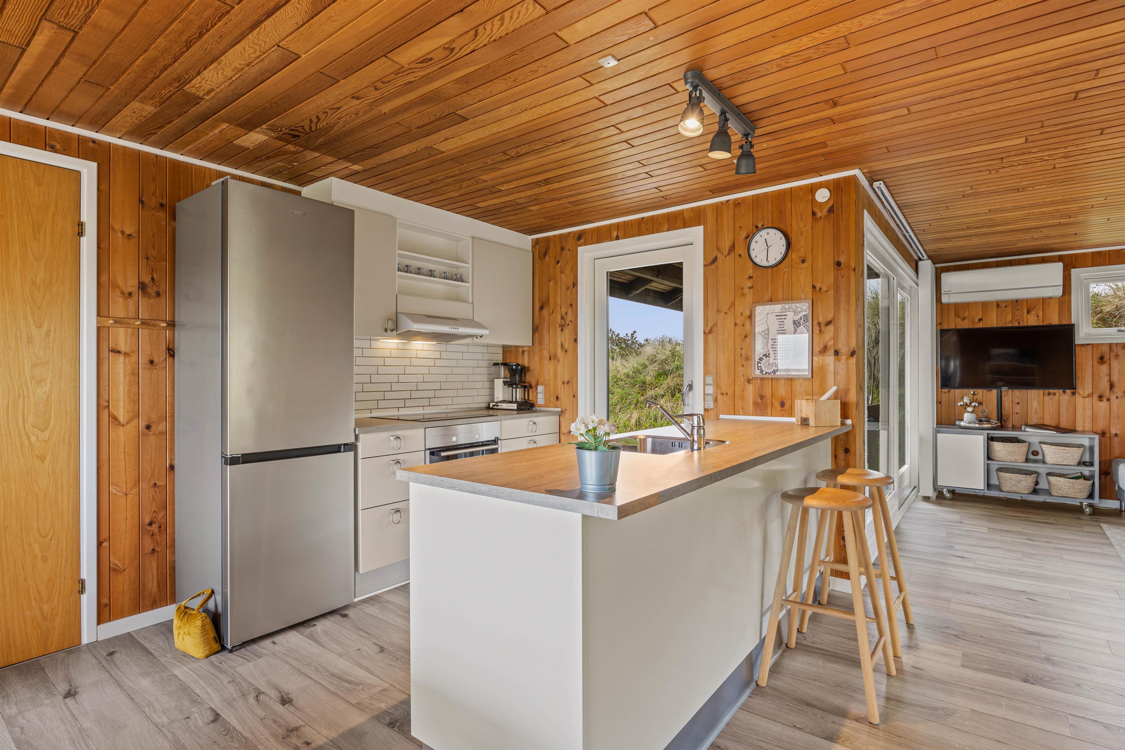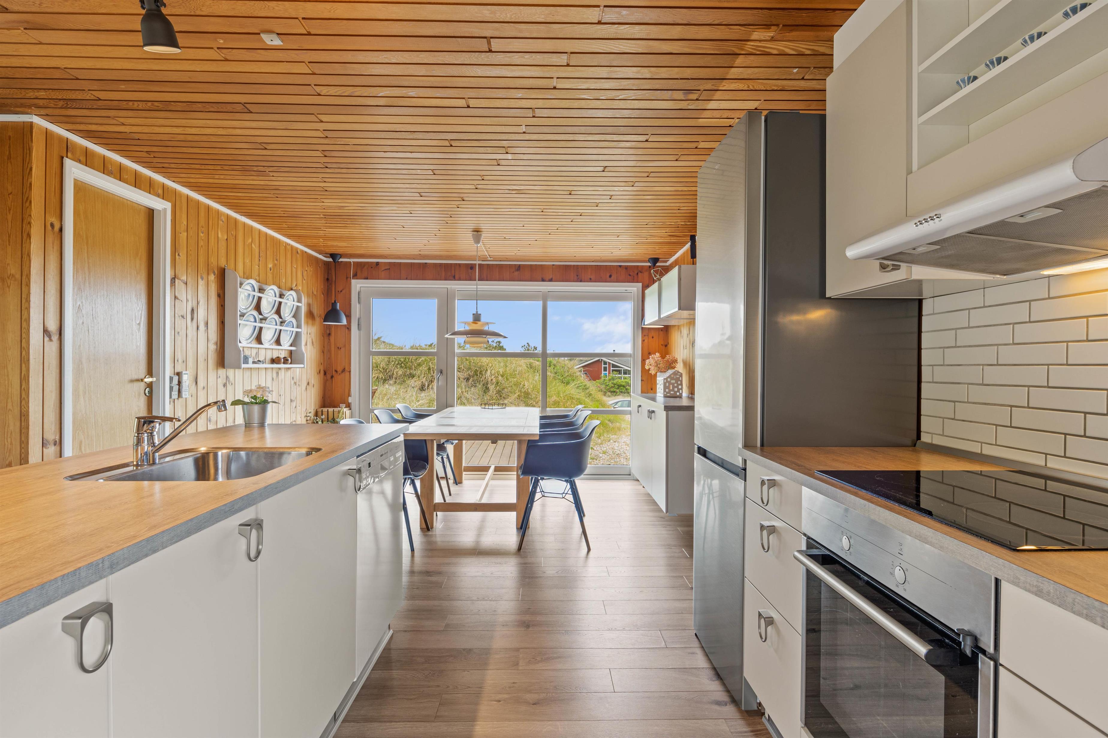 Med sine 81m2 byder dette sommerhus, der er renoveret i 2018, jer velkommen til ægte sommerhusstemning. Sommerhusets hjerte, og dermed feriens samlingspunkt, er feriehusets opholdsstue, som forbinder køkkenet, stuen og spiseområdet. Her kan I planlægge de næste feriedage, mens nogle af jer benytter det veludstyrede køkken eller slapper af ved at se tv. TV’et er tilsluttet Chromecast.