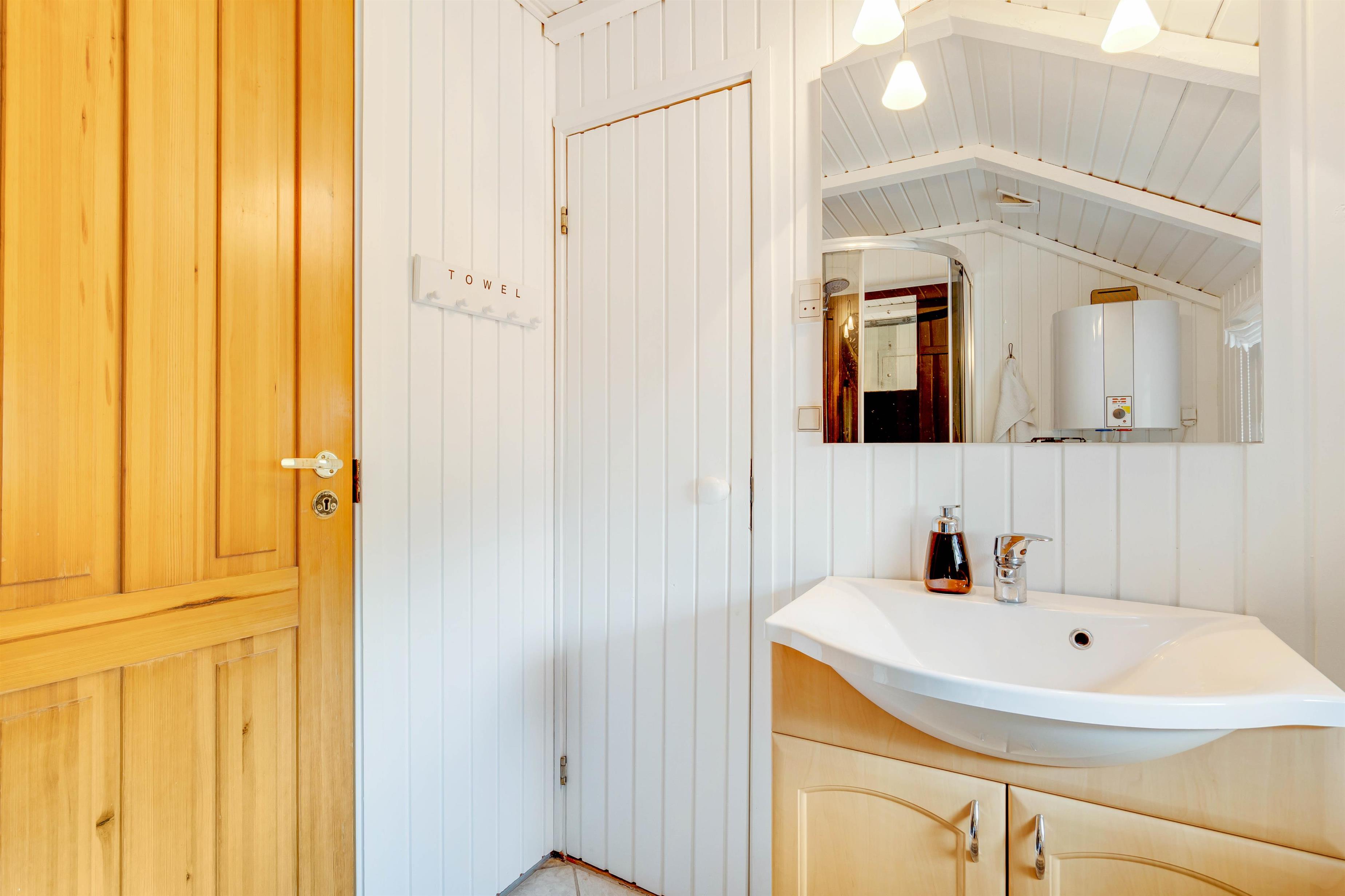 Sommerhuset har hele 2 badeværelser, hvor begge er med gulvvarme. Hvis I er 2 familier, som holder ferie sammen, så kan hver familie have deres eget badeværelse.