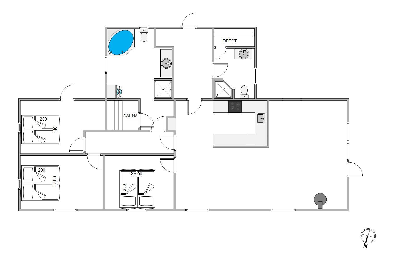 I sommerhusets store badeværelse finder I også en spa og en sauna, hvor I rigtigt kan mærke følelsen af ferie. Denne ekstra wellness vil helt sikkert lade jeres batterier op, så I kan være klar til en ny dag.