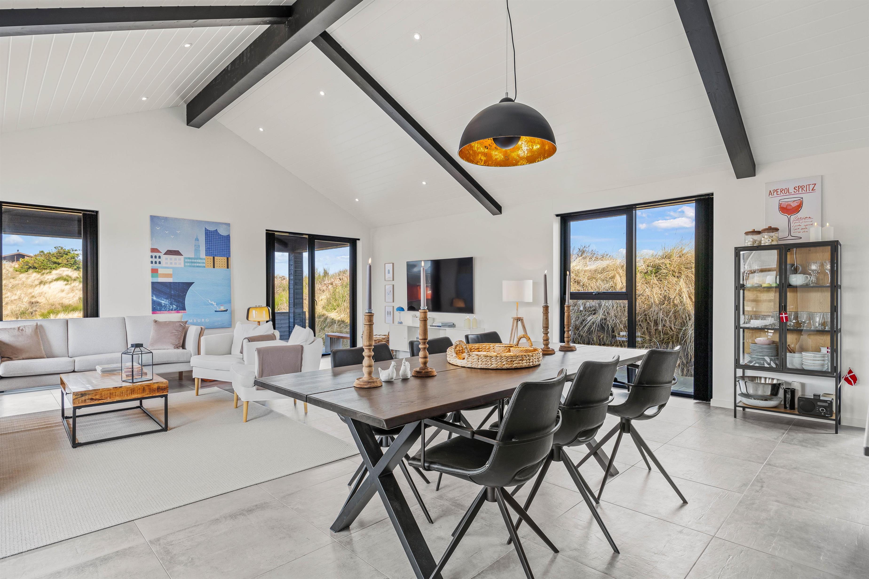 Hvis jeres næste ferie skal byde på masser af afslapning og gerne foregå tæt på havet, så er dette moderne sommerhus på Hedelærkevej 14 i Henne Strand lige noget for jer. Sommerhuset er bygget i 2023, og byder indenfor til en ferie for op til 6 personer - til afslappende stunder i udespaen og udesaunaen. Sommerhuset har desuden en skøn beliggenhed med kun 300 meter til stranden og 800 meter til nærmeste indkøbsmulighed. Hvis I kører i el-bil, har I mulighed for at lade den op ved hjælp af feriehusets ladestander med type 2 stik.