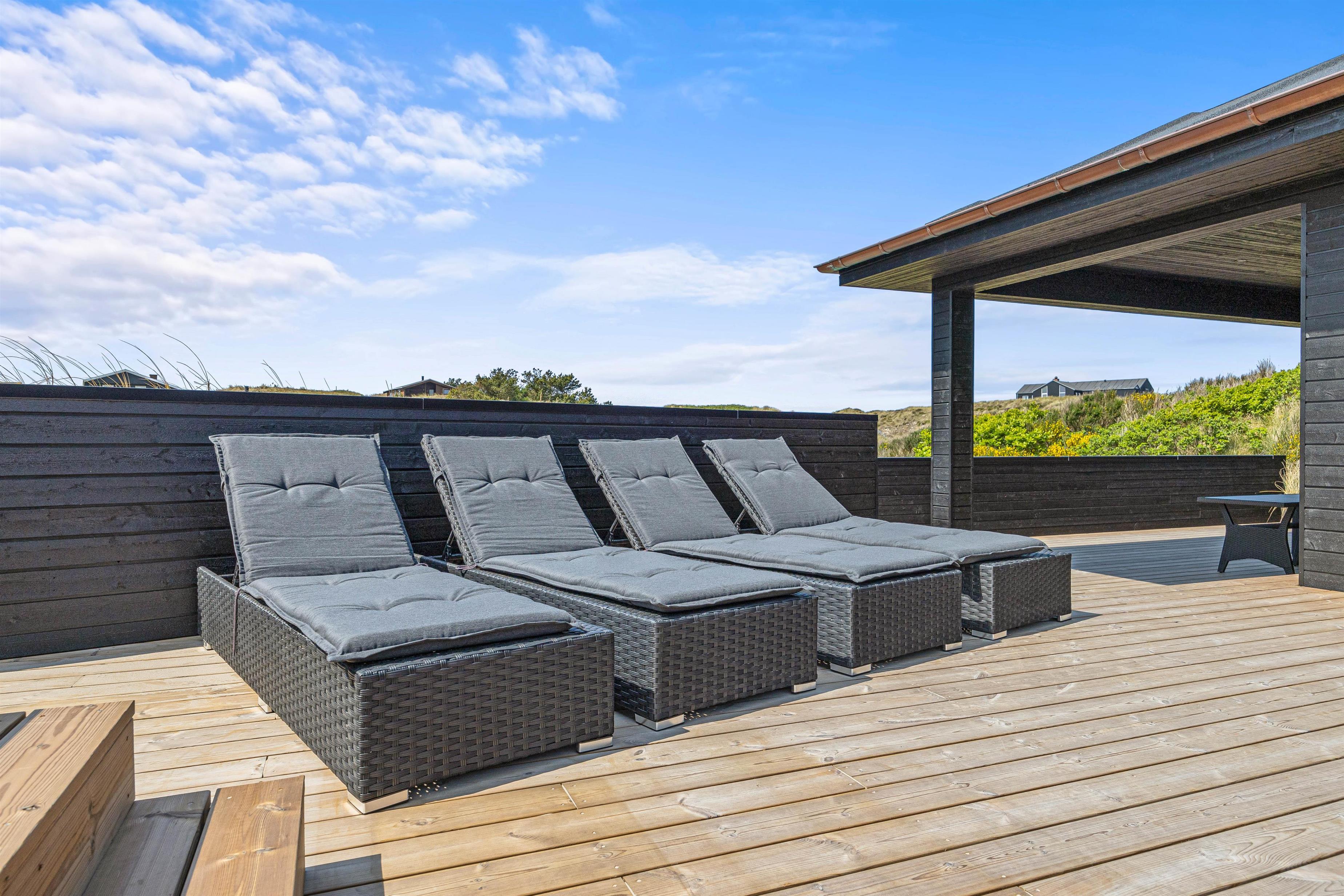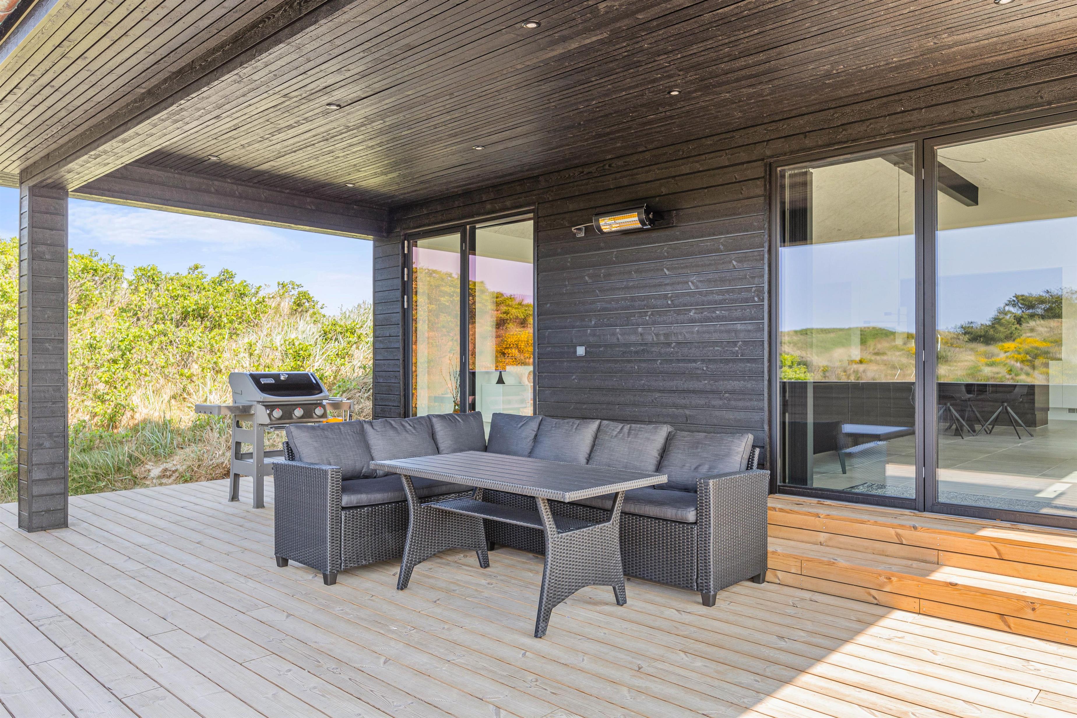 På sommerhusets udeområde har I også en åben, afskærmet terrasse, hvor I kan sætte jer godt til rette i havemøbler og liggestole, mens I nyder solen og lyden af brændingen i baggrunden. Når det efterhånden bliver tid til at lave aftensmad, kan I tilberede en lækker middag på gasgrillen.