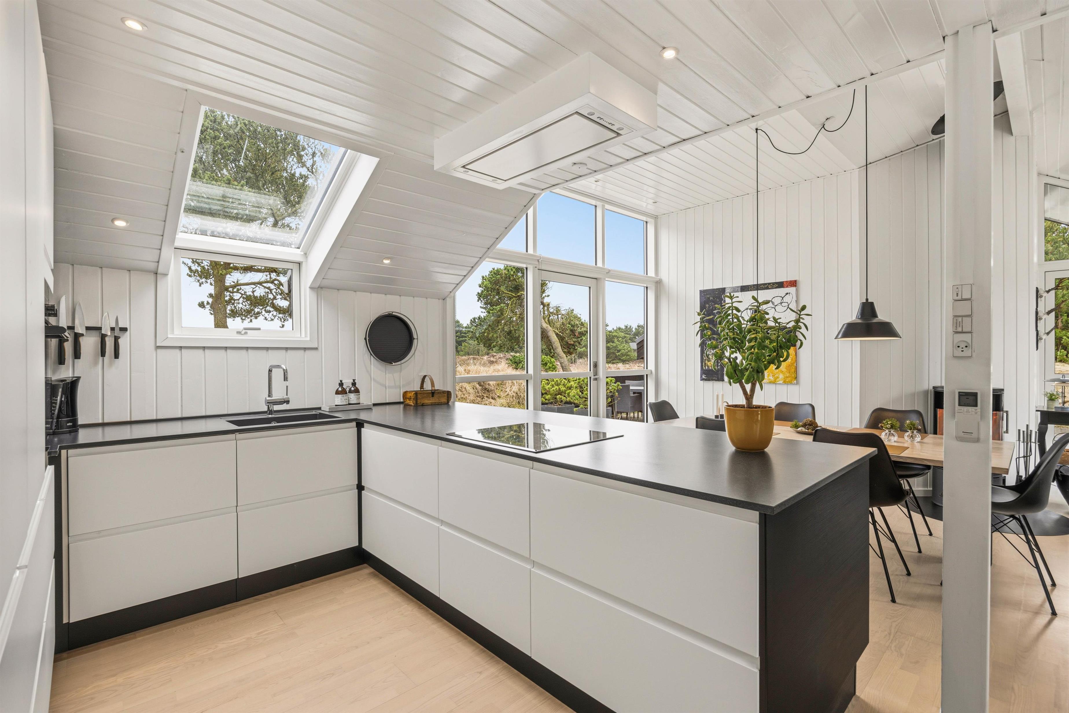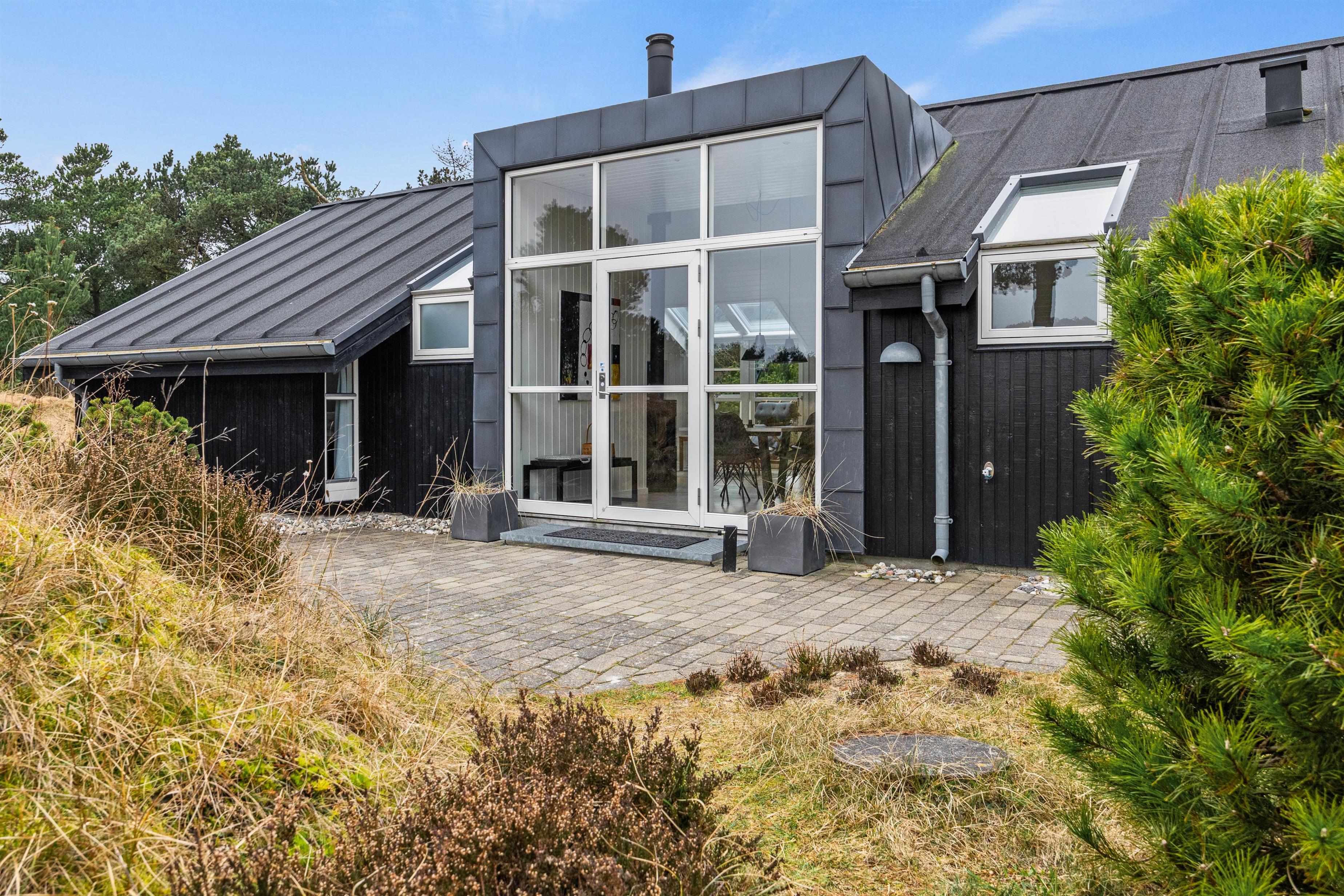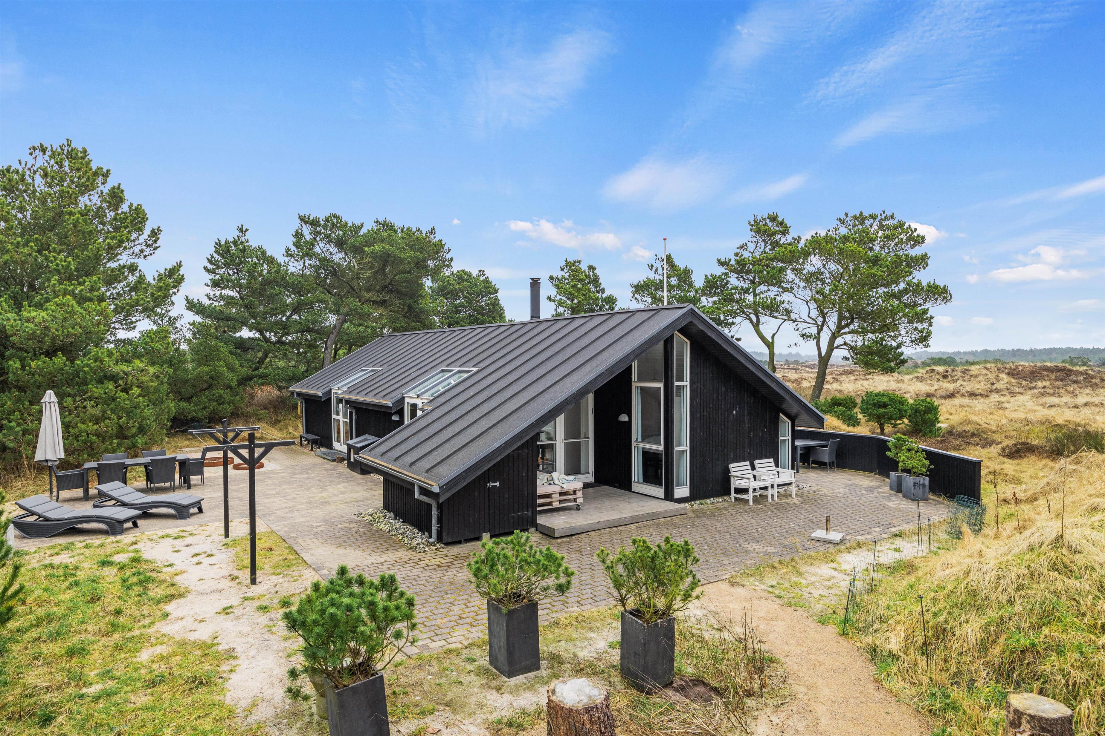 Kun ganske få hundrede meter fra Vesterhavet ligger dette stilfuldt og moderne indrettet sommerhus med plads til 6 personer. Fra spisepladsen midt i huset er der en fantastisk panoramaudsigt over et stort og flot lyngområde.