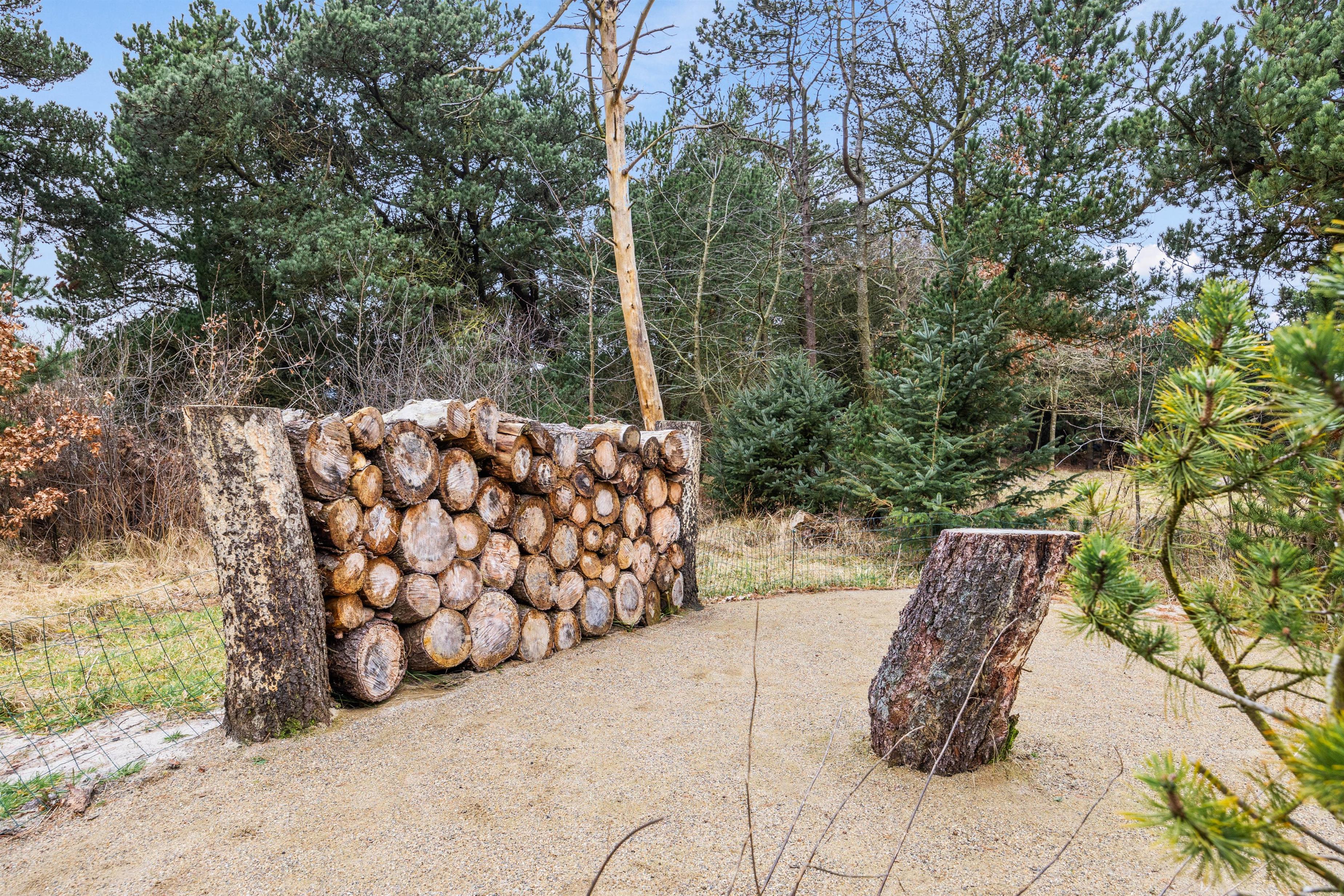 Feriehuset ligger på en stor grund, der er hele 2.034 kvadratmeter. Størstedelen af grunden er omkranset af træer, så I kan sidde afskærmet på de mere blæsende dage.