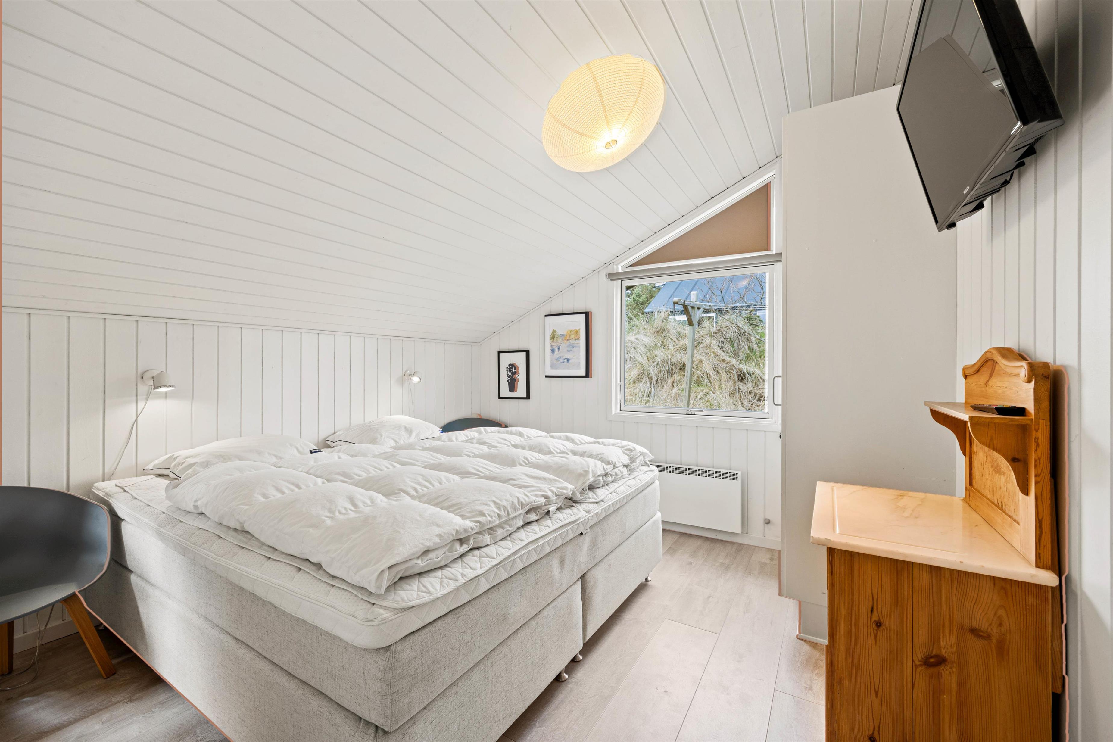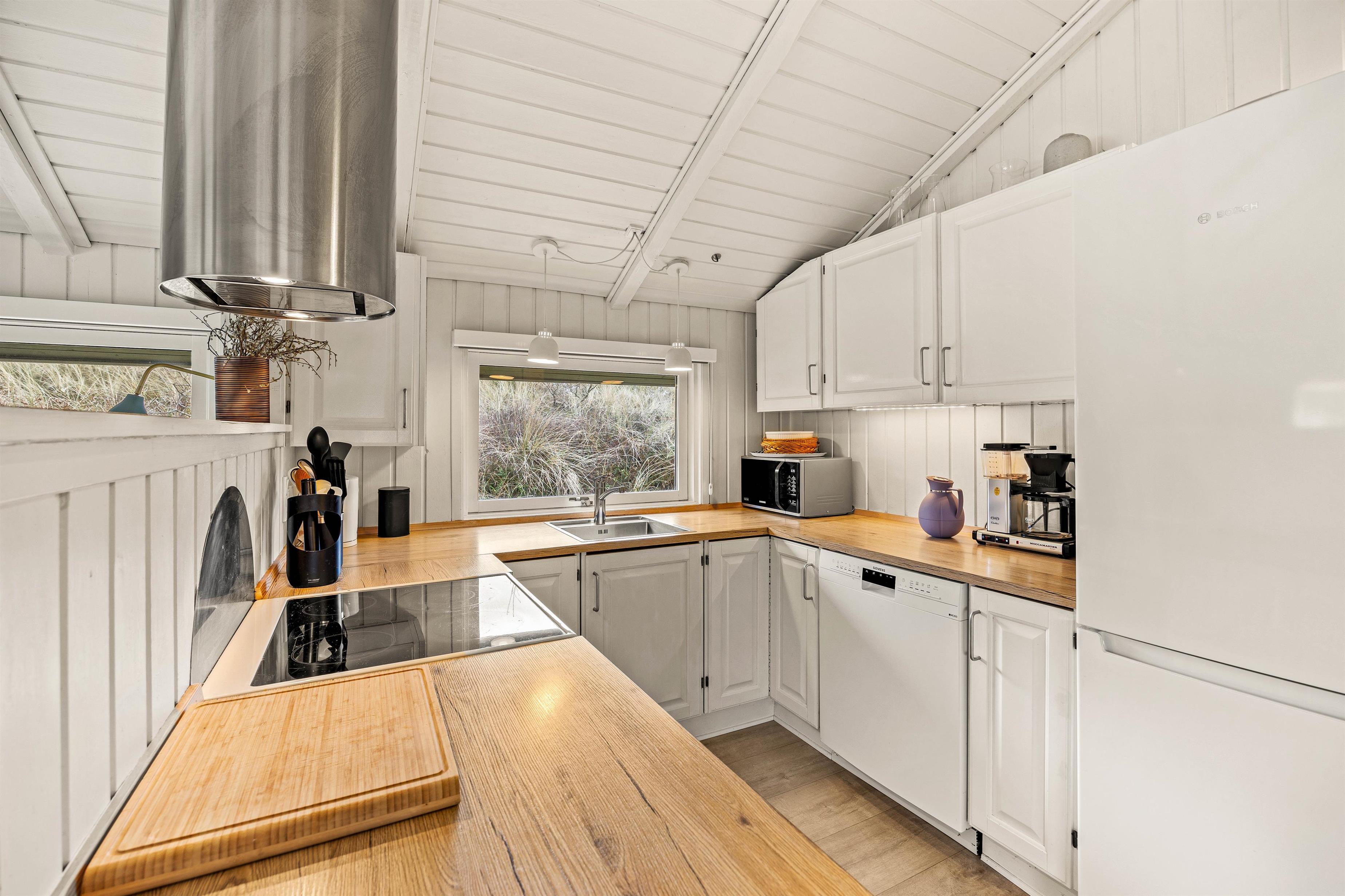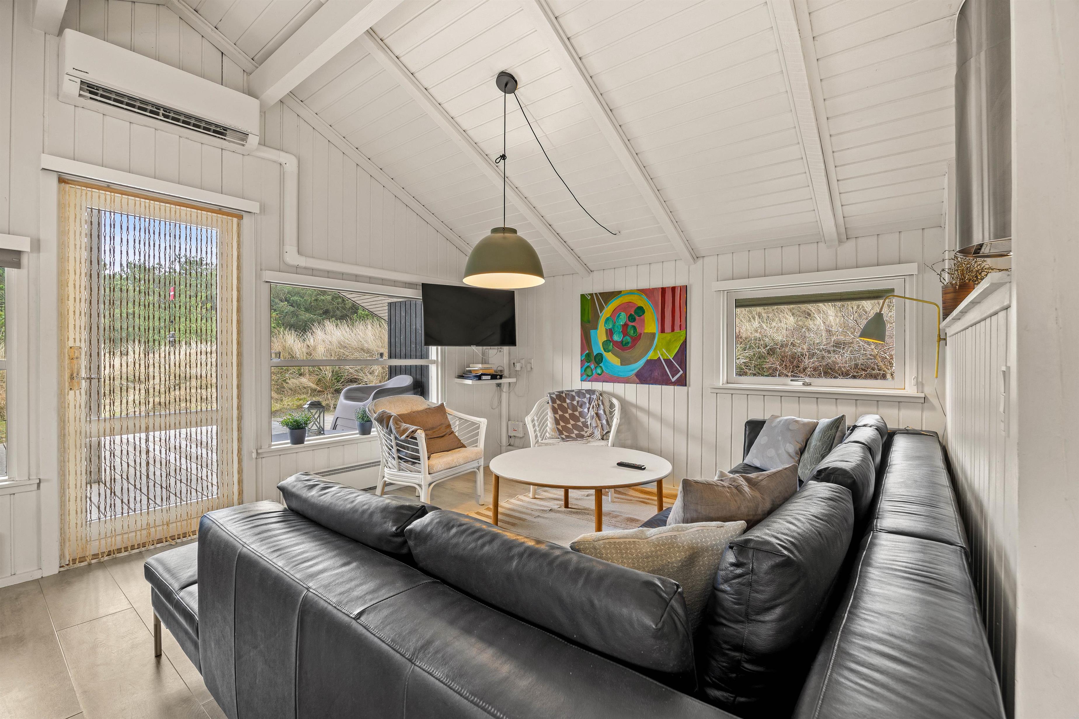 Et dejligt og rigtig hyggeligt indrettet feriehus med et flot lysindfald, der lægger op til afslapning og samvær med familien. Her er den venlige og lyse indretning med til at skabe den velkendte og rette sommerhusstemning. Sommerhuset rummer 3 gode soverum, et fint badeværelse med gulvvarme og med indgang til sauna. Efter en lang gåtur findes der intet bedre end at blive varmet godt igennem i saunaen eller foran den dejlige brændeovn.