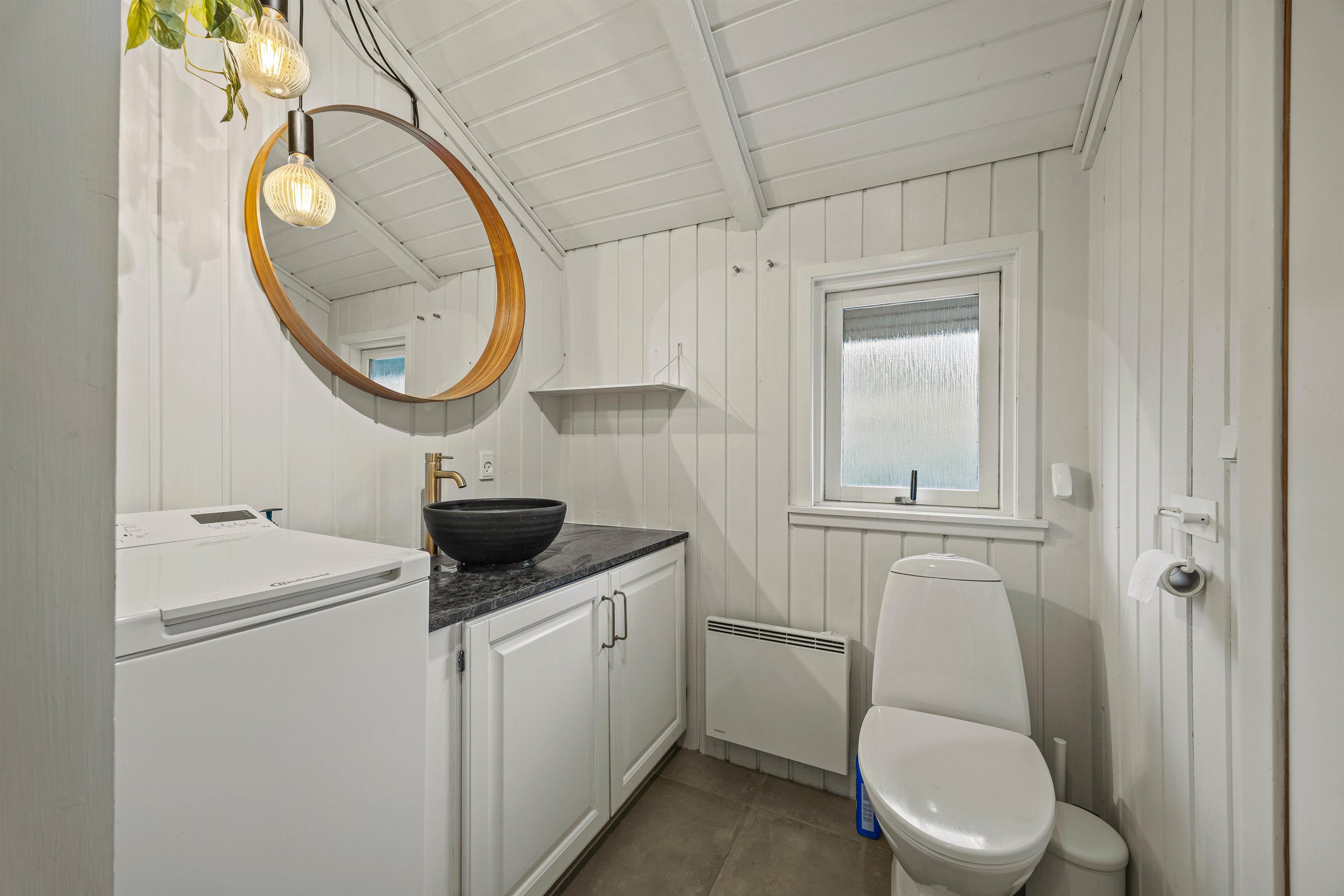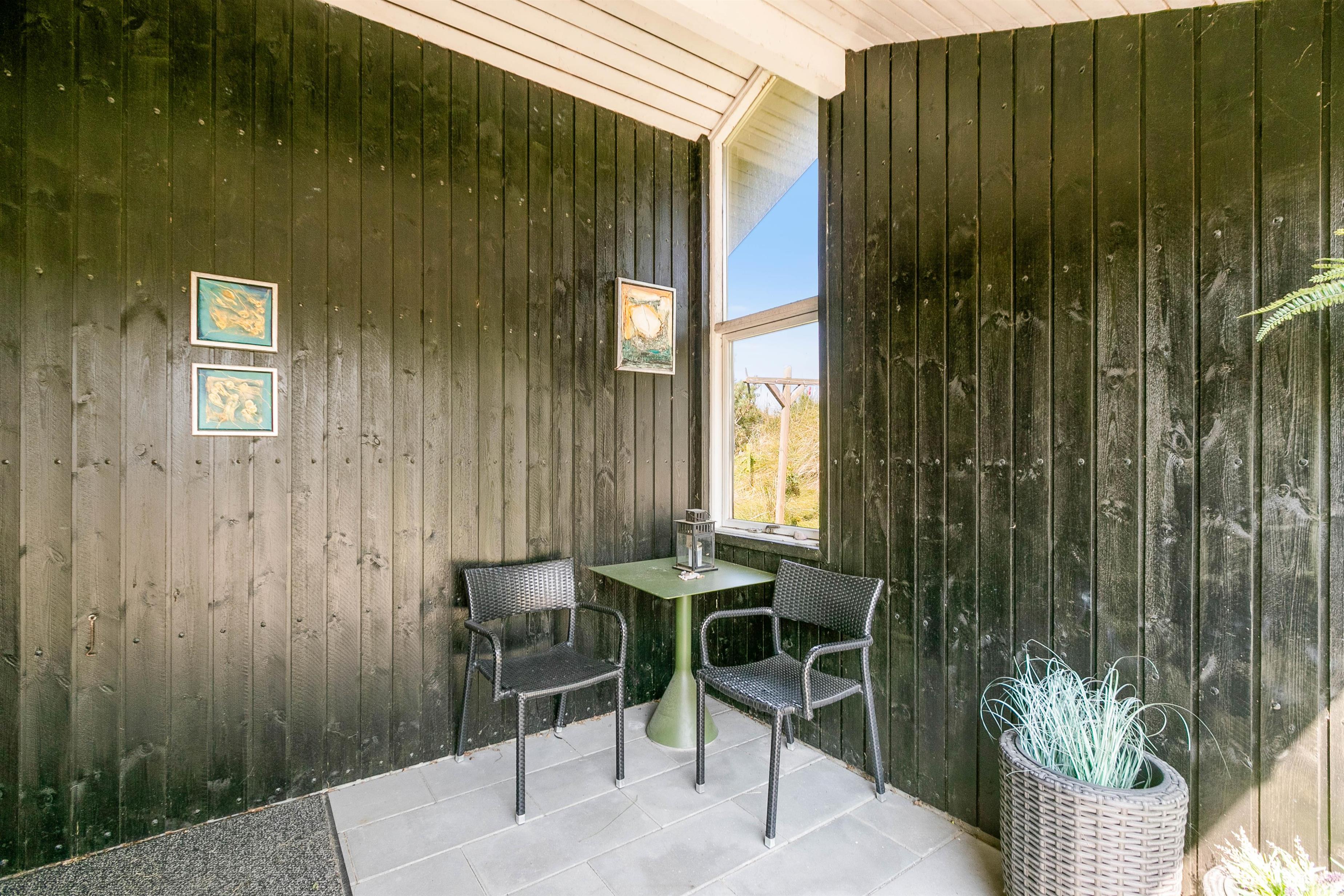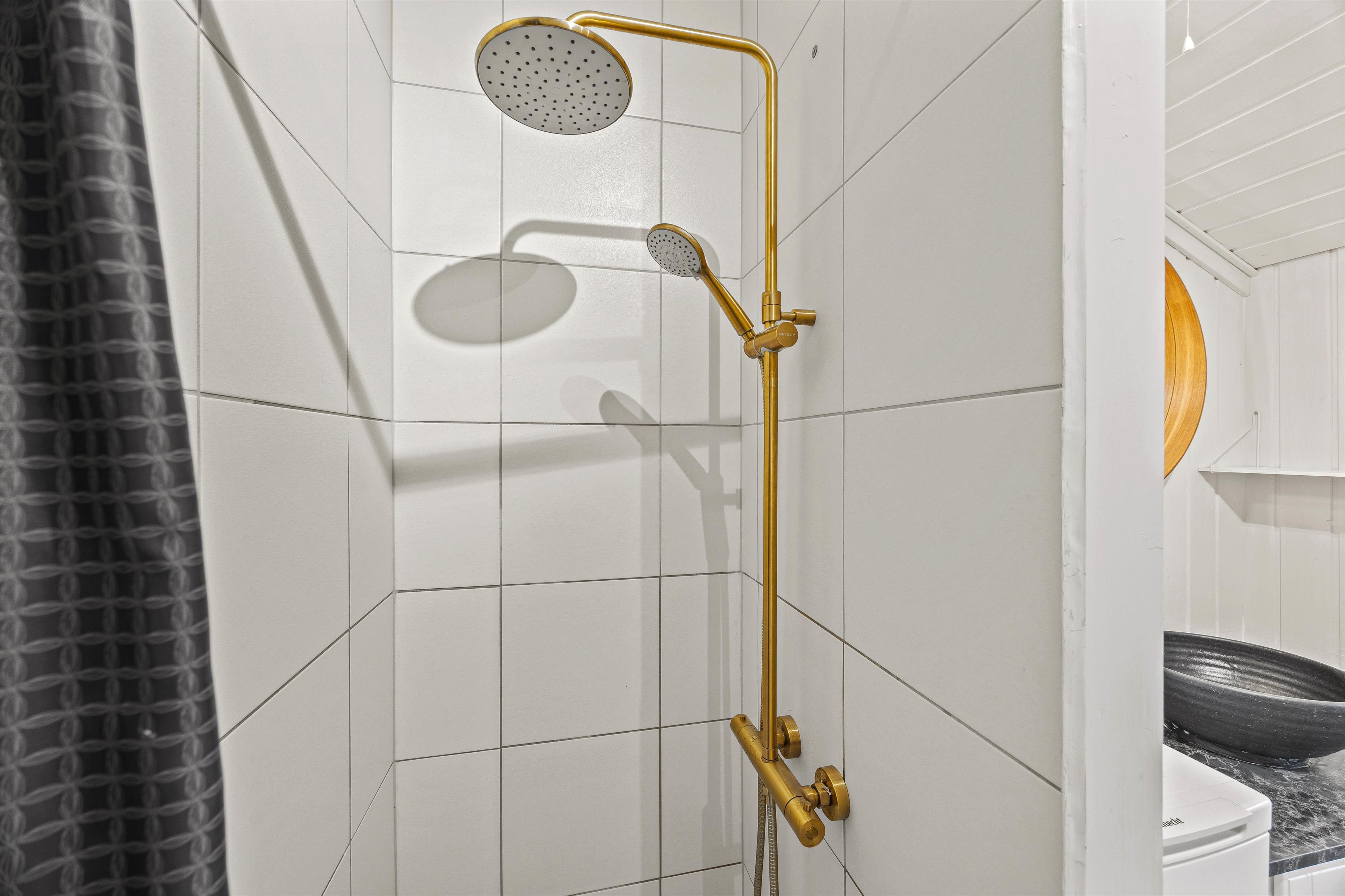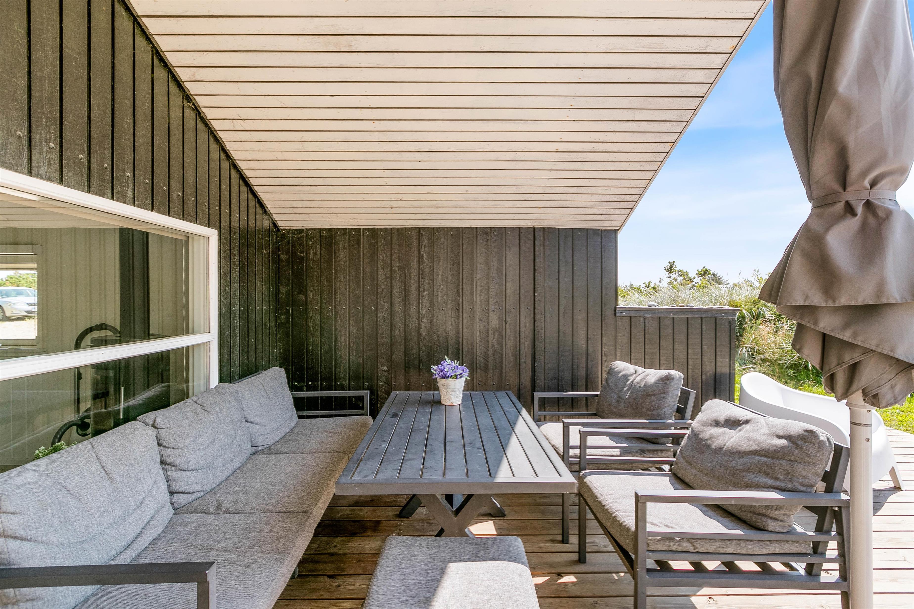 Fra stuen er der udgang til den flotte træterrasse, som er delvist overdækket, så I også kan finde skygge eller nyde udelivet i regnvejr. Rundt om huset finder I flere dejlige terrasser, så I altid har mulighed for at finde en dejlig plads under solen. Læn dig tilbage, nyd en bog og frisk kop kaffe i havemøblerne, solbad eller gå op ad trappen til den højere terrasse, hvorfra den fantastiske udsigt kan ses. Om aftenen kan I tænde op i grillen og slappe af under den overdækkede del af terrassen med et glas vin i hånden.