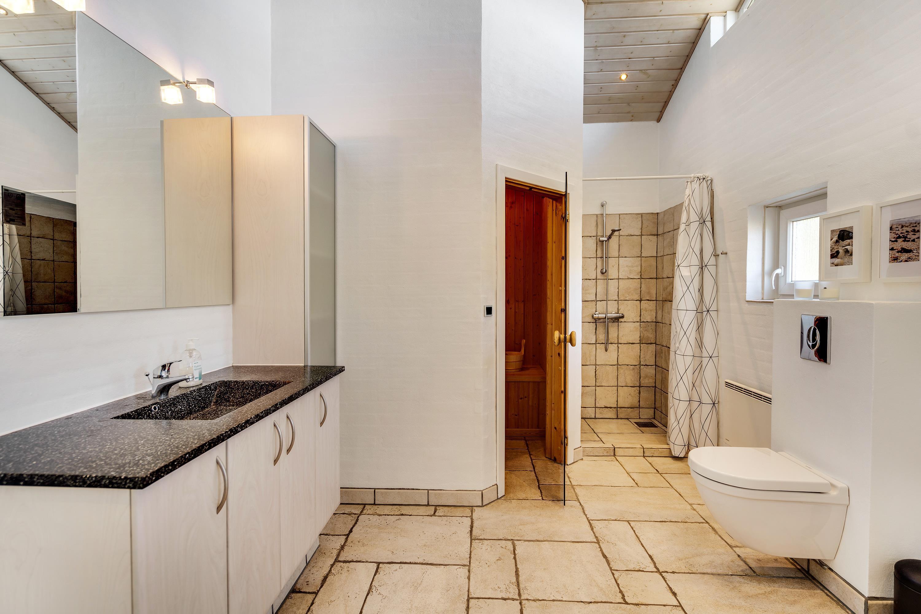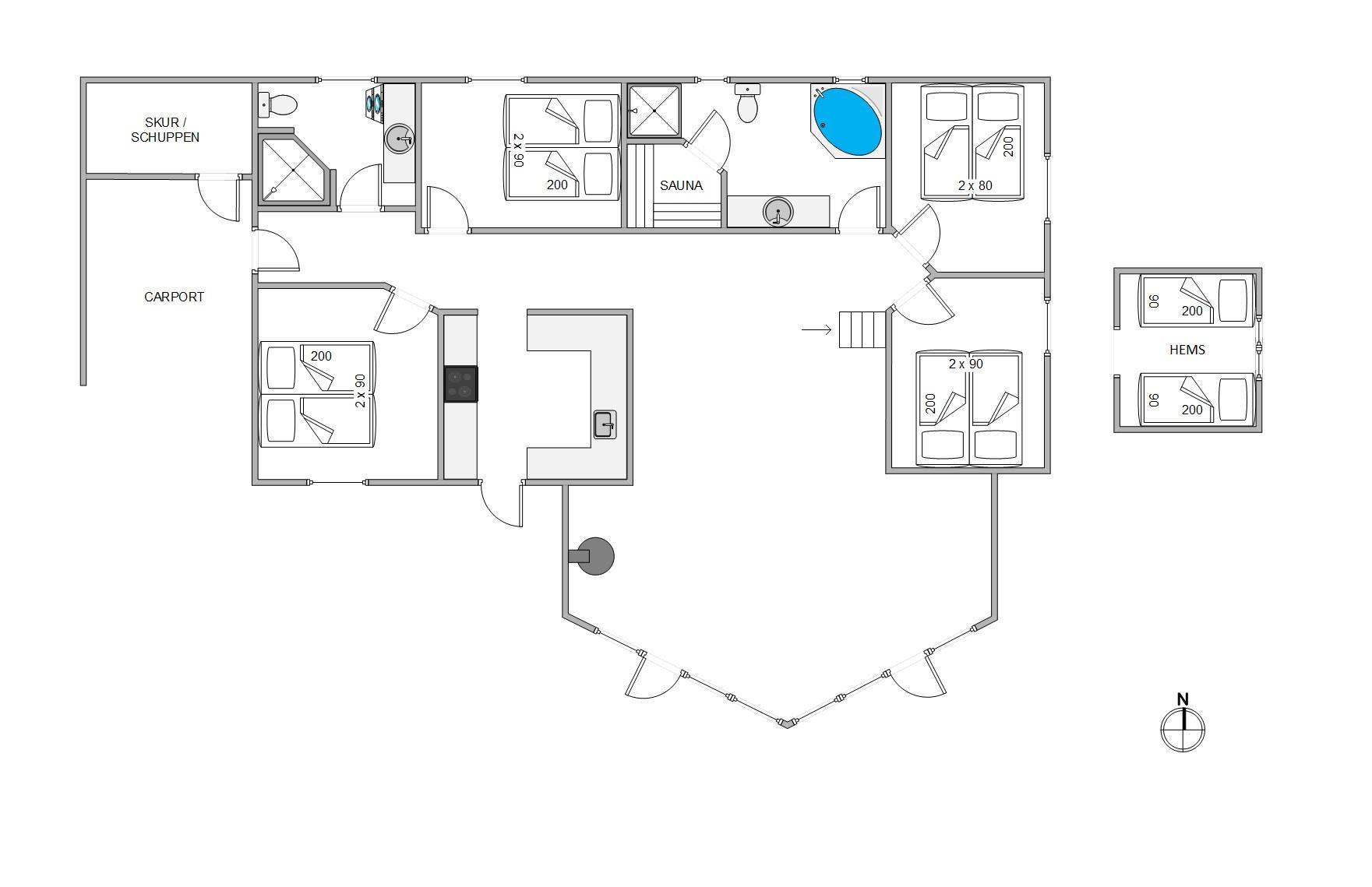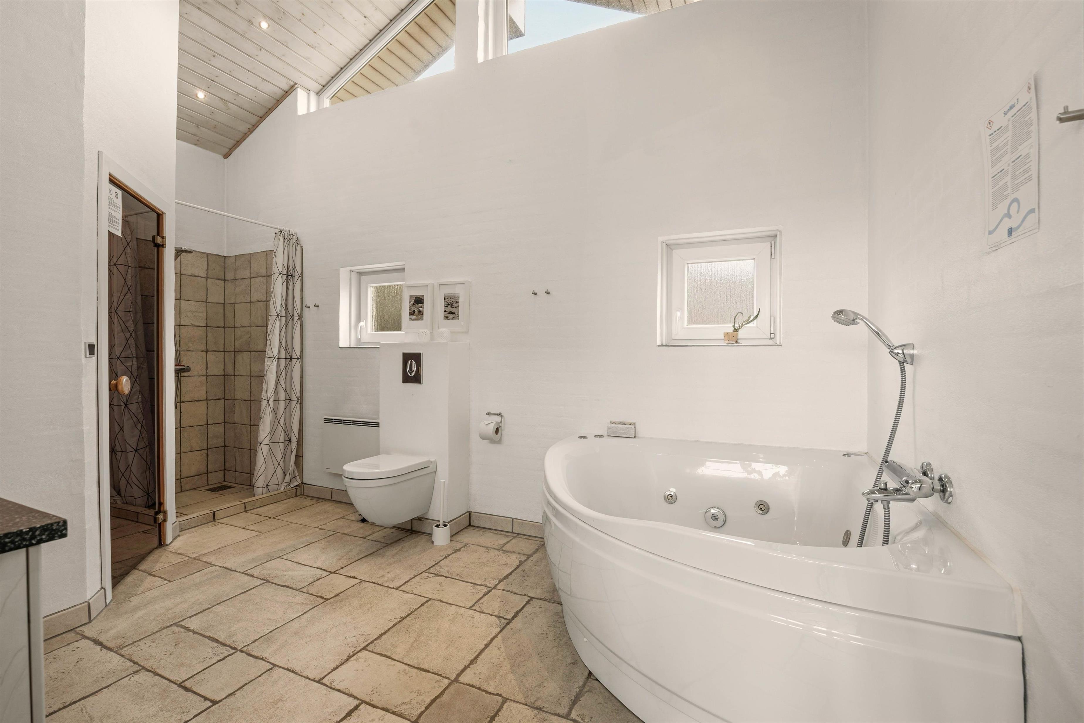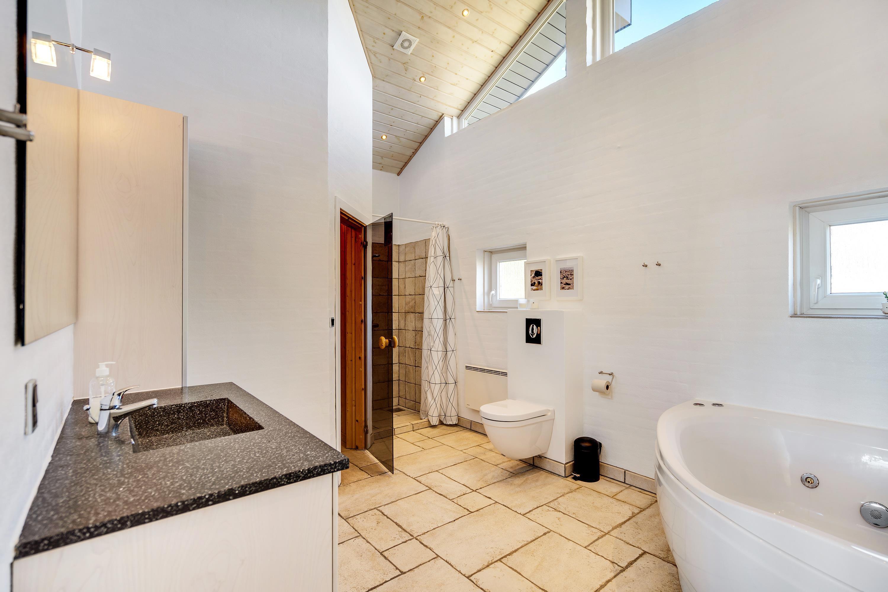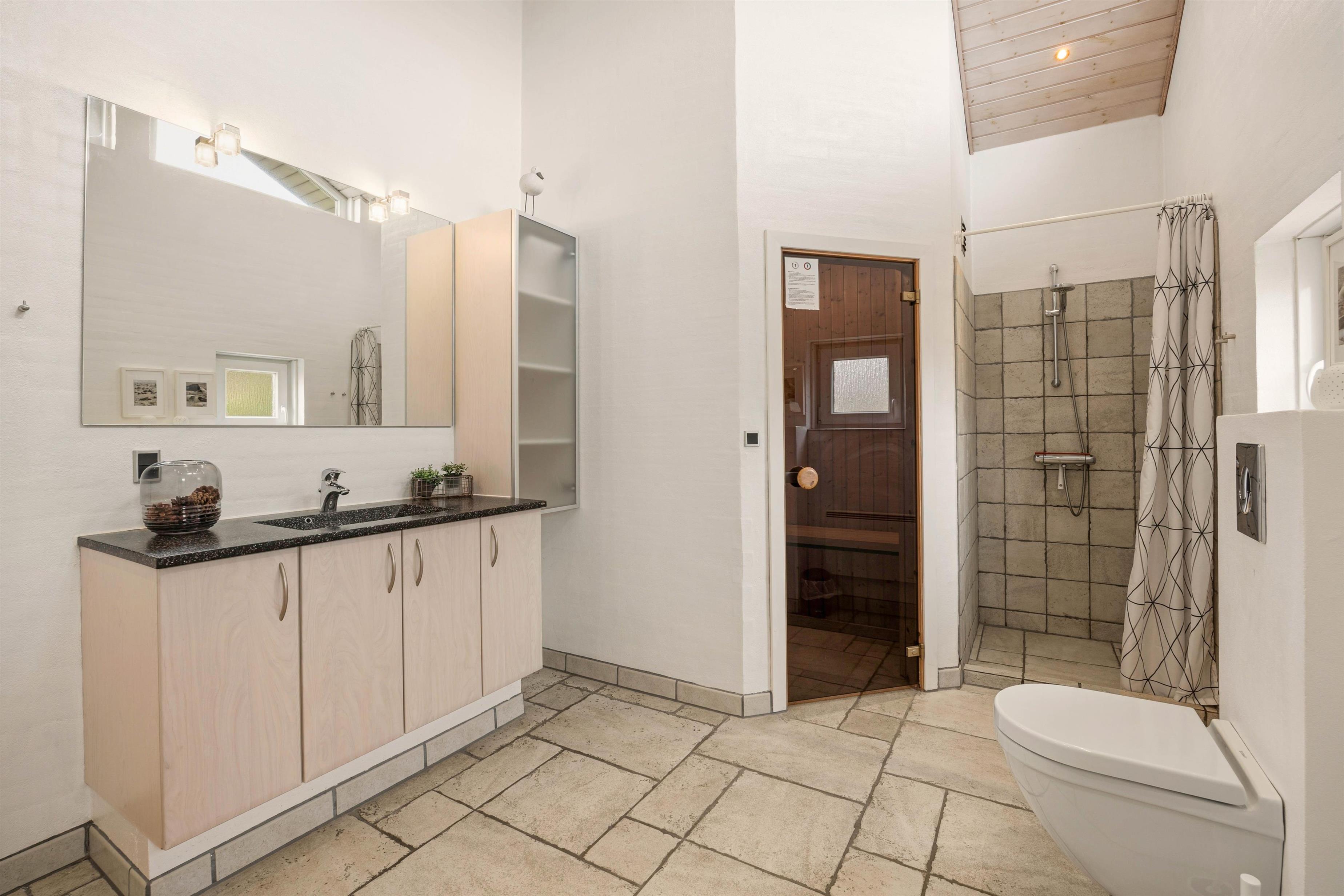 Med 2 badeværelser og 5 gode soverum, hvoraf 4 ligger i stueetagen og har dobbeltsenge, og det sidste er på 1. sal, er det superbekvemt at holde ferie i dette lækre sommerhus.