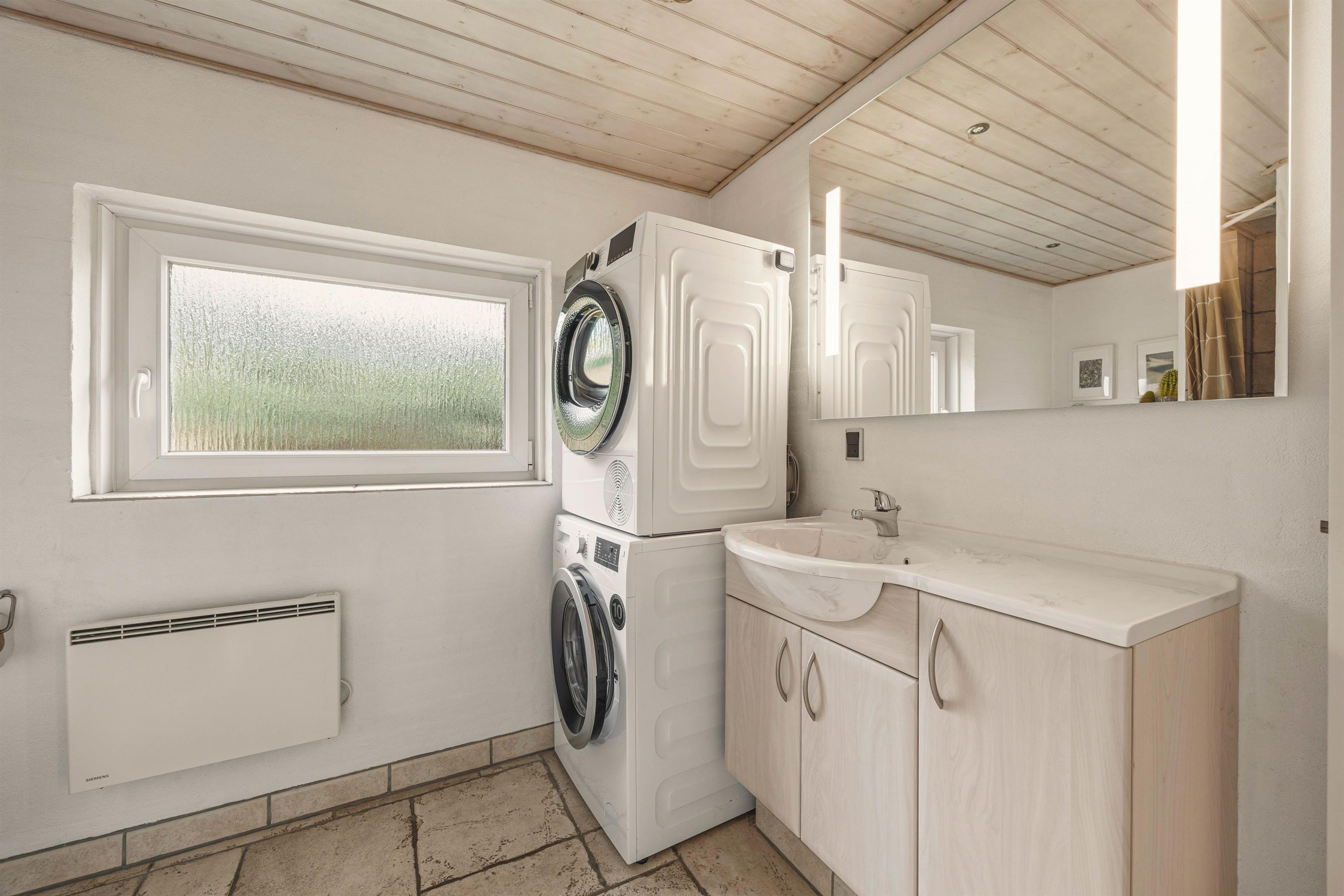 Udover gullvarmen i køkken-alrummet kan hyggefaktoren på kolde efterårsdage forstærkes ved at tænde op i brændeovnen, og efter en frisk tur på stranden kan I forkæle jer selv med en tur i saunaen eller 2-personers-spaen. Håndklæderne er hurtigt friskvaskede igen, da feriehuset både er udstyret med vaskemaskine og tørretumbler.