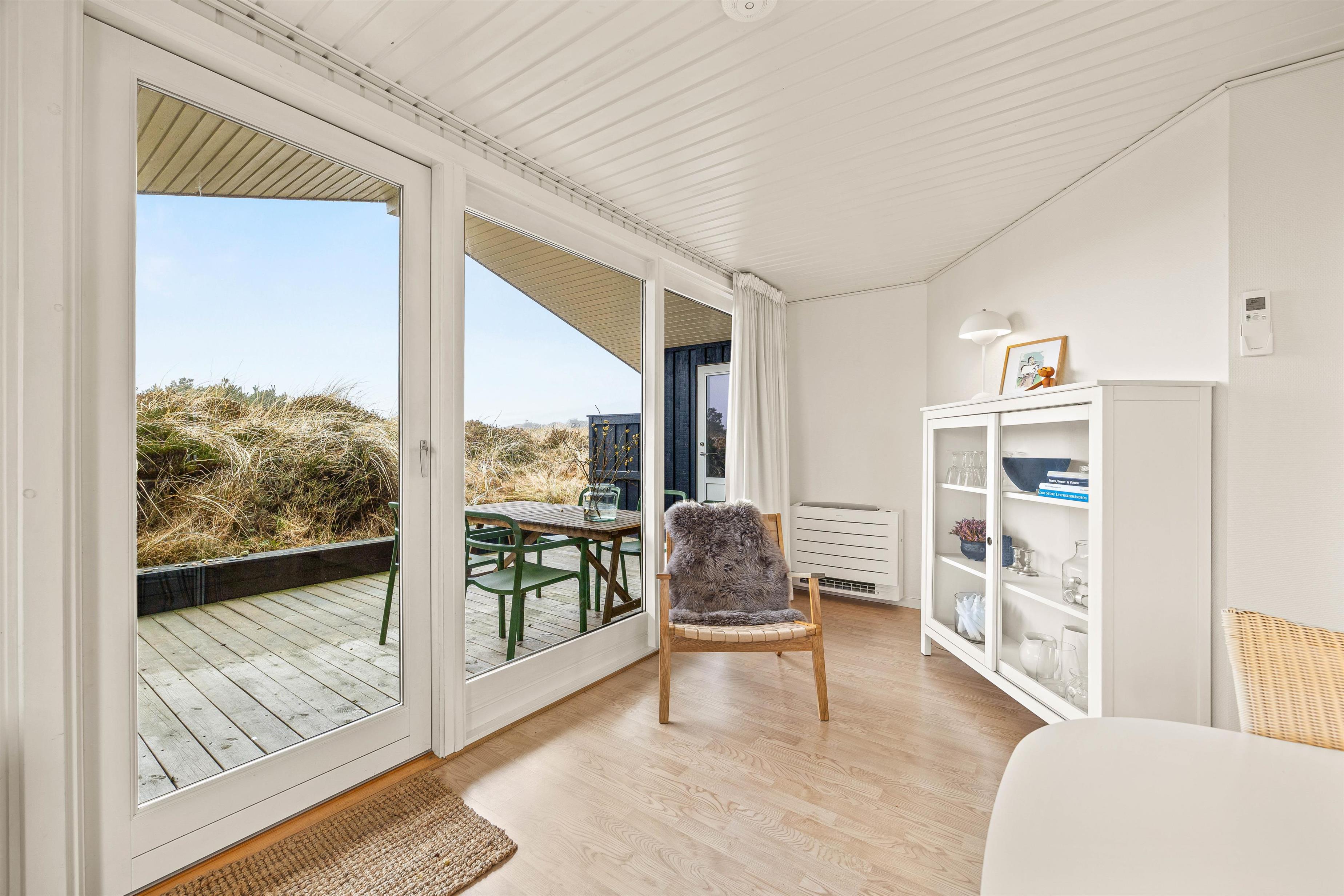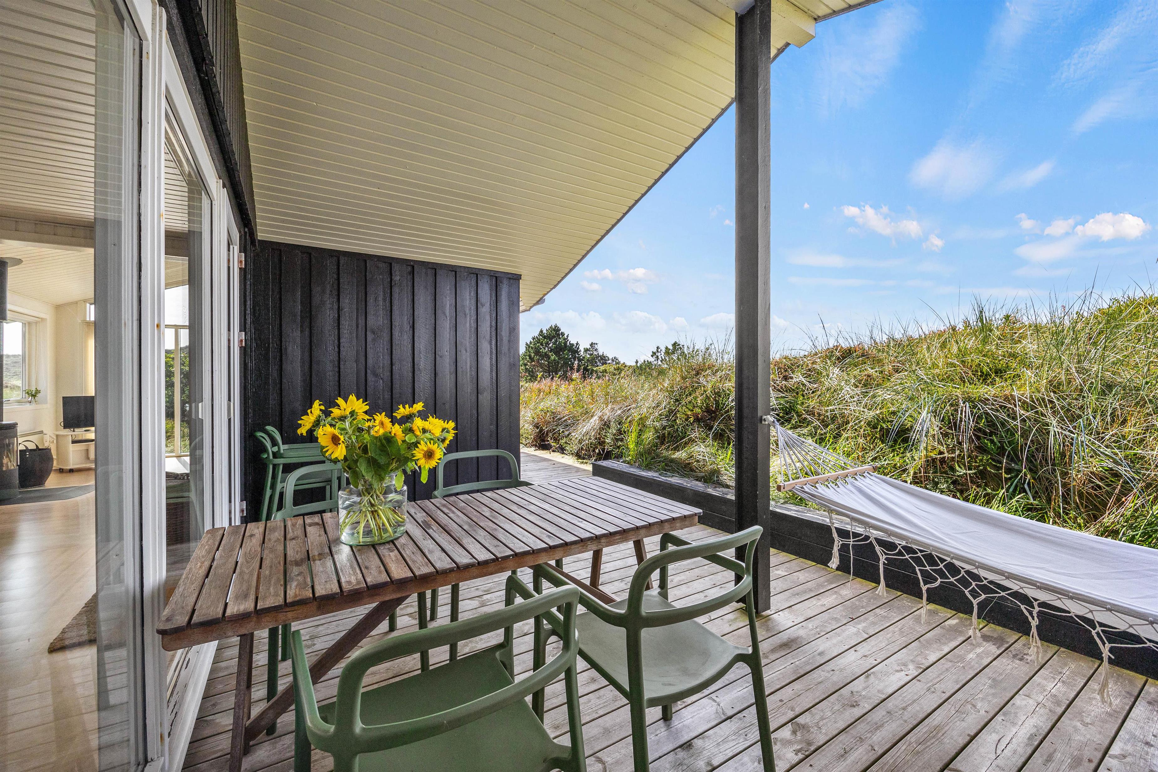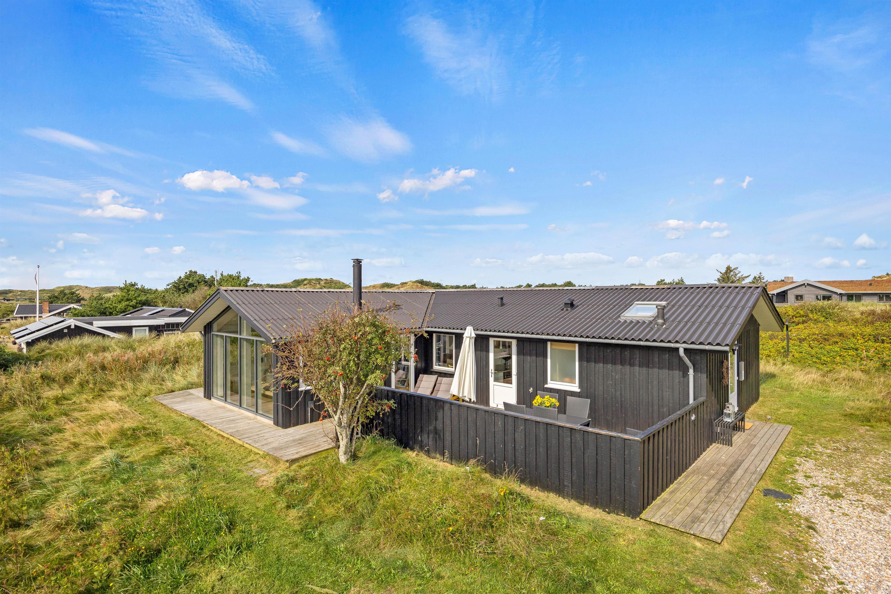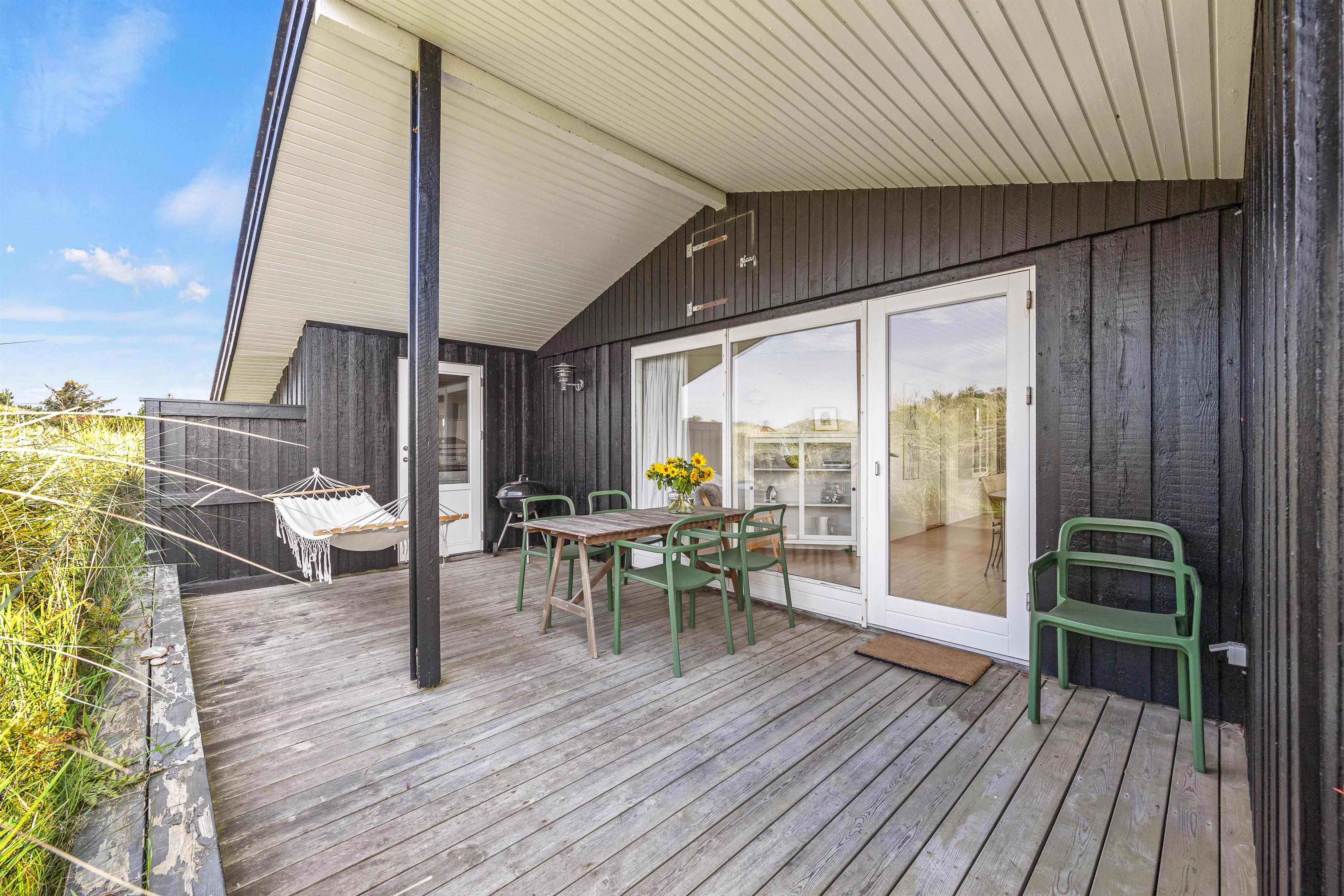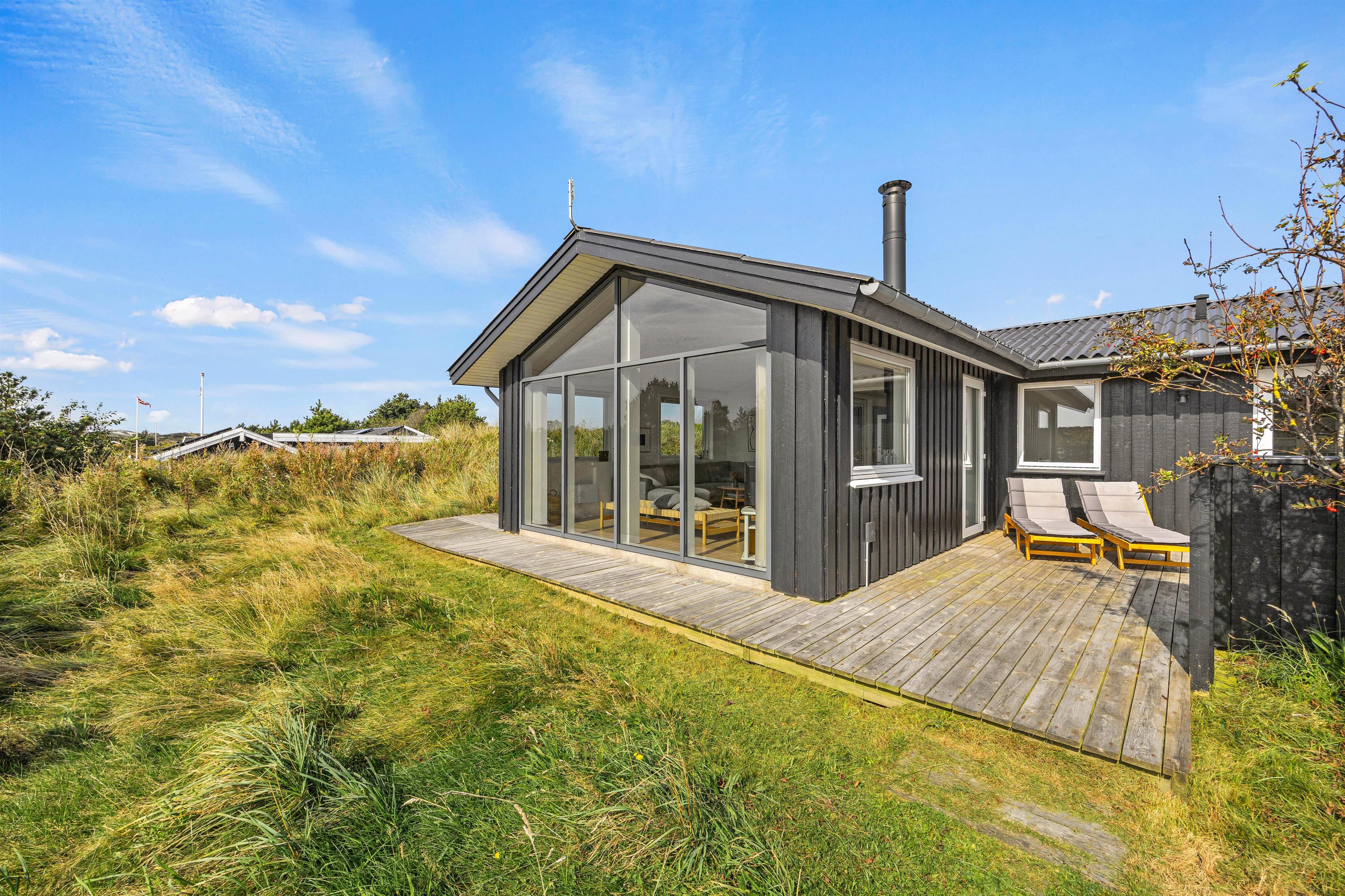 Dette flotte, lyse sommerhus er beliggende tæt på Henne Strand på en naturgrund for enden af en rolig sidevej. I 2023 er sommerhuset blevet renoveret, og her kan 6 gæster og deres hund få en dejlig ferie i hyggelige rammer. Rundt om sommerhuset er flere dejlige terrasser, og Vesterhavet er heller ikke langt herfra.