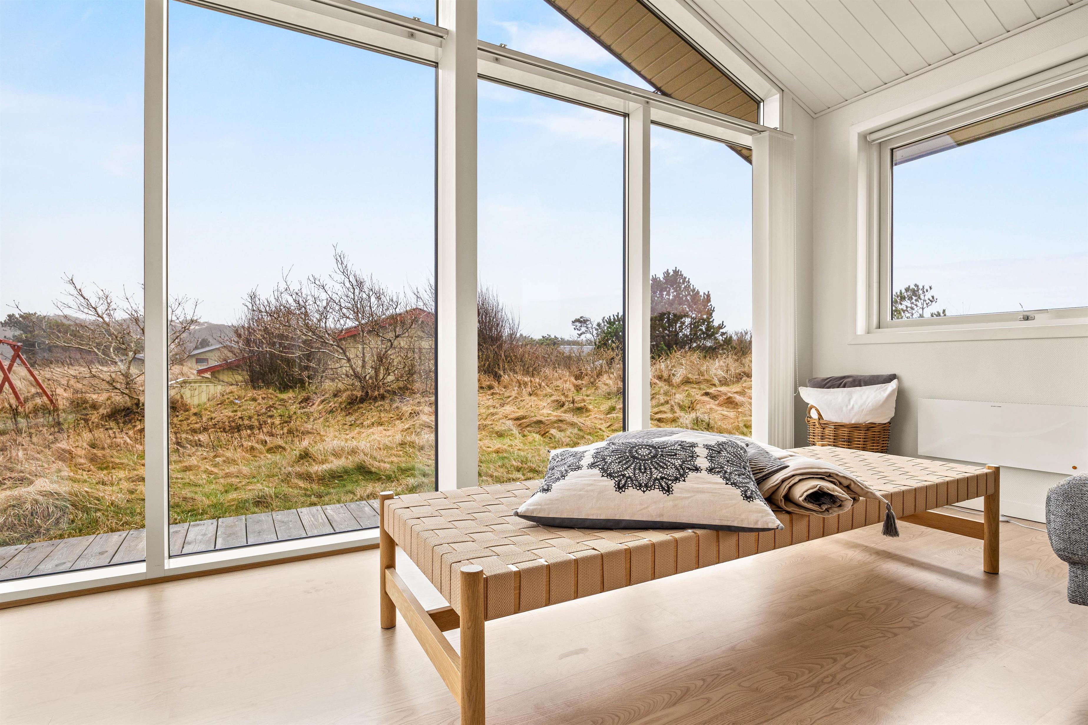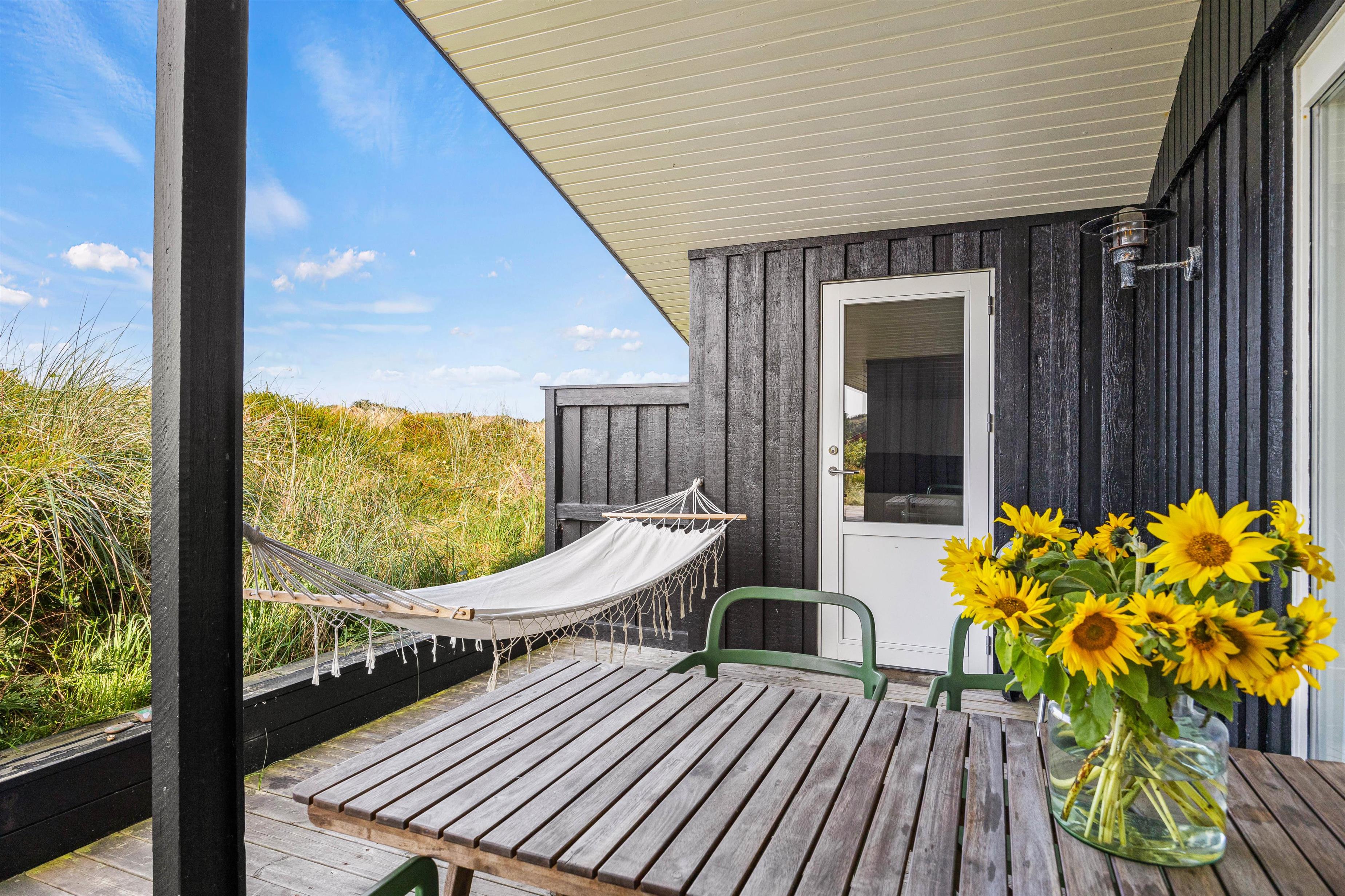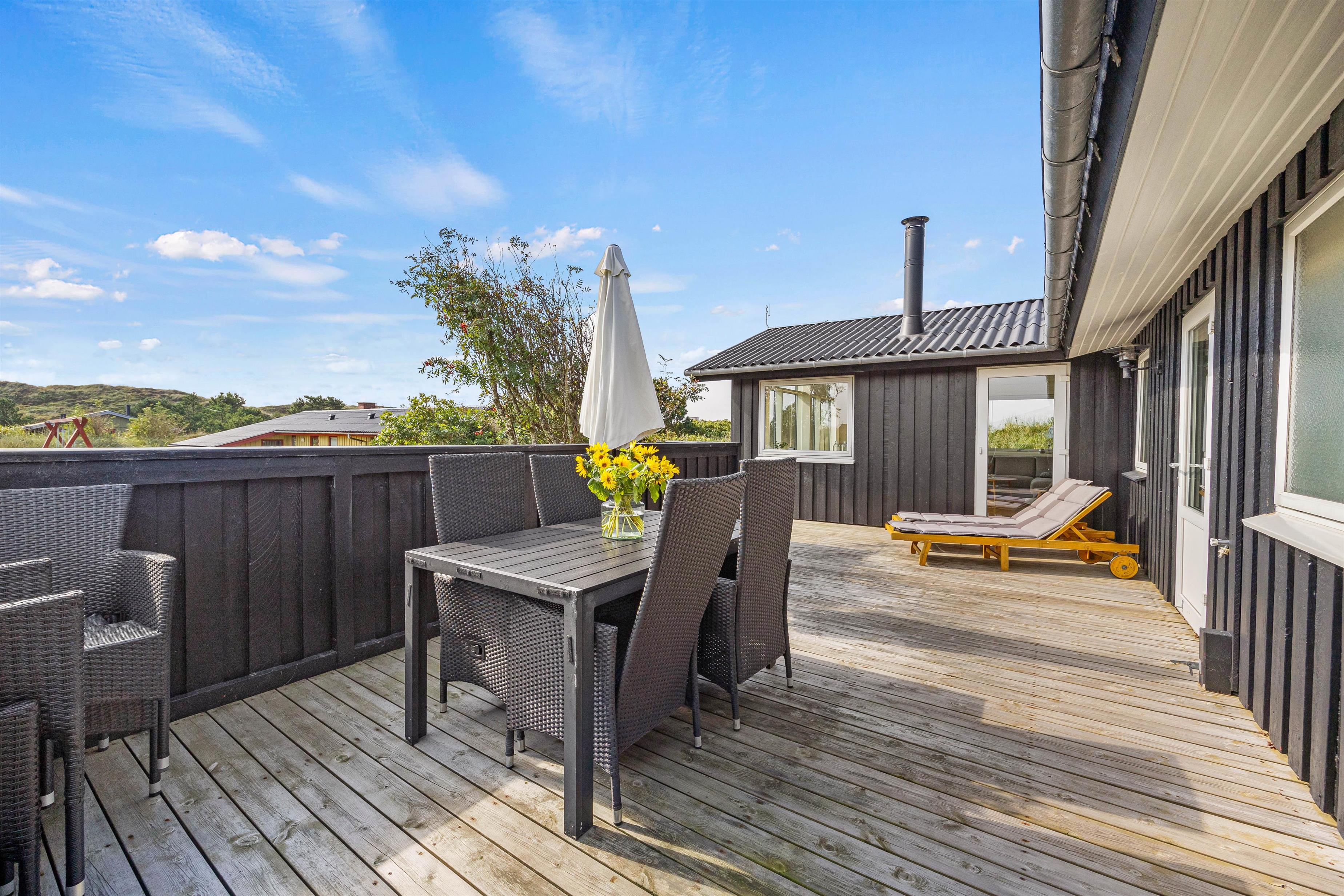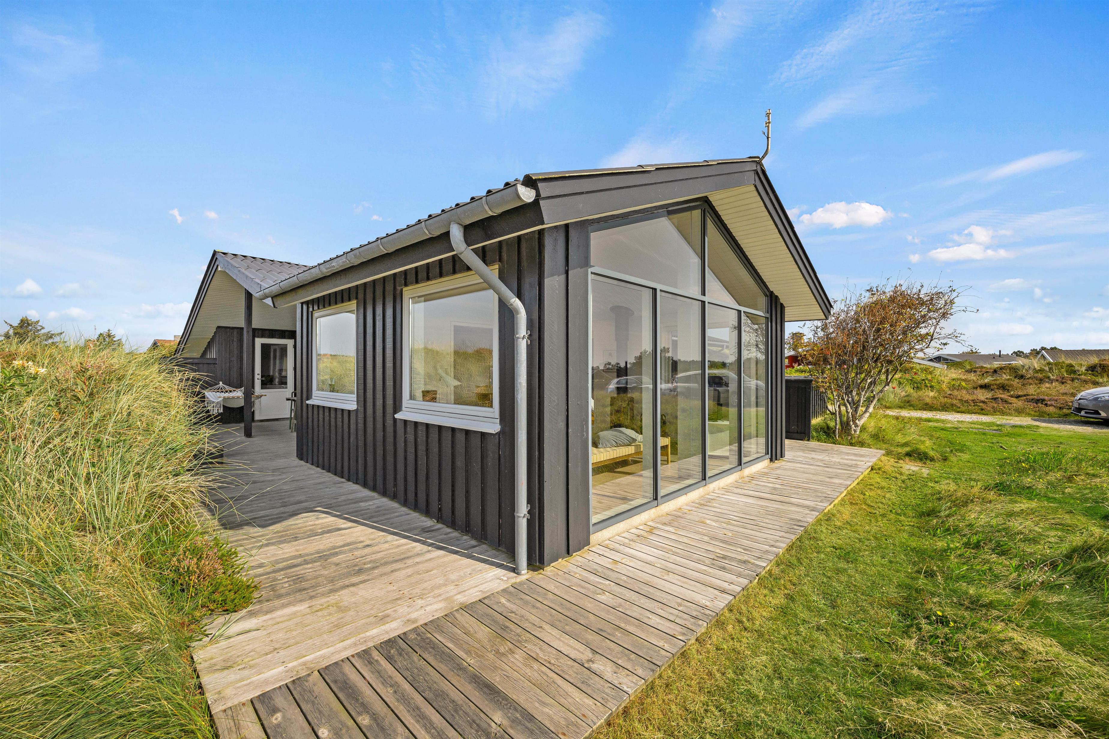 Dette flotte, lyse sommerhus er beliggende tæt på Henne Strand på en naturgrund for enden af en rolig sidevej. I 2023 er sommerhuset blevet renoveret, og her kan 6 gæster og deres hund få en dejlig ferie i hyggelige rammer. Rundt om sommerhuset er flere dejlige terrasser, og Vesterhavet er heller ikke langt herfra.