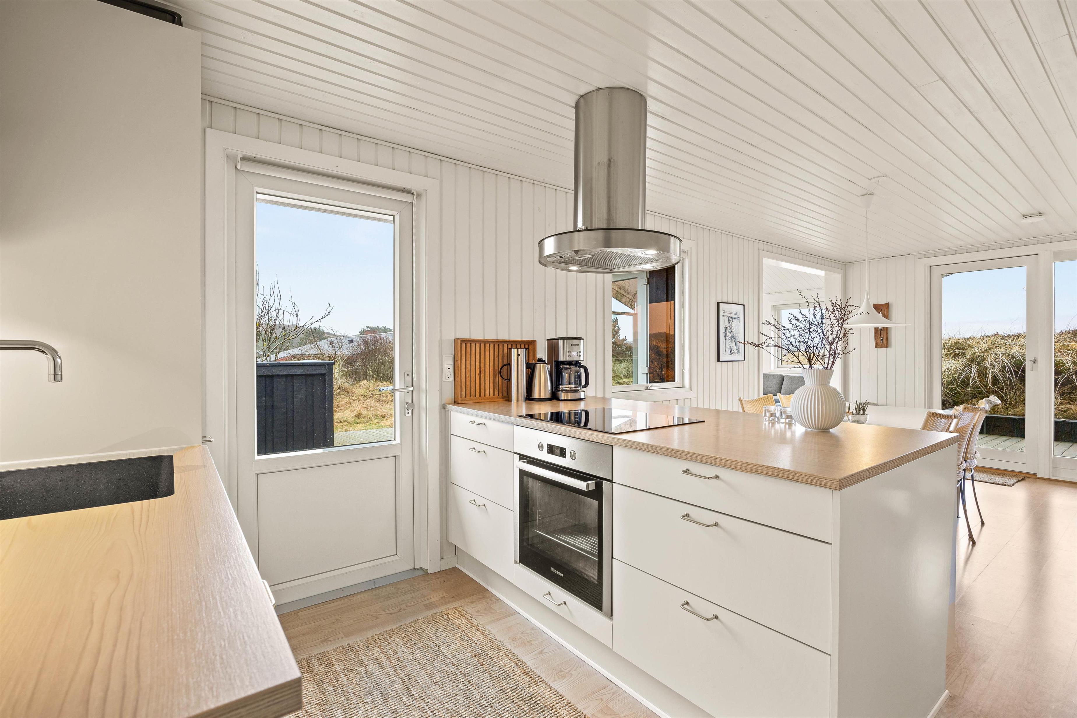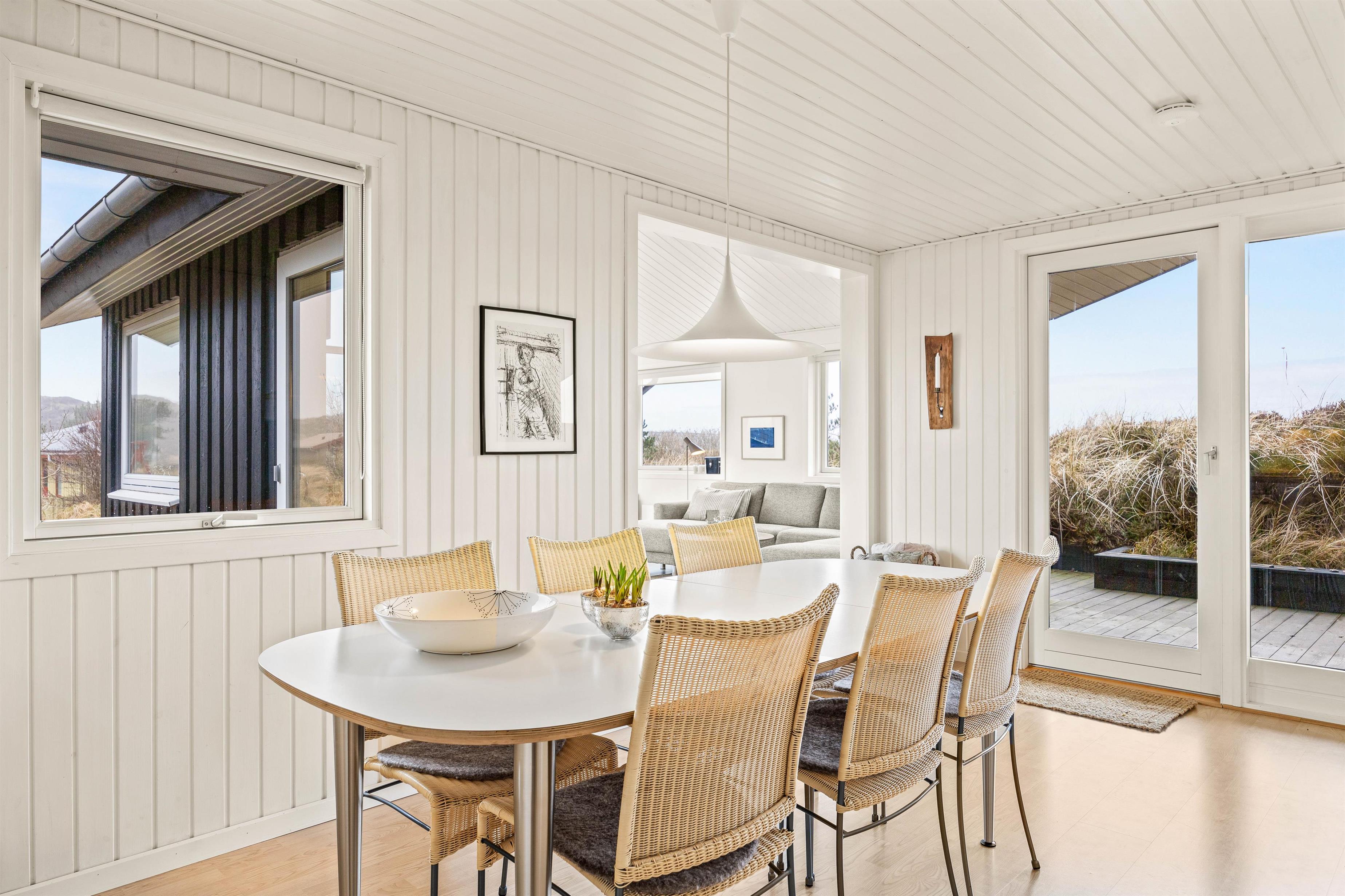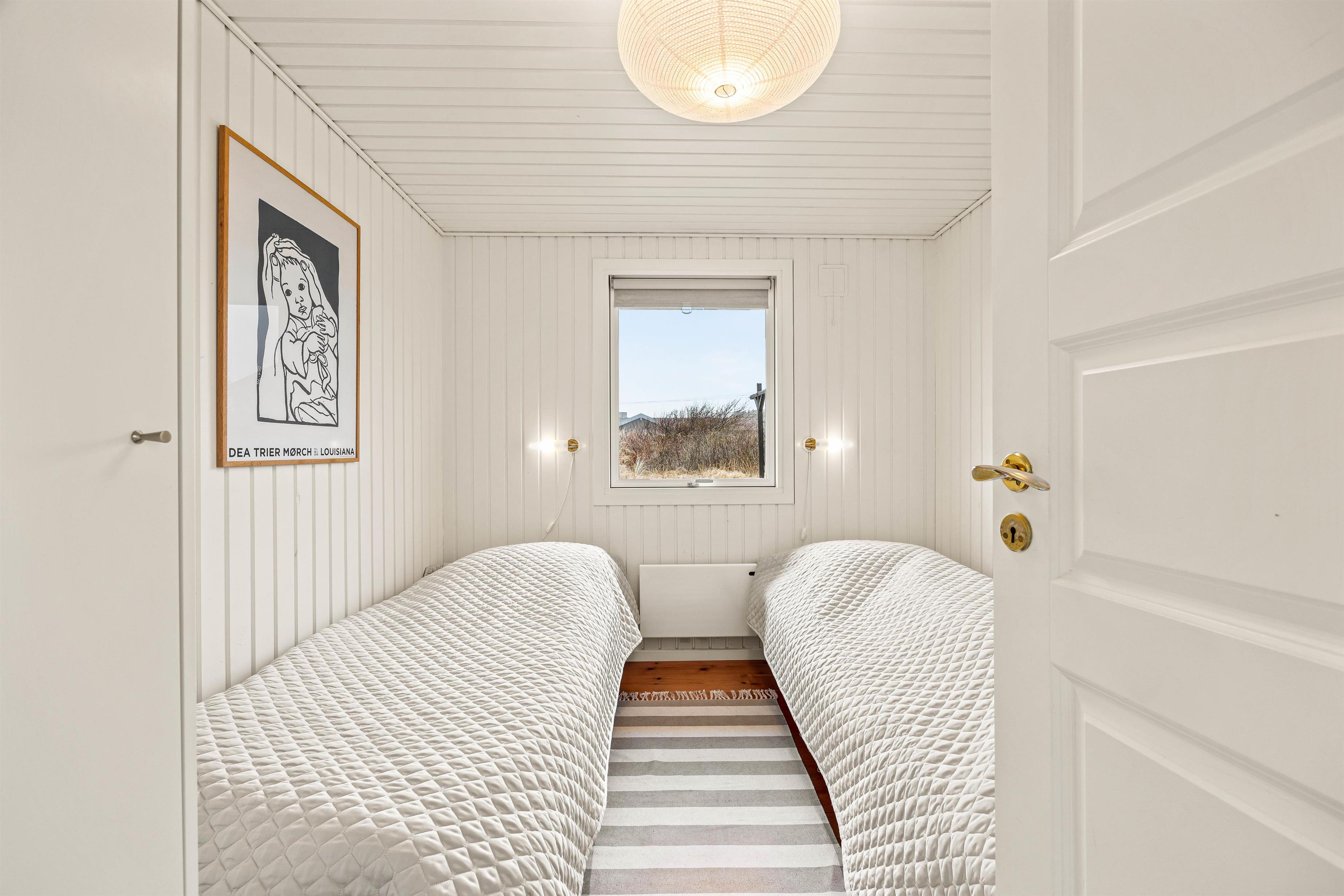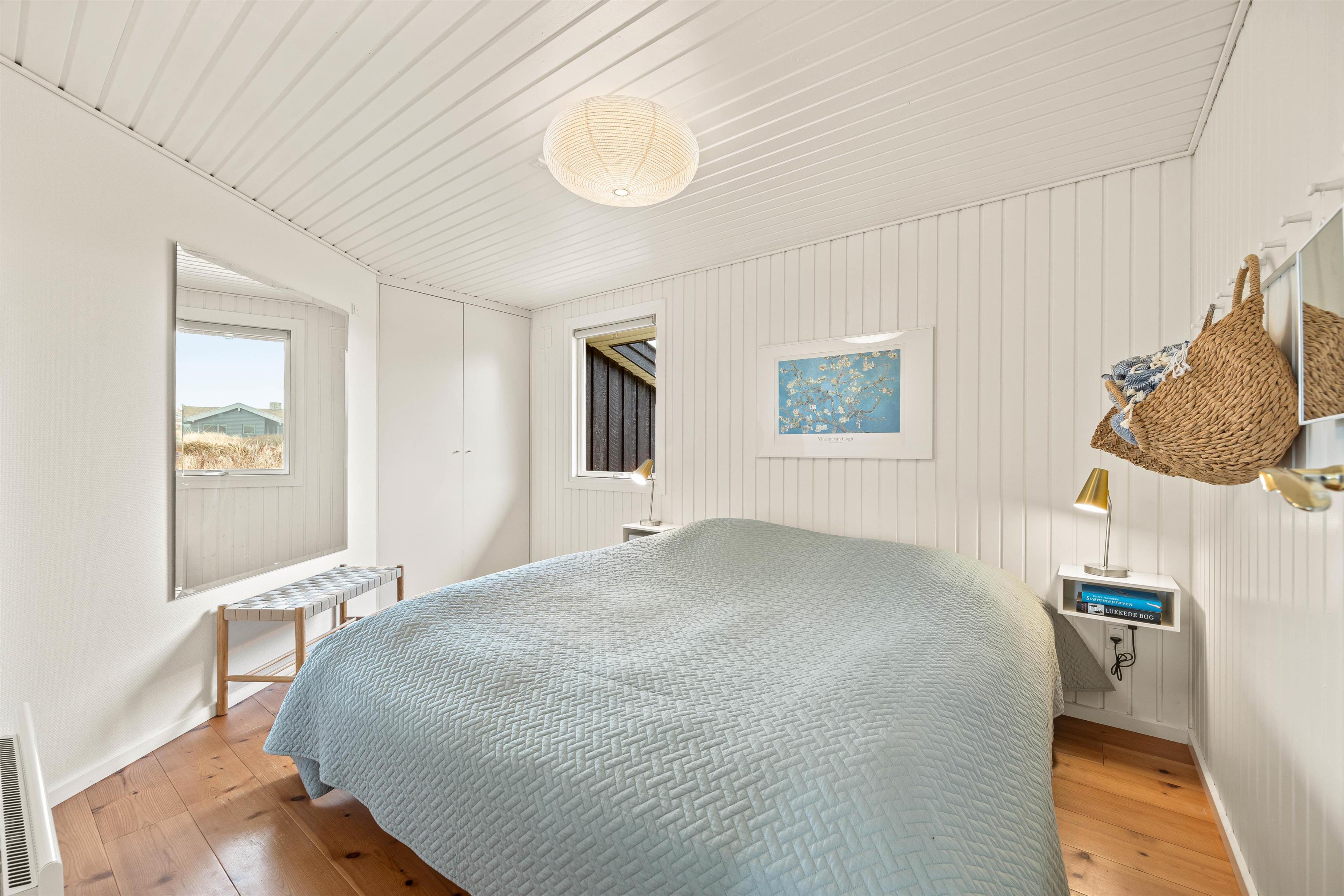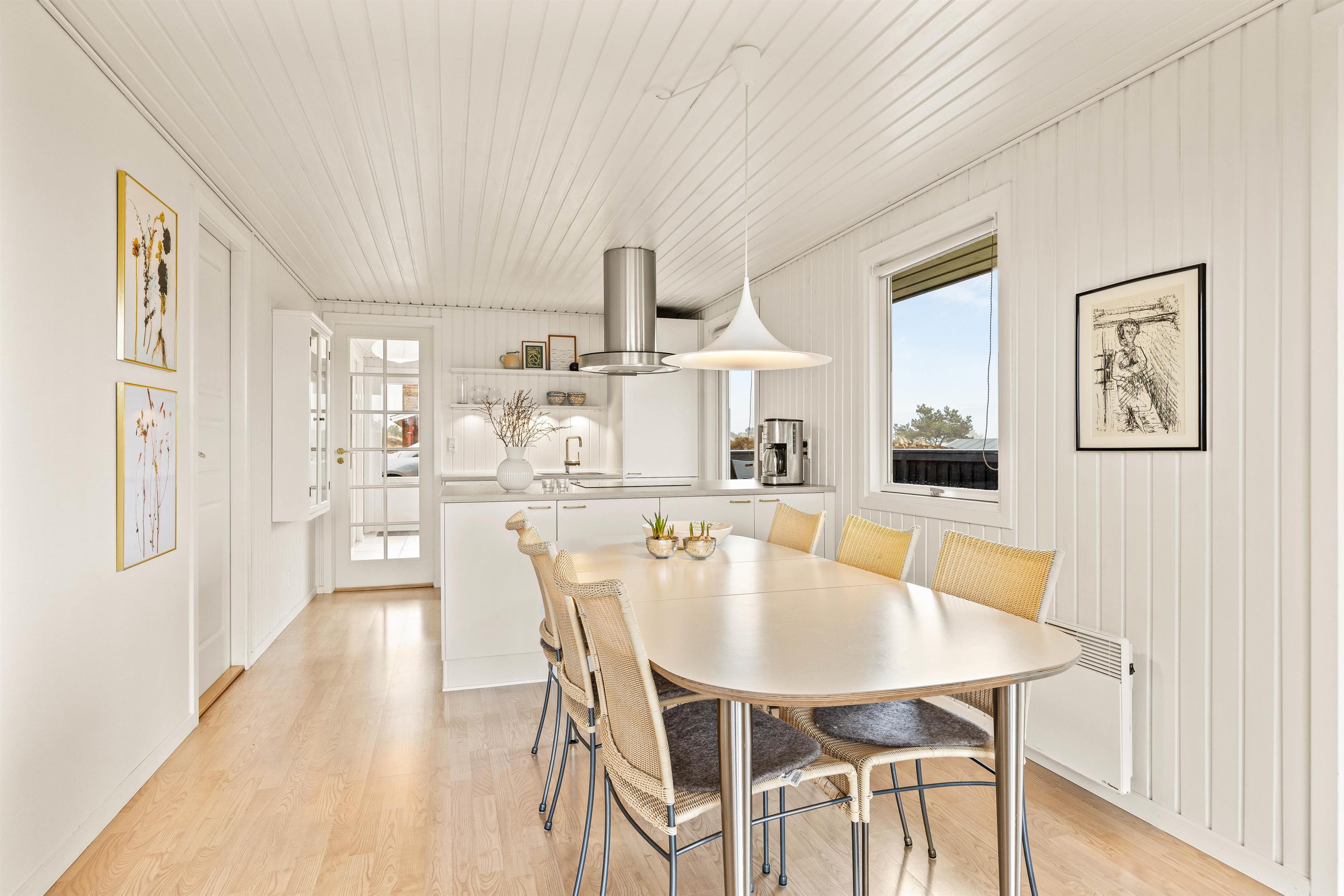 Dette flotte, lyse sommerhus er beliggende tæt på Henne Strand på en naturgrund for enden af en rolig sidevej. I 2023 er sommerhuset blevet renoveret, og her kan 6 gæster og deres hund få en dejlig ferie i hyggelige rammer. Rundt om sommerhuset er flere dejlige terrasser, og Vesterhavet er heller ikke langt herfra.
