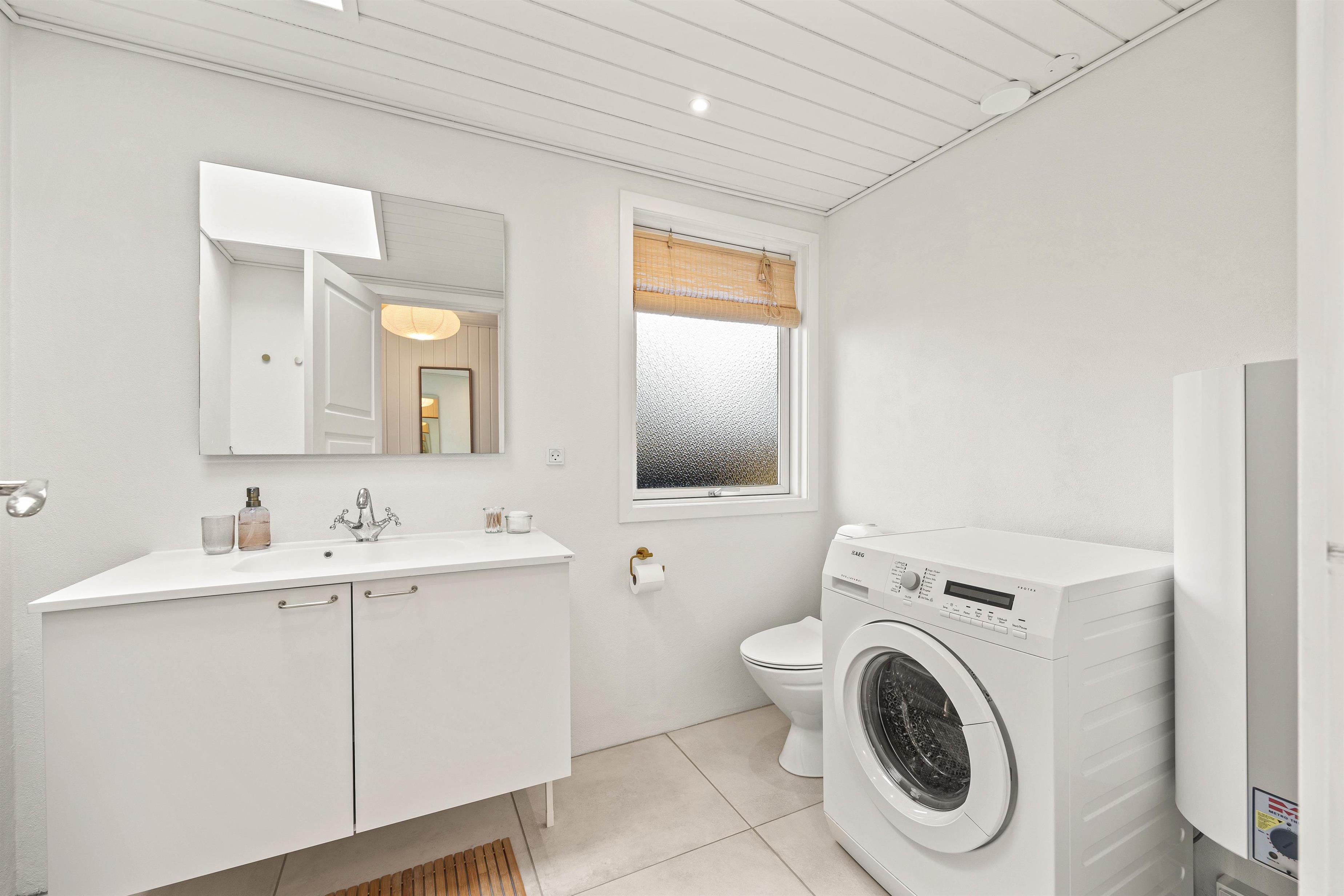 Badeværelset er udstyret med gulvvarme, og vaskemaskinen sørger for friske håndklæder hver dag. For en god nattesøvn er der 3 soveværelser, hvoraf 2 er indrettet med dobbeltsenge og et med 2 enkeltsenge.