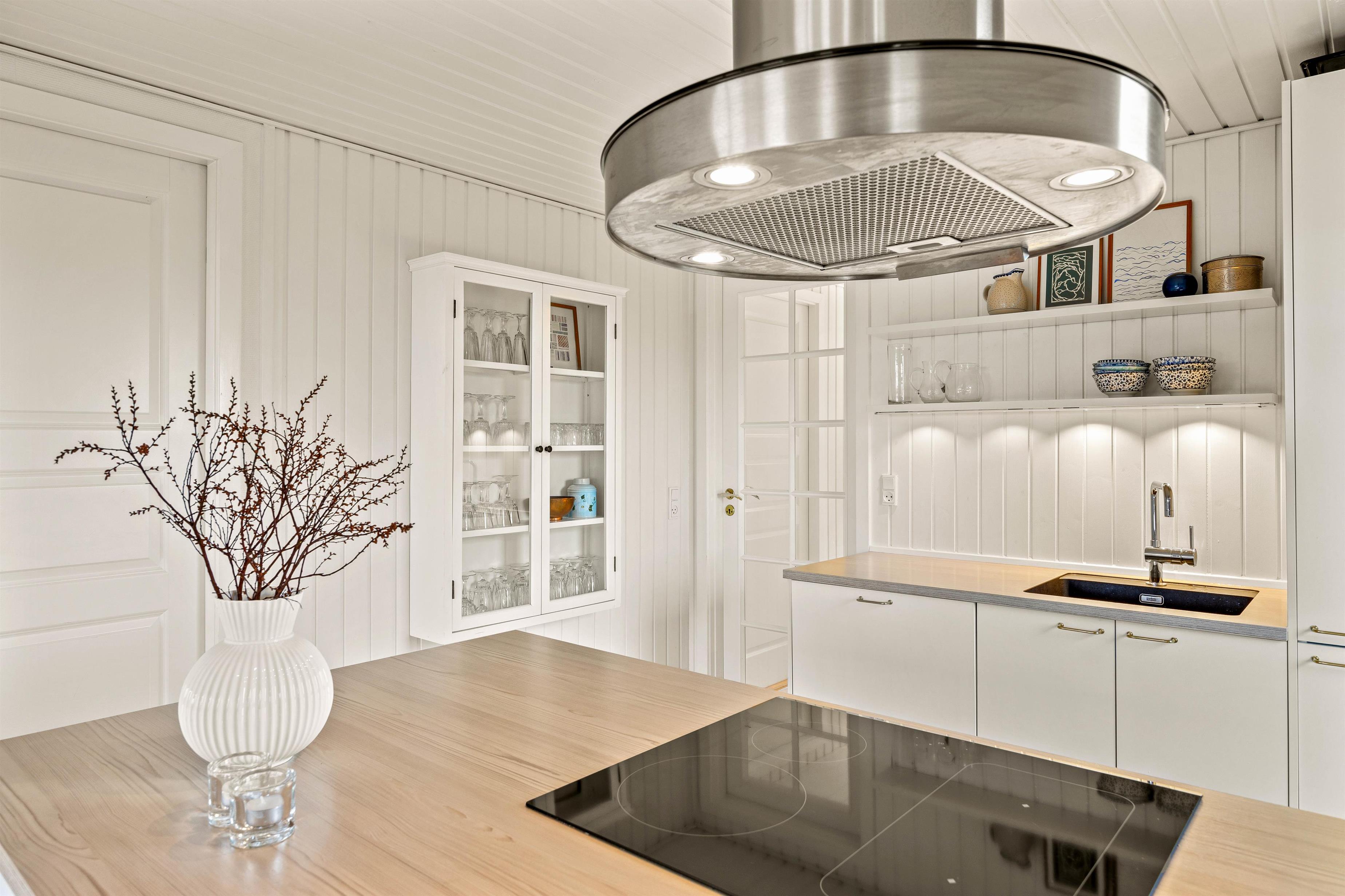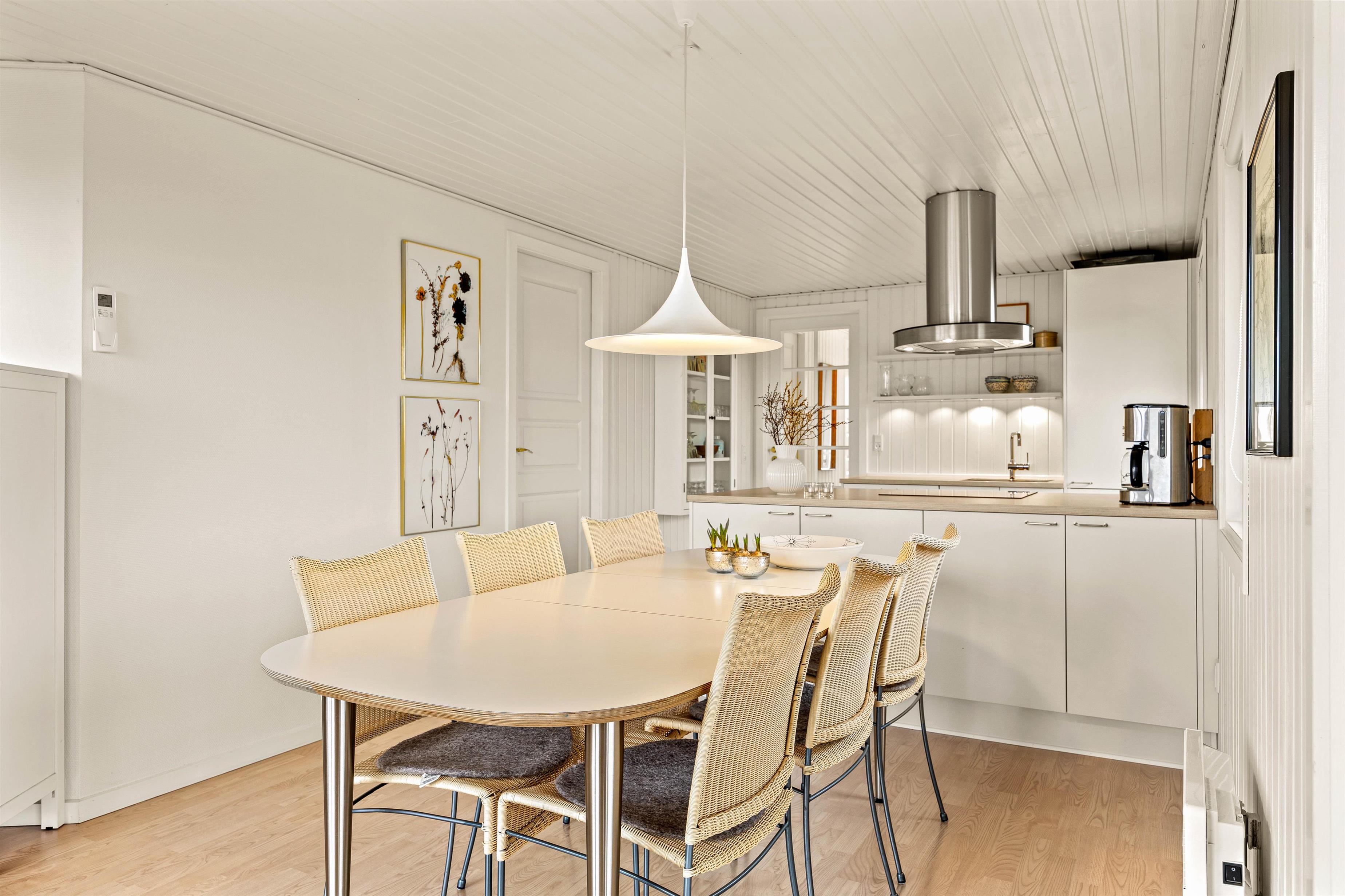 Saml familien i den rummelige stue, hvor brændeovnens varme breder sig. Den store hjørnesofa inviterer til afslapning med en god film eller bog. Ved sofabordet kan I spille brætspil, og på daybedden kan man ligge og nyde udsigten, for her er så dejligt, når solen står ind gennem vinduerne. Varmepumpen sørger for at opretholde et behageligt indeklima.
