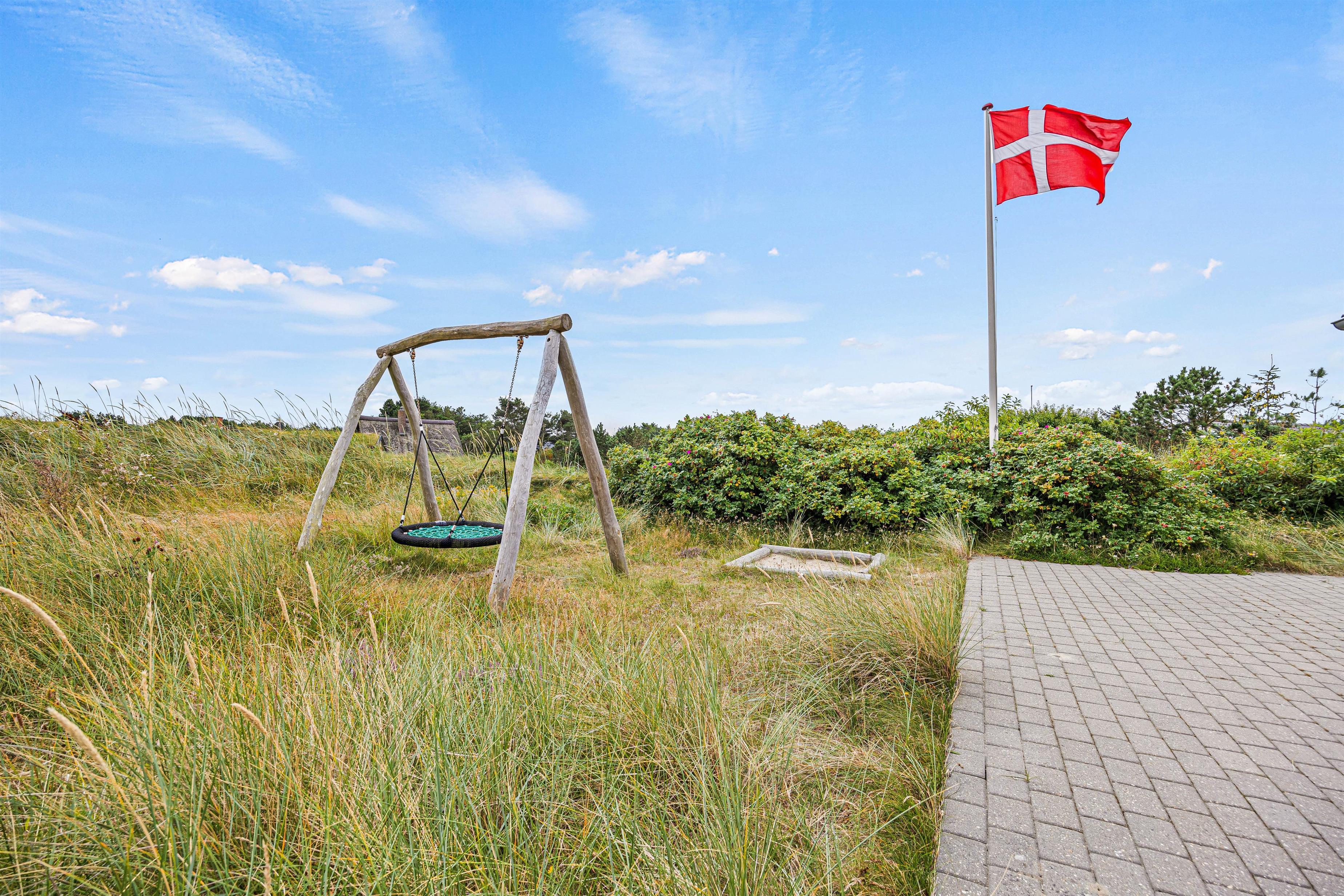 Rundt om hele feriehuset er der anlagt en gennemført terrasse, som gør det oplagt at flytte med solen på solrige dage. I skal blot finde jer til rette i de lækre havemøbler, der er stillet til rådighed i de mange hyggelige kroge; Her kan I nyde jeres yndlingsbog, mens I holder øje med, at børnene leger på gyngestativet eller i sandkassen.