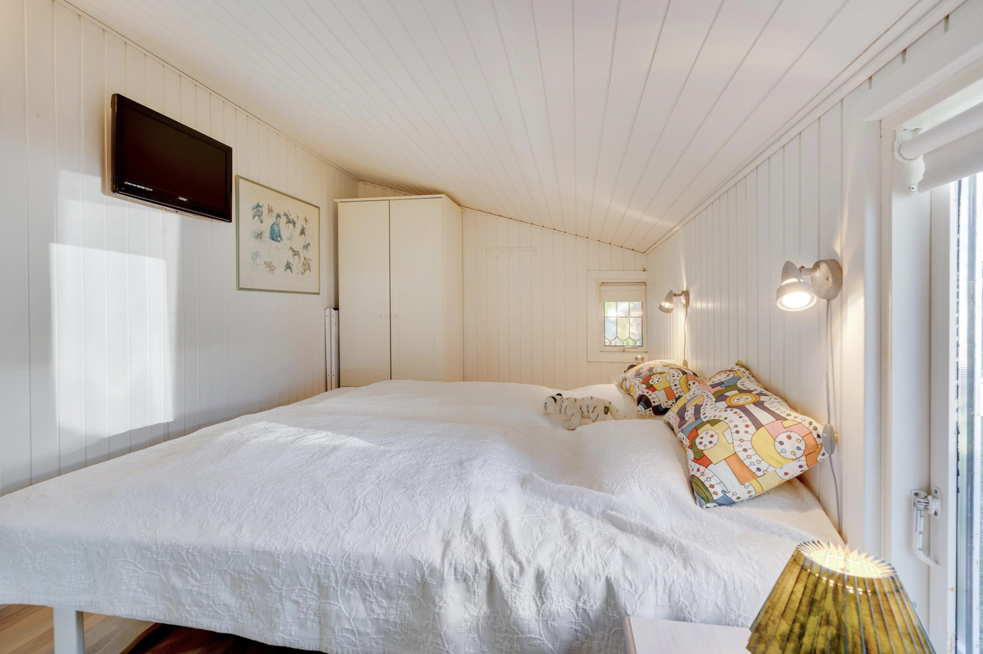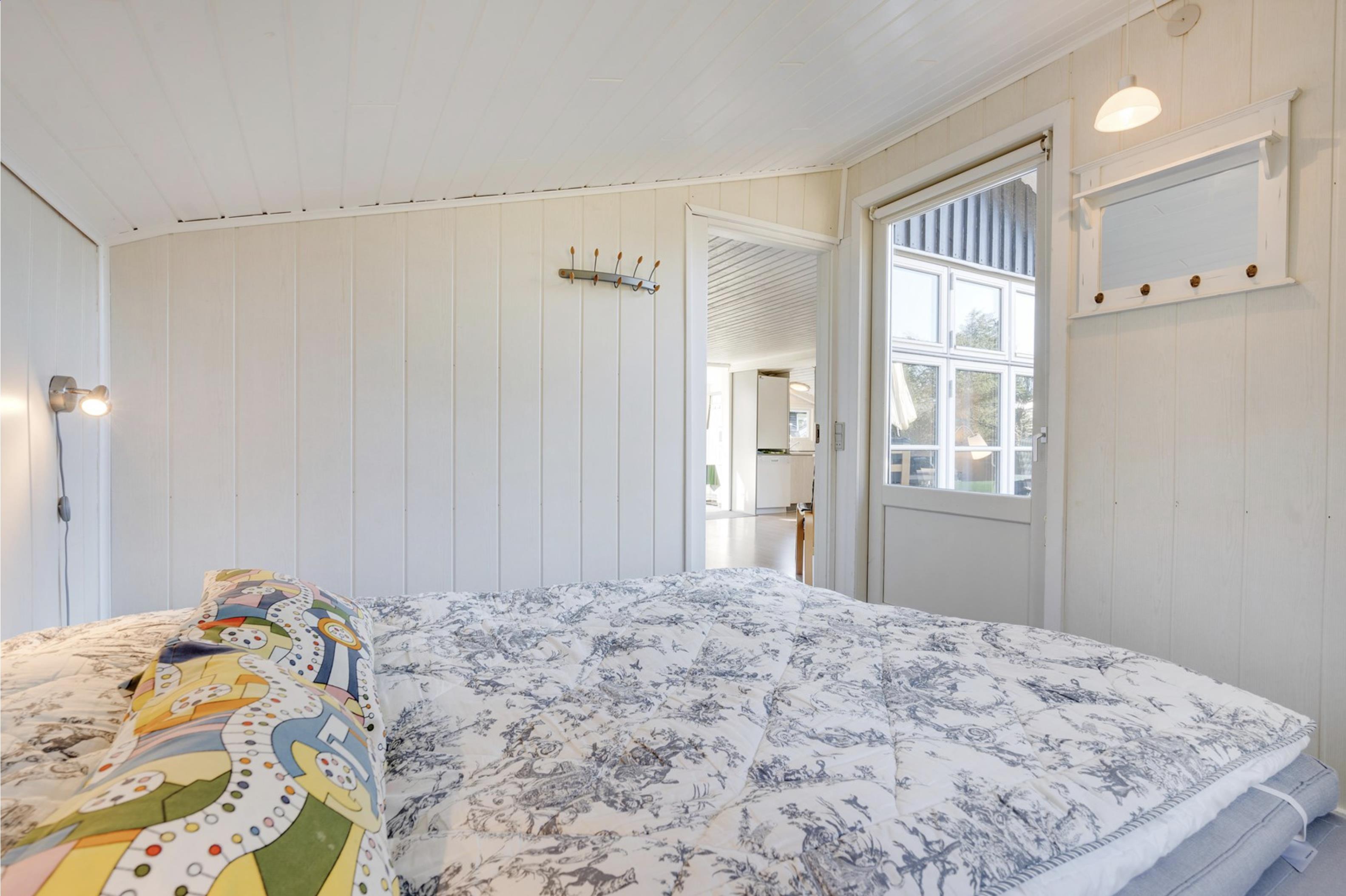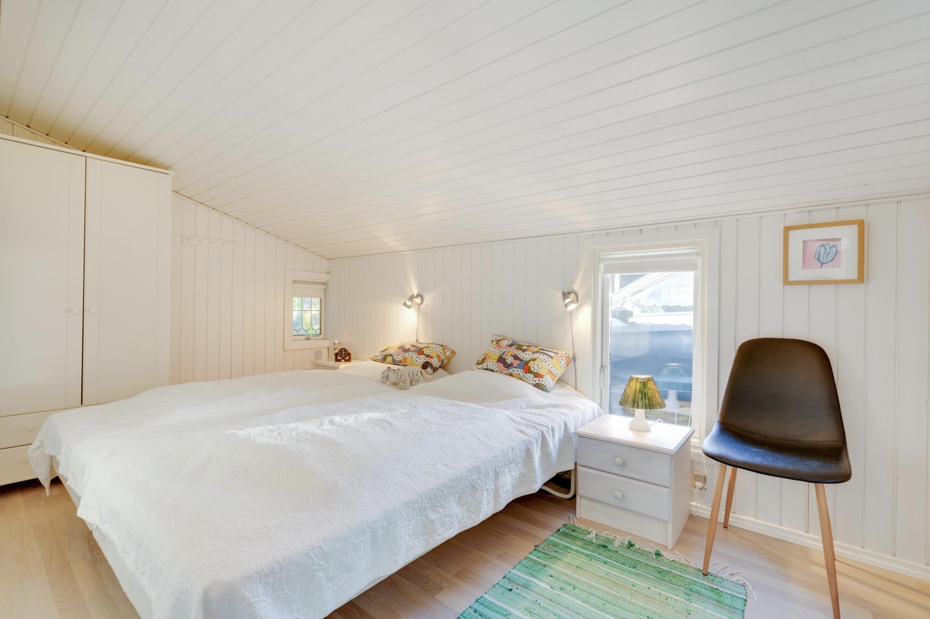 Sommerhuset råder over 2 lyse og rummelige soveværelser, som begge er udstyret med dobbeltsenge. På badeværelset, som har indlagt gulvvarme, befinder sig en vaskemaskine, som kan være jer behjælpelig med jeres ferievasketøj.