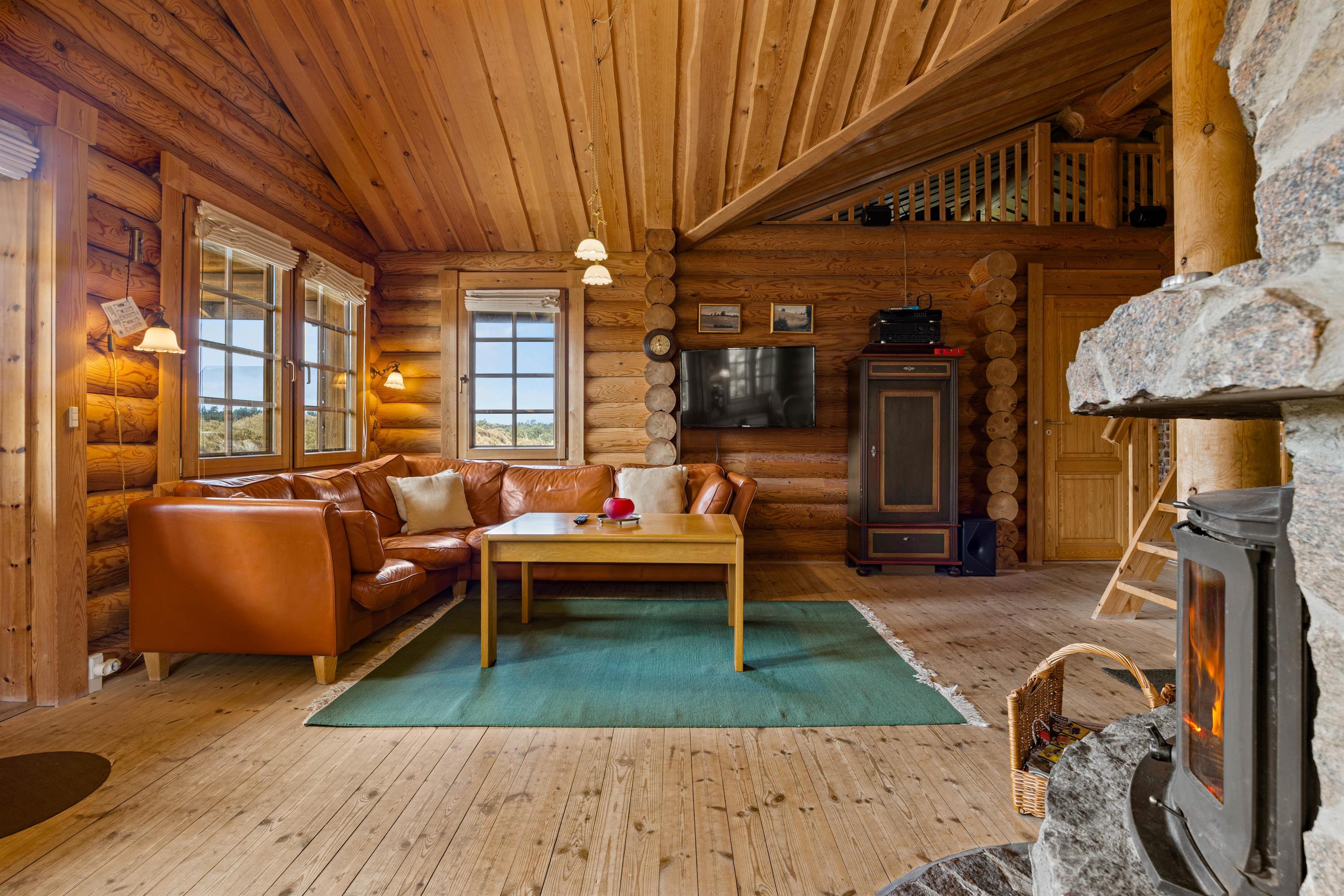 Sommerhuset har, både ude og inde, den gennemførte stil og træet kommer virkelig til sin ret. De mørke træstammer skaber en hyggelig atmosfære, hvor I får lyst til at putte jer i sofaen med en god bog. Stue og køkken er forbundet, og her får I helt sikkert nogle skønne stunder. I midten af rummet er den murede brændeovn, hvorfra varmen og hyggen breder sig. Tilbered en skøn simreret og glem ikke den gode rødvin. Udover brændeovnen er her også en energibesparende varmepumpe, som sørger for et behageligt indeklima.