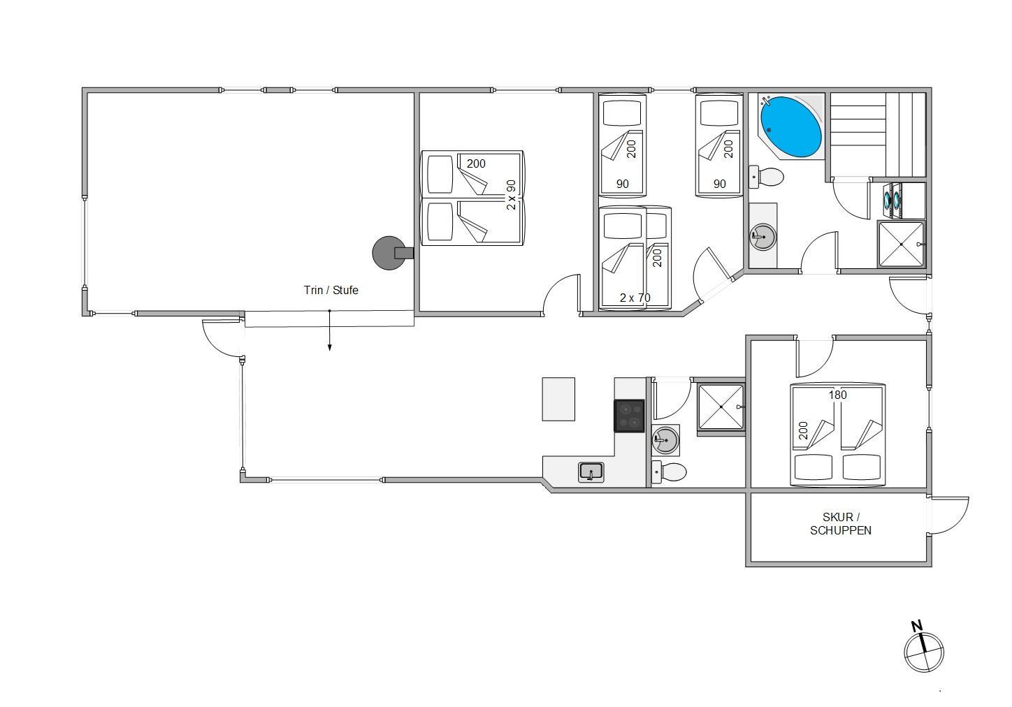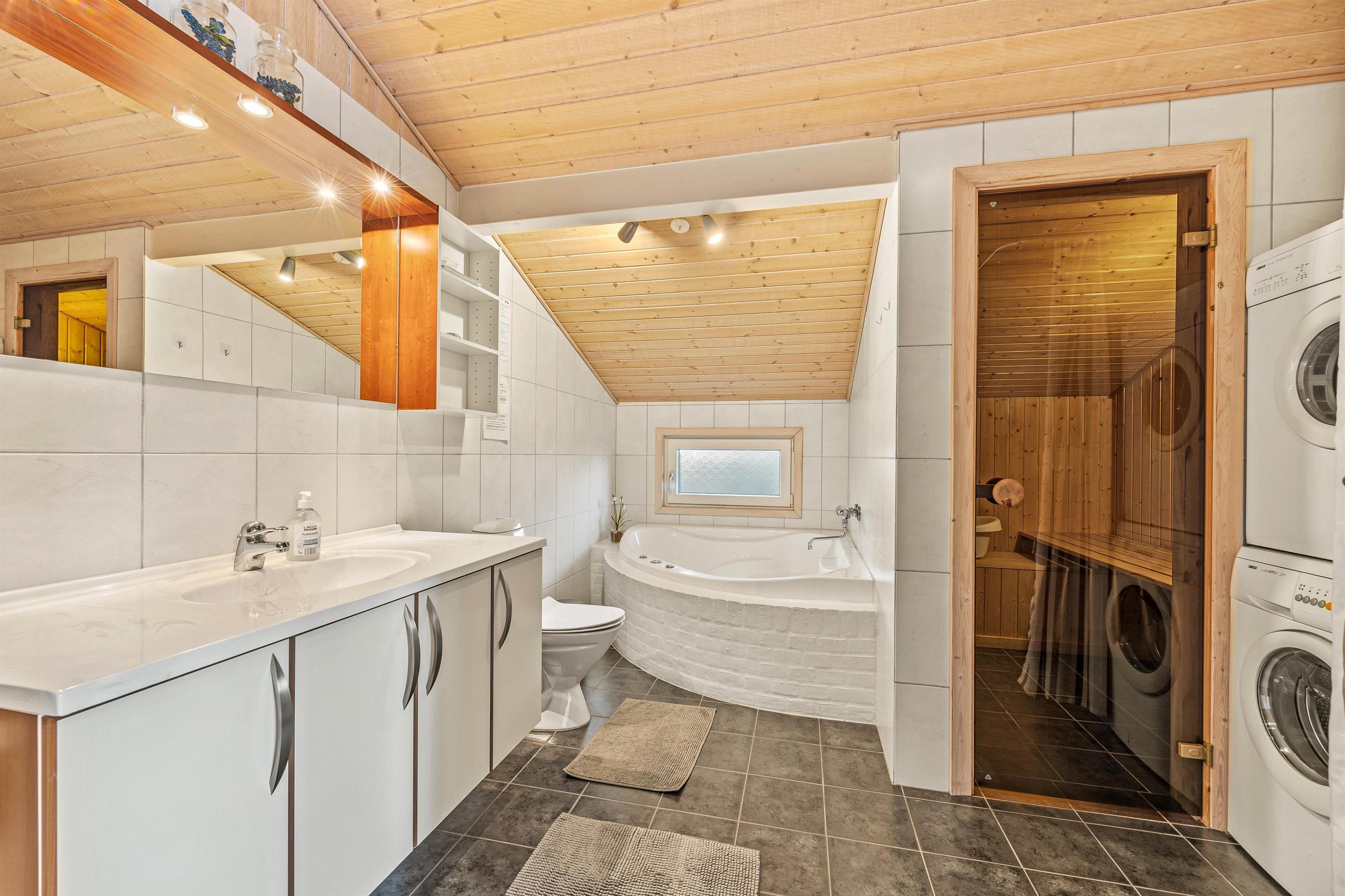 De 2 badeværelser har gulvvarme, og i forbindelse med det store badeværelse er også spabad og sauna, så I kan arrangere jeres egen lille wellnessaften. Der er vaskemaskine og tørretumbler til rådighed for jer, så I kan få frisket håndklæderne op i løbet af ferien. De 8 sengepladser er fordelt på 3 soveværelser. 1 soveværelse med en komfortabel dobbeltseng, 1 soveværelse med 2 enkeltsenge, som er stillet sammen til en dobbeltseng, og 1 større soveværelse med 2 enkeltsenge og 1 køjeseng. Ideelt som fælles børneværelse med plads til 4. Slutrengøring er inkluderet i prisen, så den behøver I ikke at bekymre jer om.