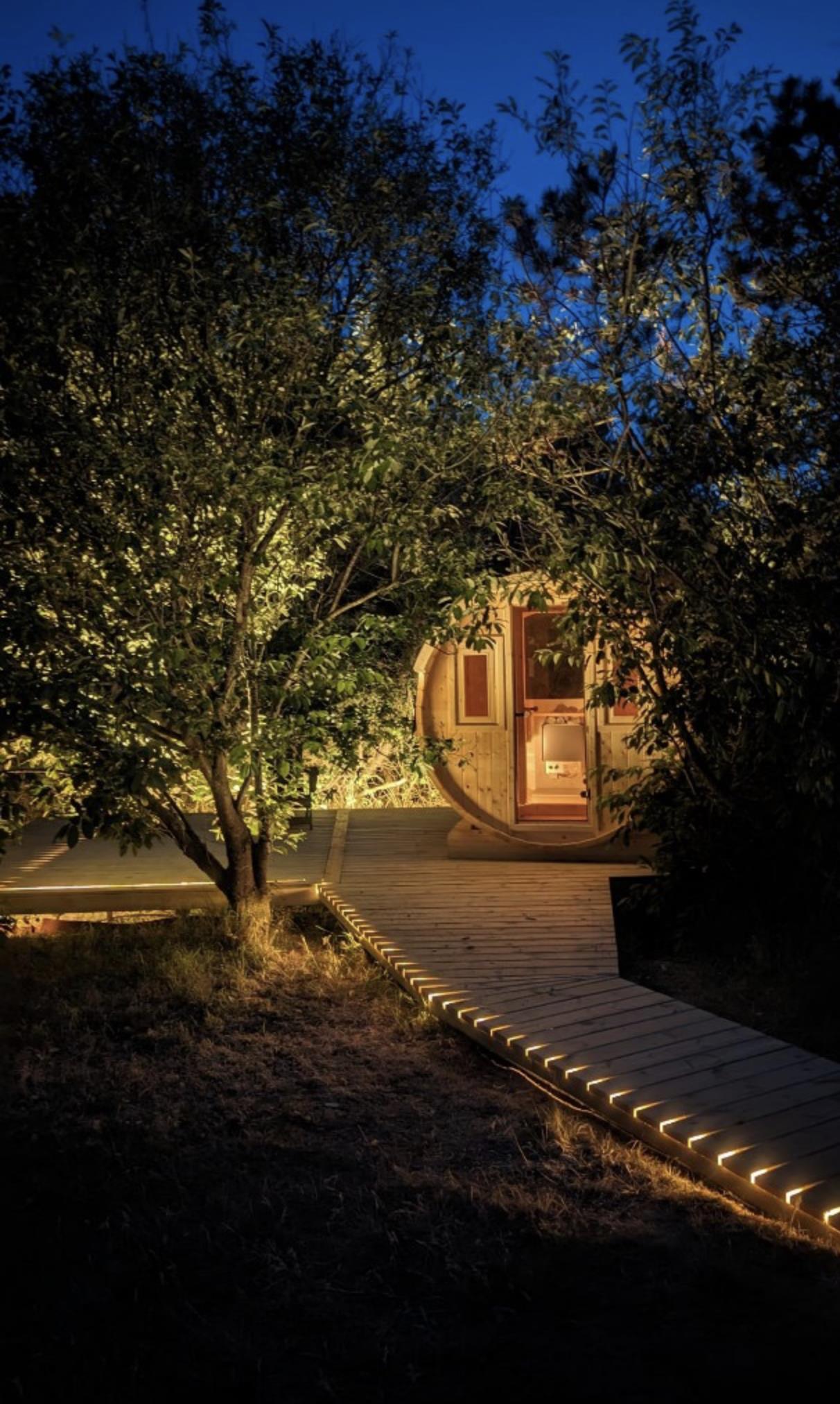 Tænd op i grillen ind under aften, og nyd et lækkert grillmåltid sammen imens skyggerne bliver lange. Bagefter kan I gå en frisk tur til stranden og opleve solen gå ned i Vesterhavet. Måske tage en dukkert, og derefter gå tilbage til udesaunaen og blive varmet godt igennem igen.