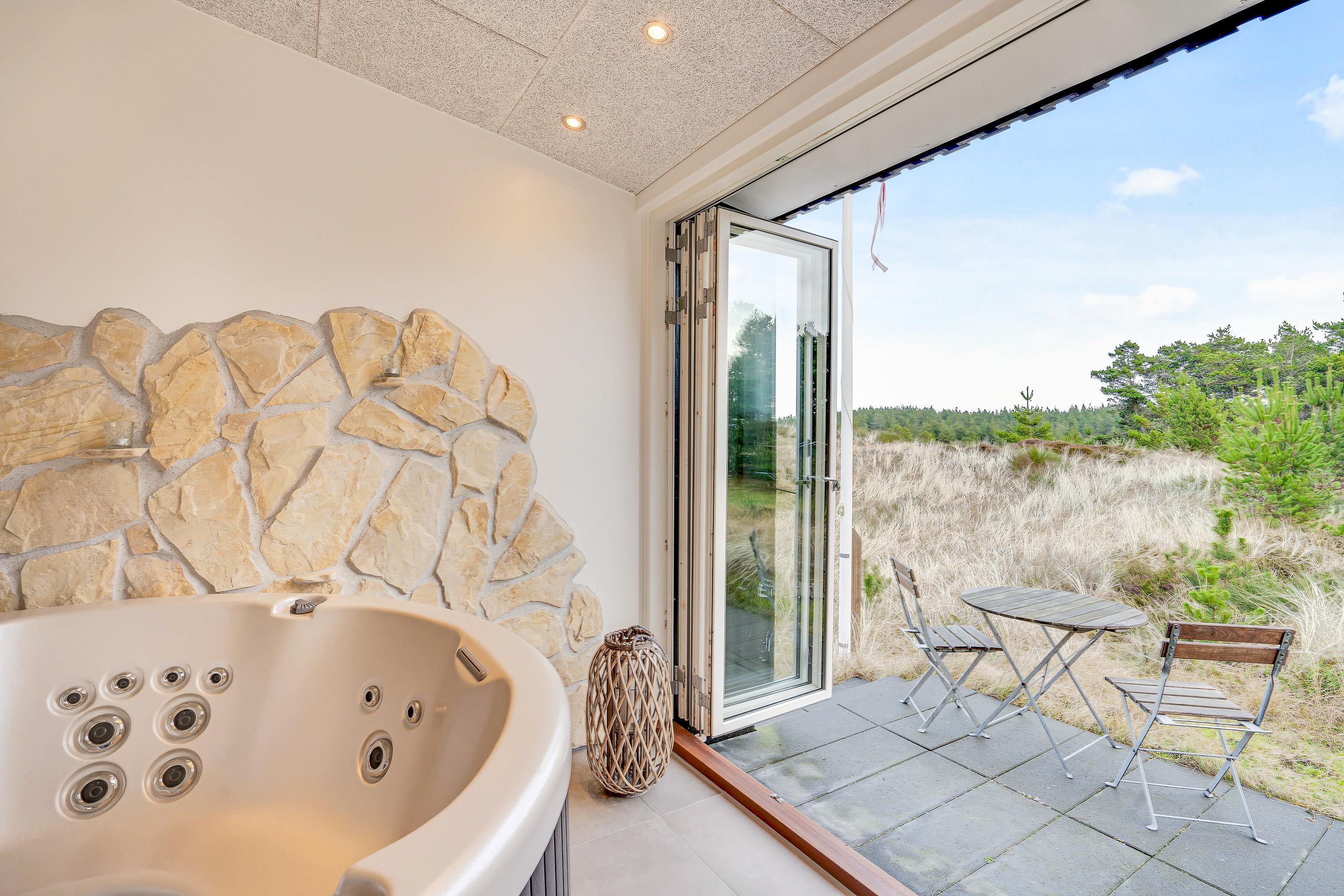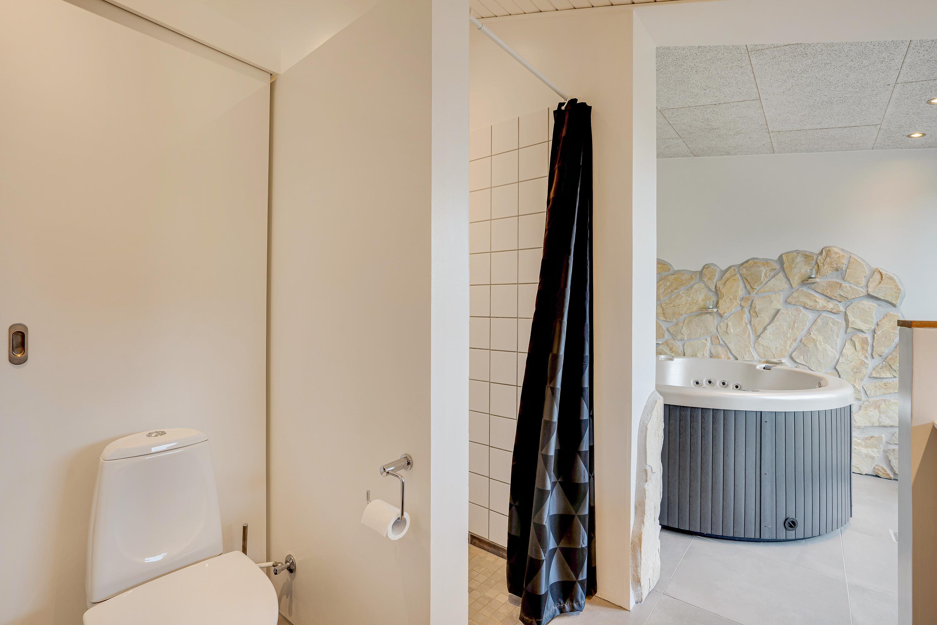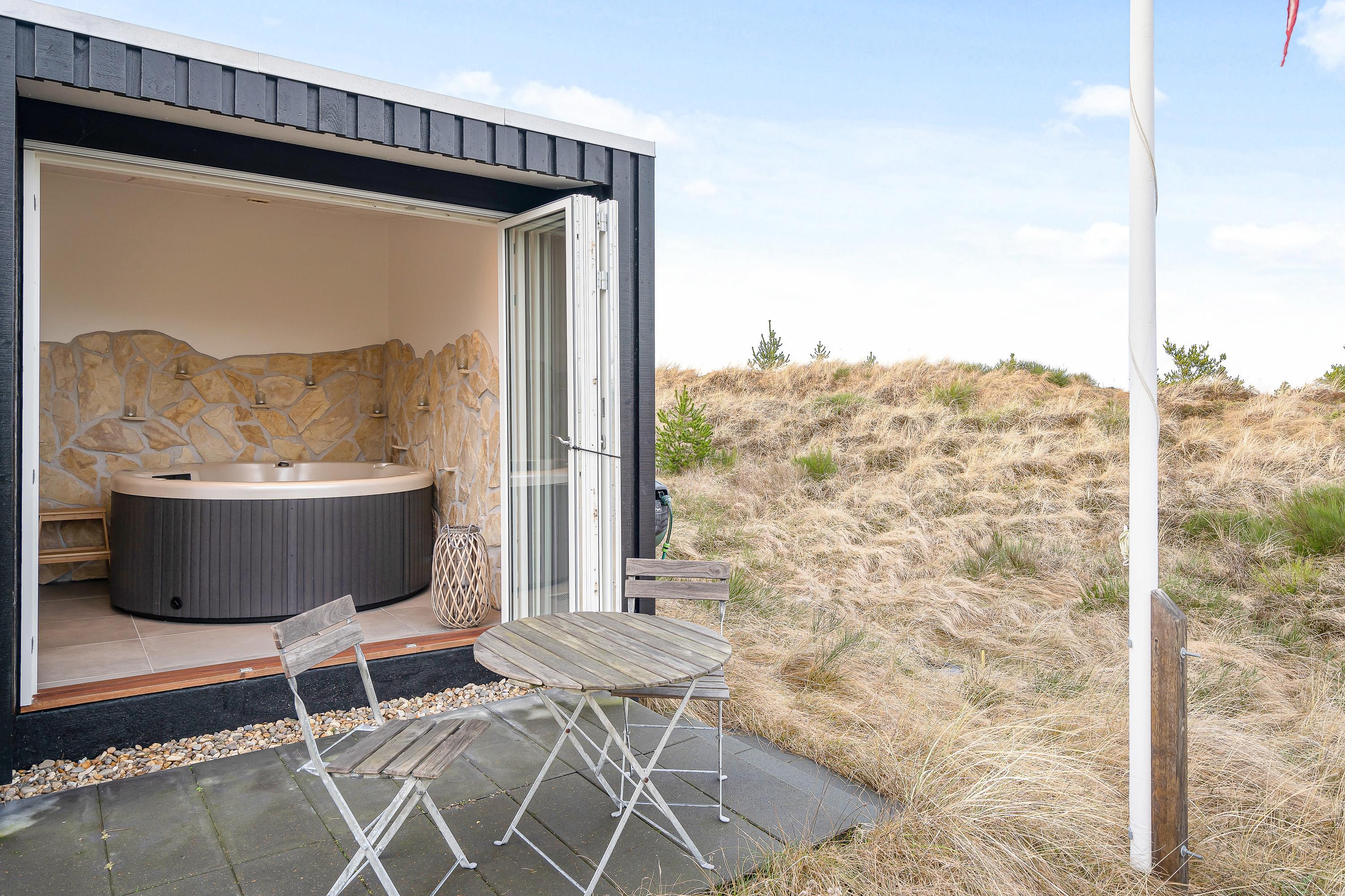 Sommerhuset byder på flere højdepunkter. Det første er selvfølgelig den skønne spa, som ligger i forbindelse med sommerhusets badeværelse. Her er der skydedøre, der kan åbnes, så spaen også kan føles som en udespa.