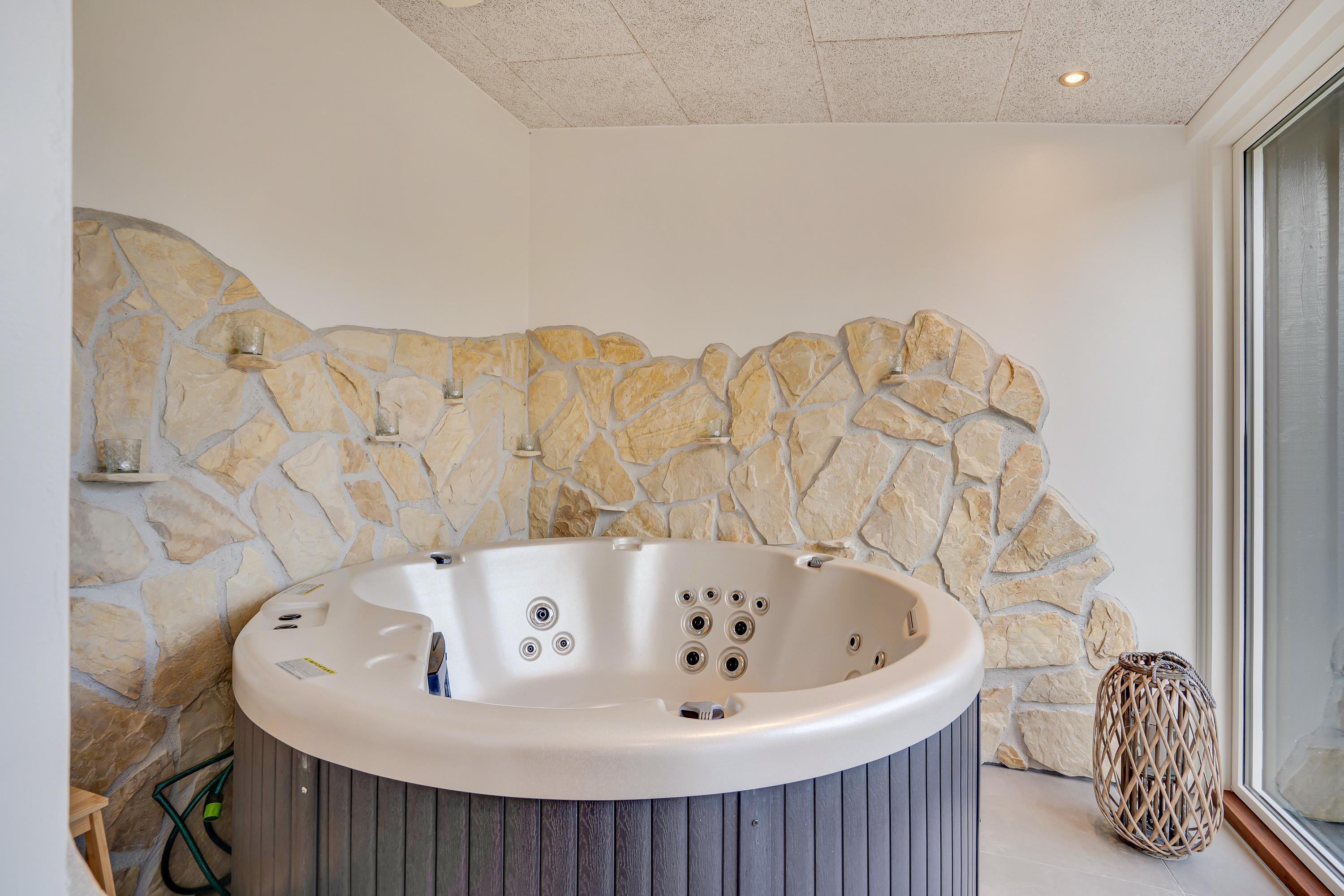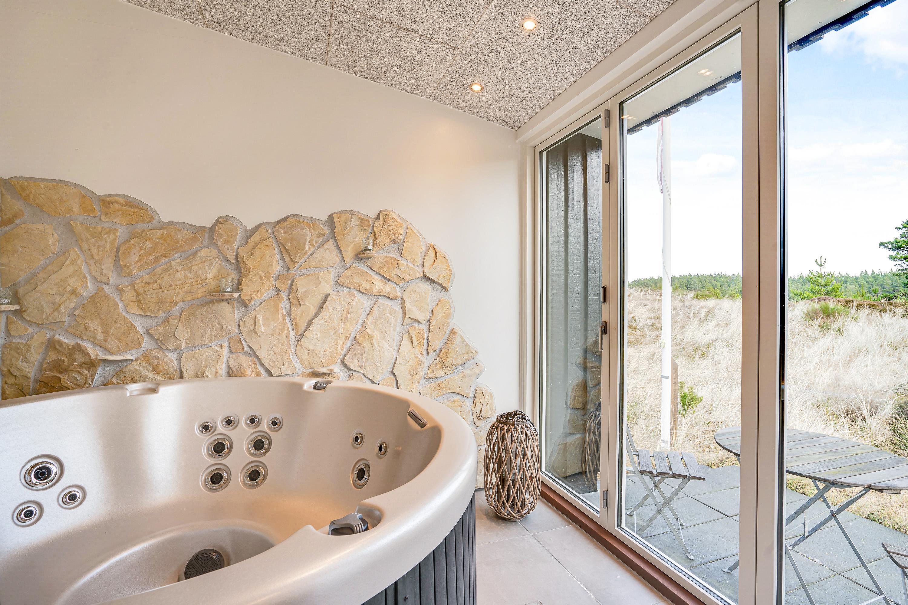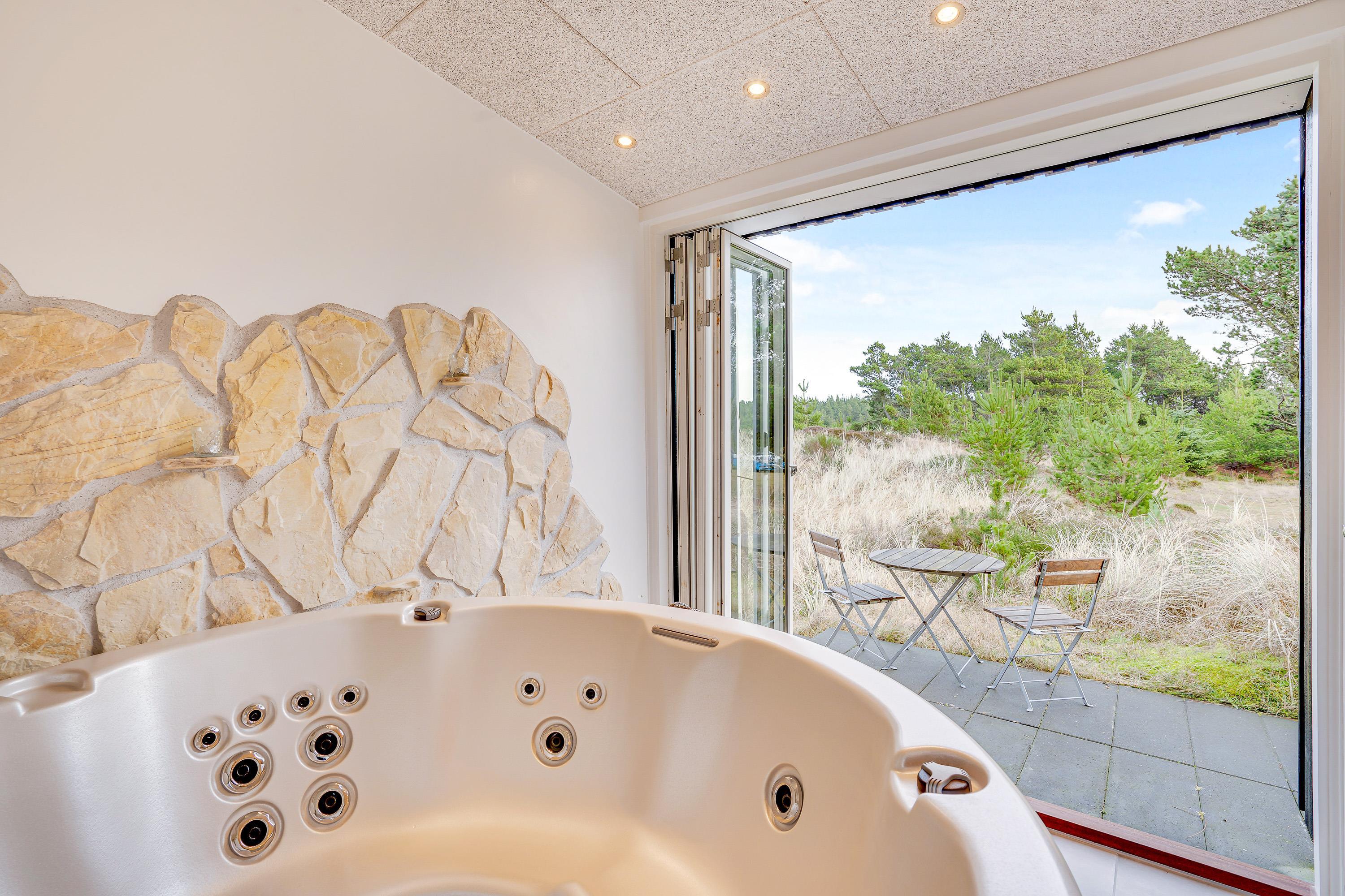 Sommerhuset byder på flere højdepunkter. Det første er selvfølgelig den skønne spa, som ligger i forbindelse med sommerhusets badeværelse. Her er der skydedøre, der kan åbnes, så spaen også kan føles som en udespa.