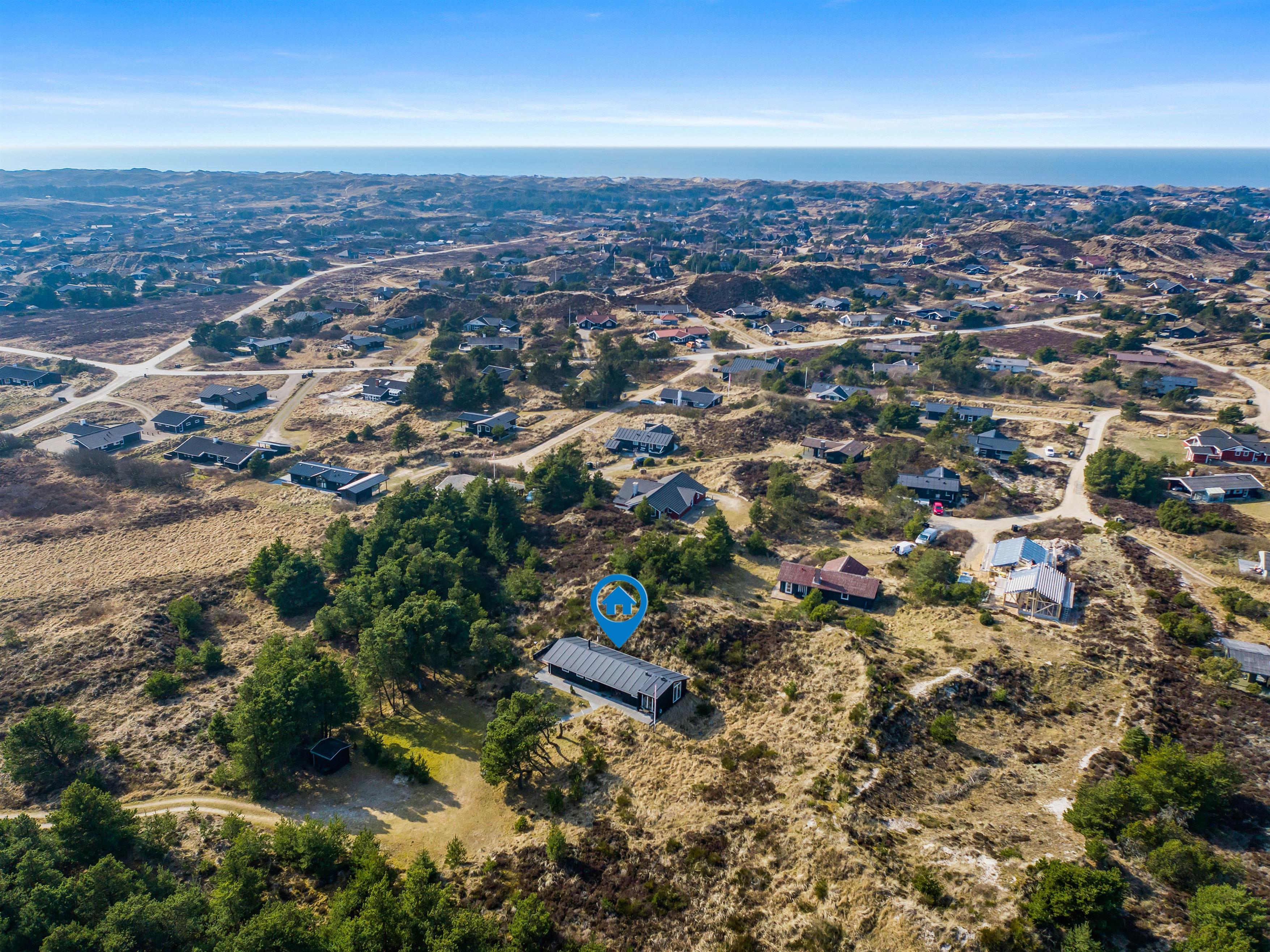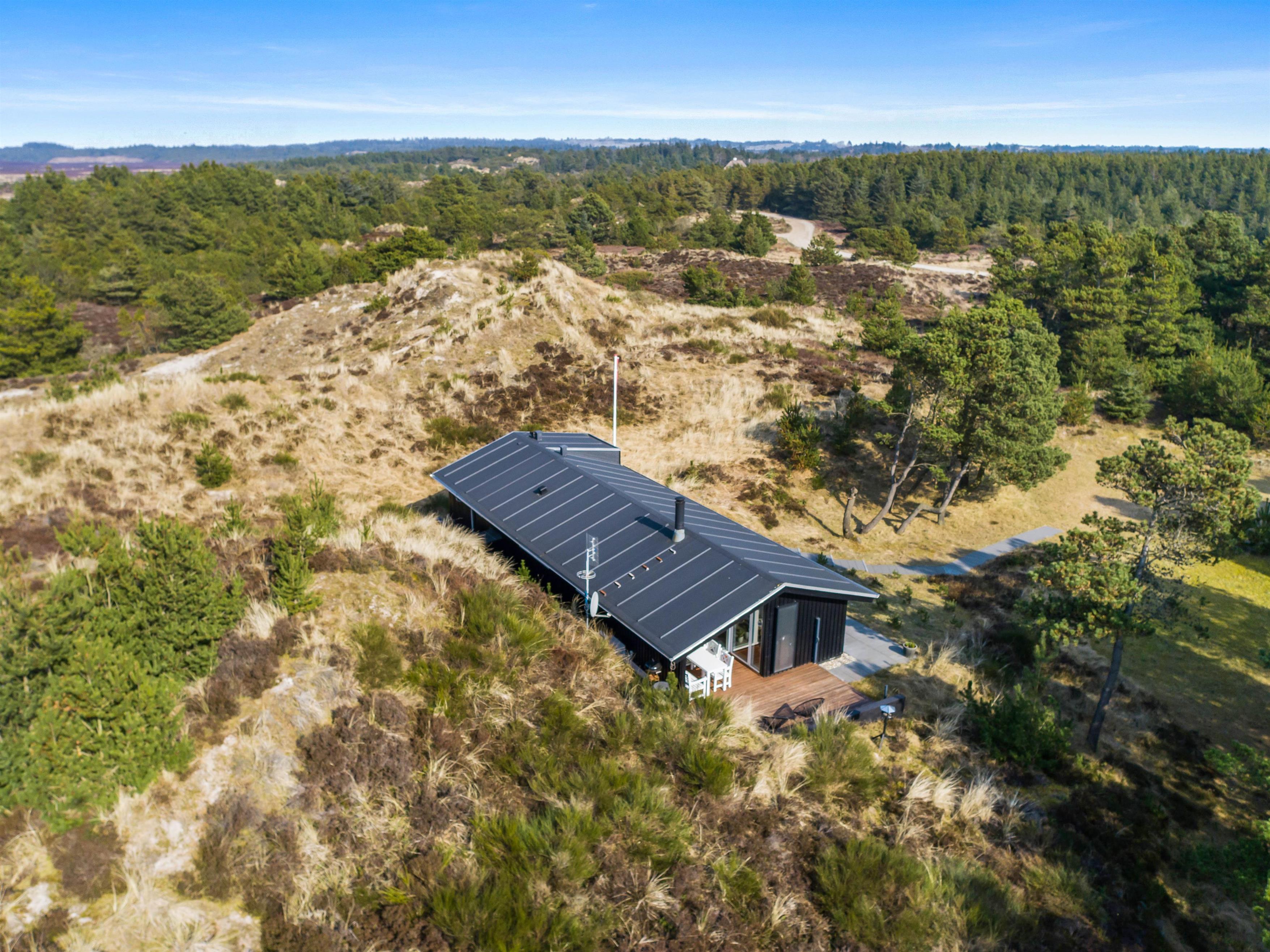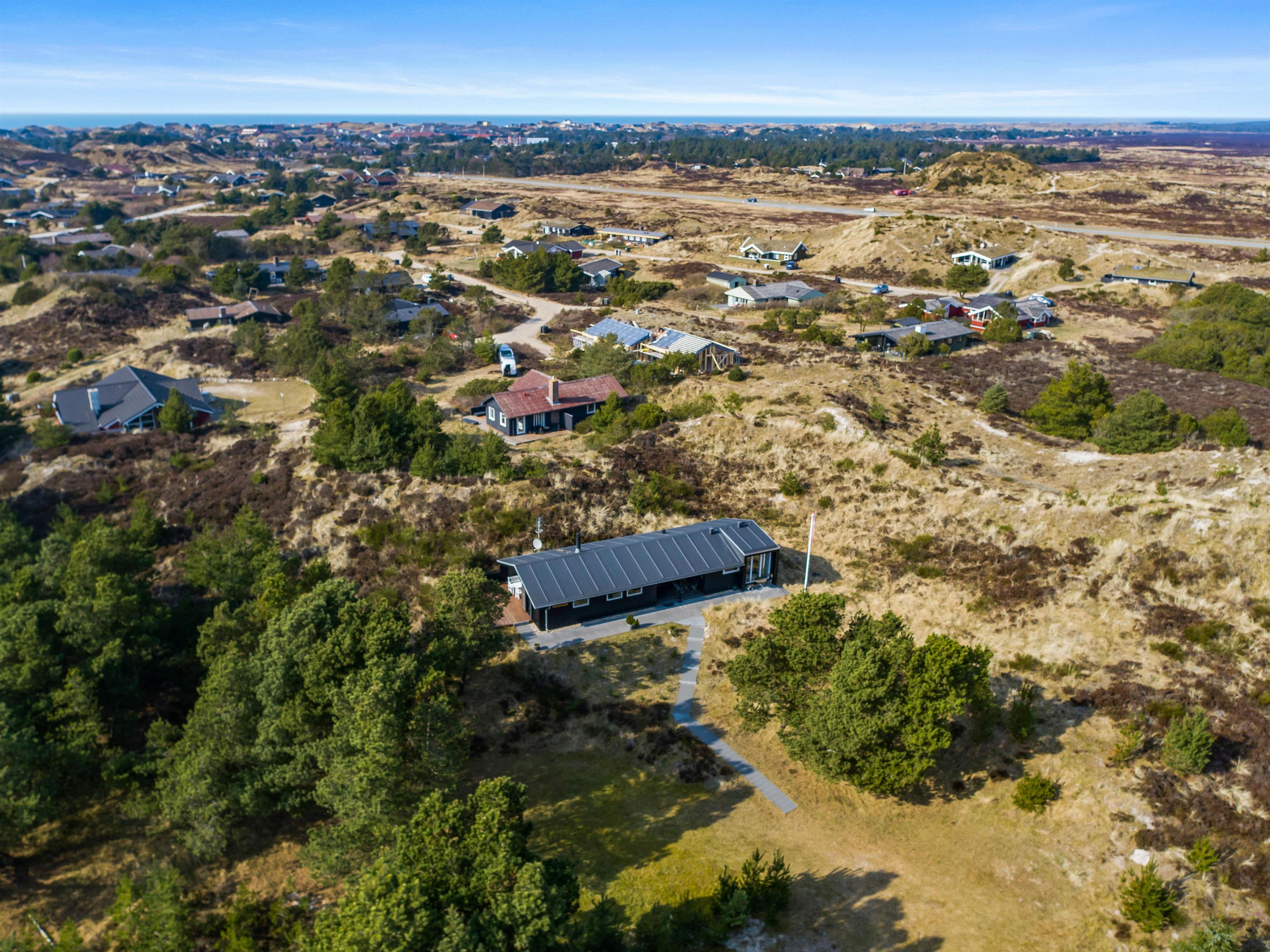 Sommerhuset er beliggende på en grund, der er mere end 5.500 kvadratmeter stor, og her er der altså masser af plads, I kan boltre jer på under jeres ferie i Henne Strand. Desuden er det også en rolig beliggenhed, hvor I kan nyde masser af ro på ferien.