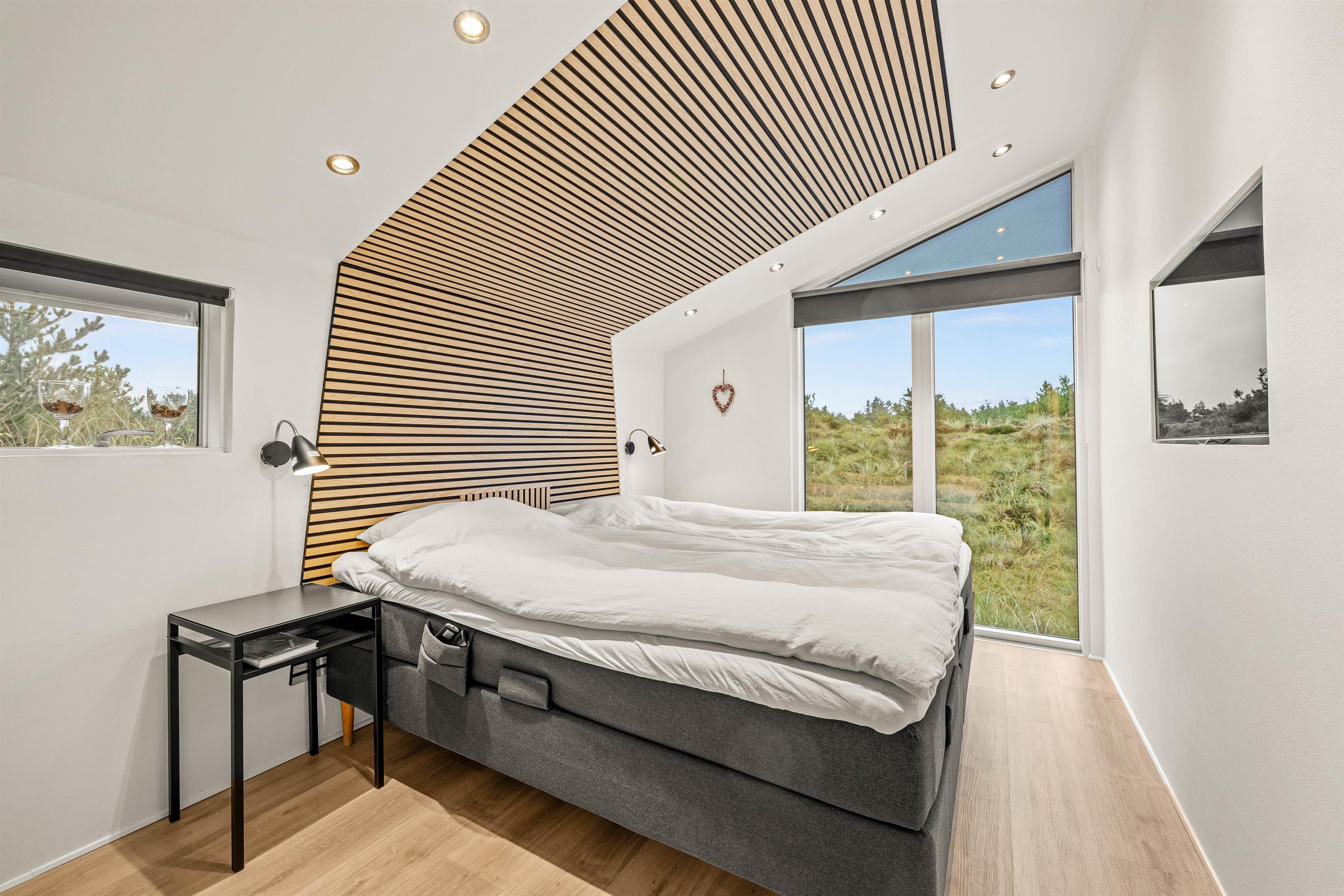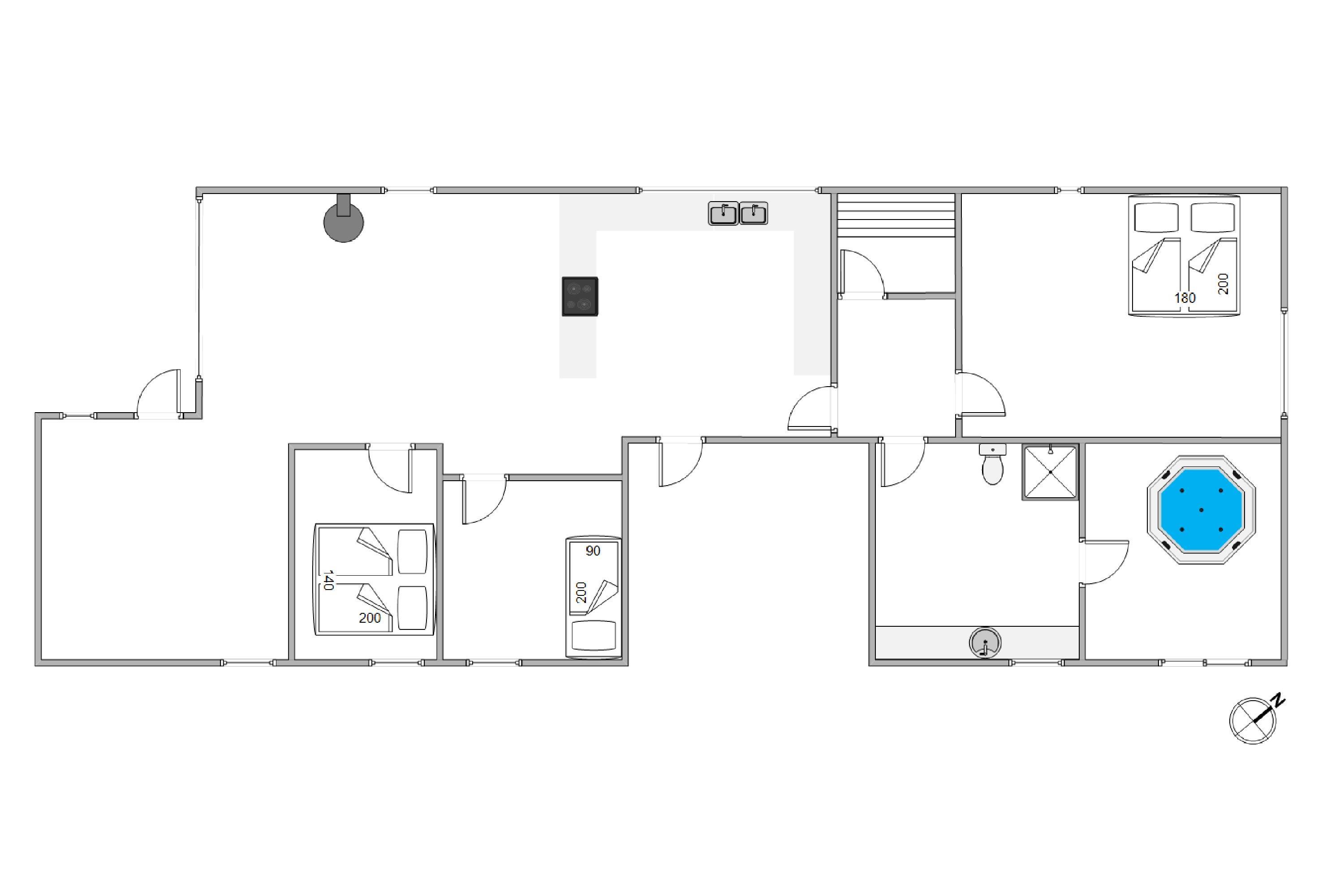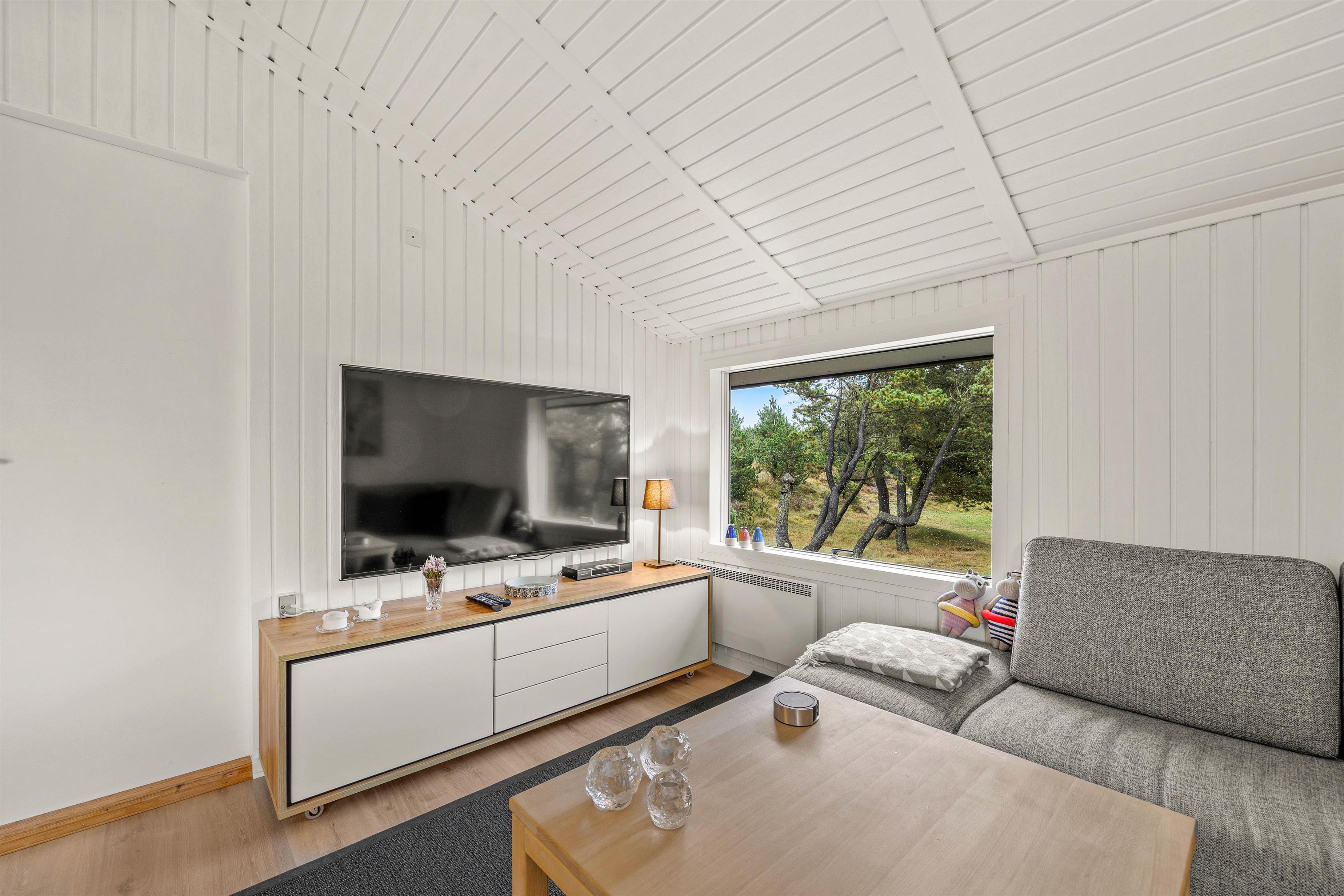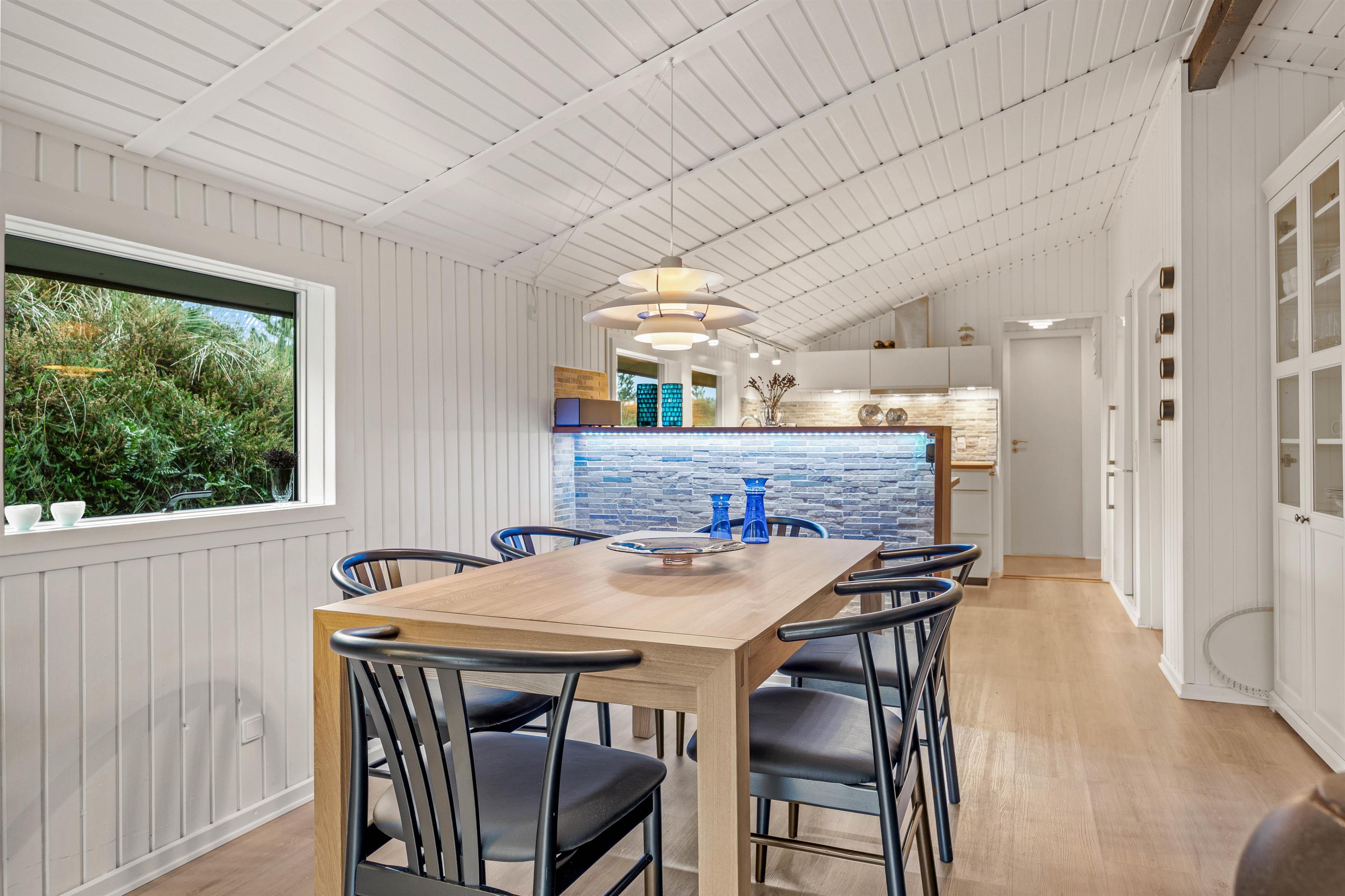 Sommerhuset er 90 kvadratmeter stort, og her finder I 3 soveværelser og 1 badeværelse – på det største soveværelse er der elevationssenge. Desuden er der et stort alrum, der forener køkken, stue og spiseplads, hvor I har mange dejlige feriestunder i vente – I kan blandt andet se jeres yndlingsfilm og -serier via sommerhusets Chromecast. Her sørger brændeovnen for at fuldende den hyggelige feriestemning.