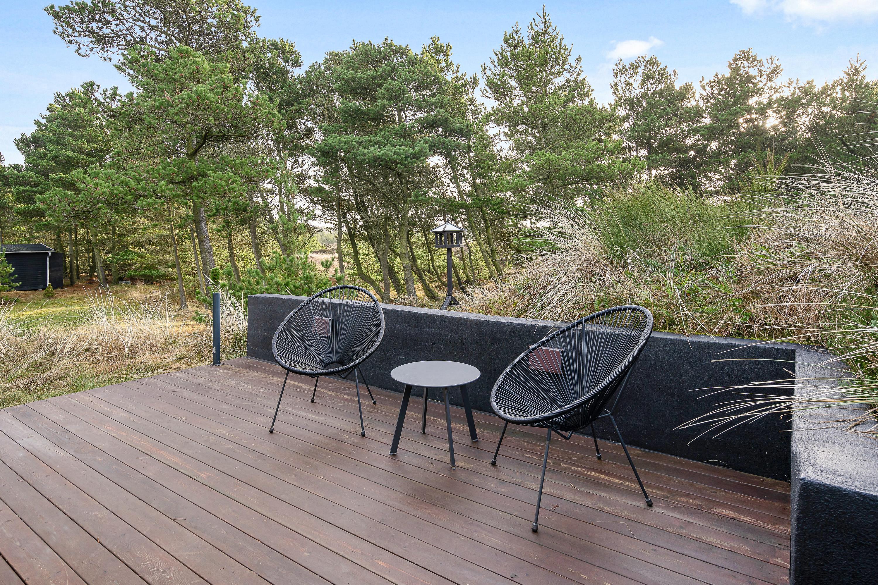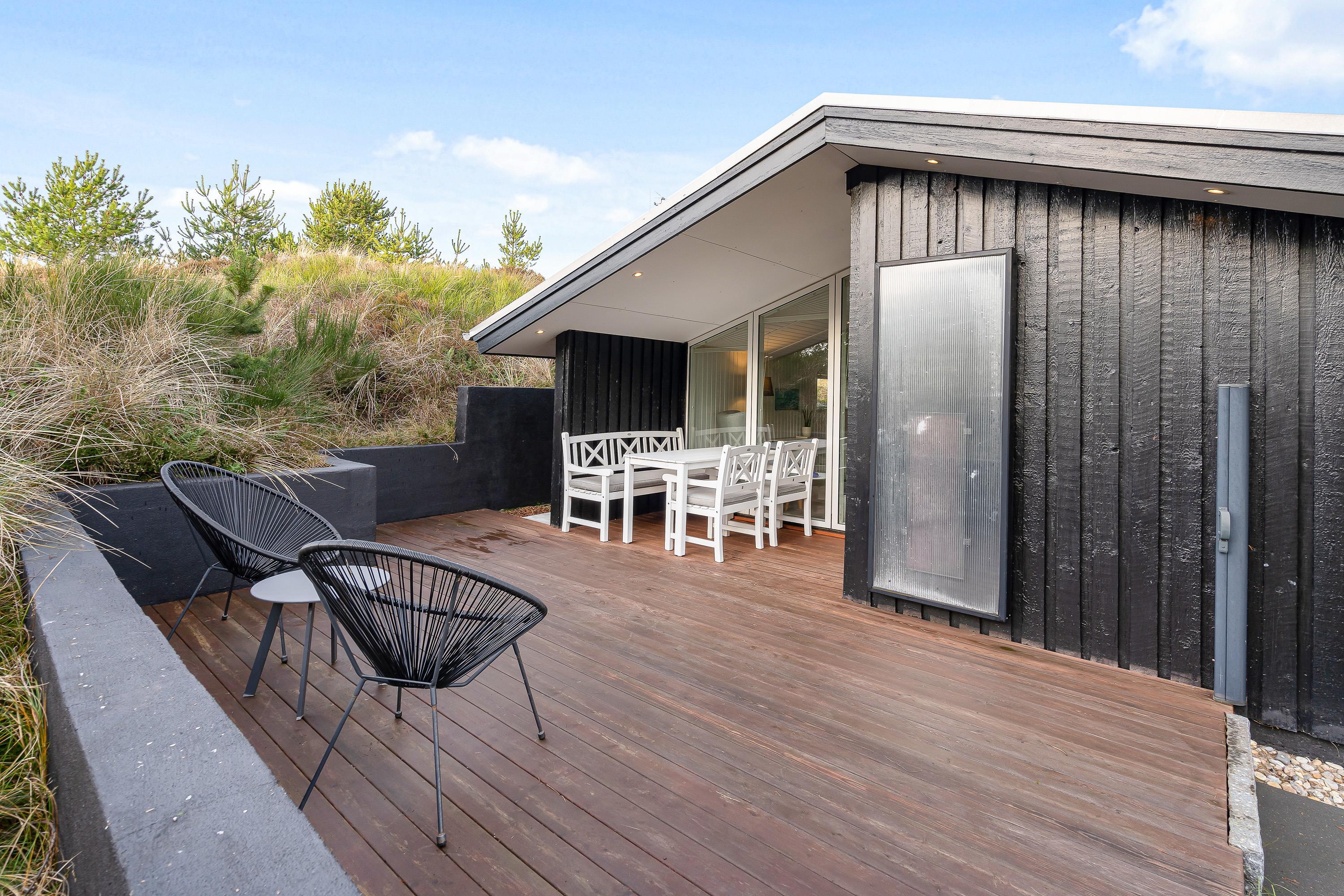 Til sommerhuset er der en skøn terrasse, hvor I har havemøbler til rådighed. Dermed vil I kunne sætte jer godt til rette på en god plads i solen og virkelig få slappet af. Derudover er der også en gasgrill til rådighed på terrassen, så I kan afslutte de dejlige feriedage med en lækker grillmiddag.