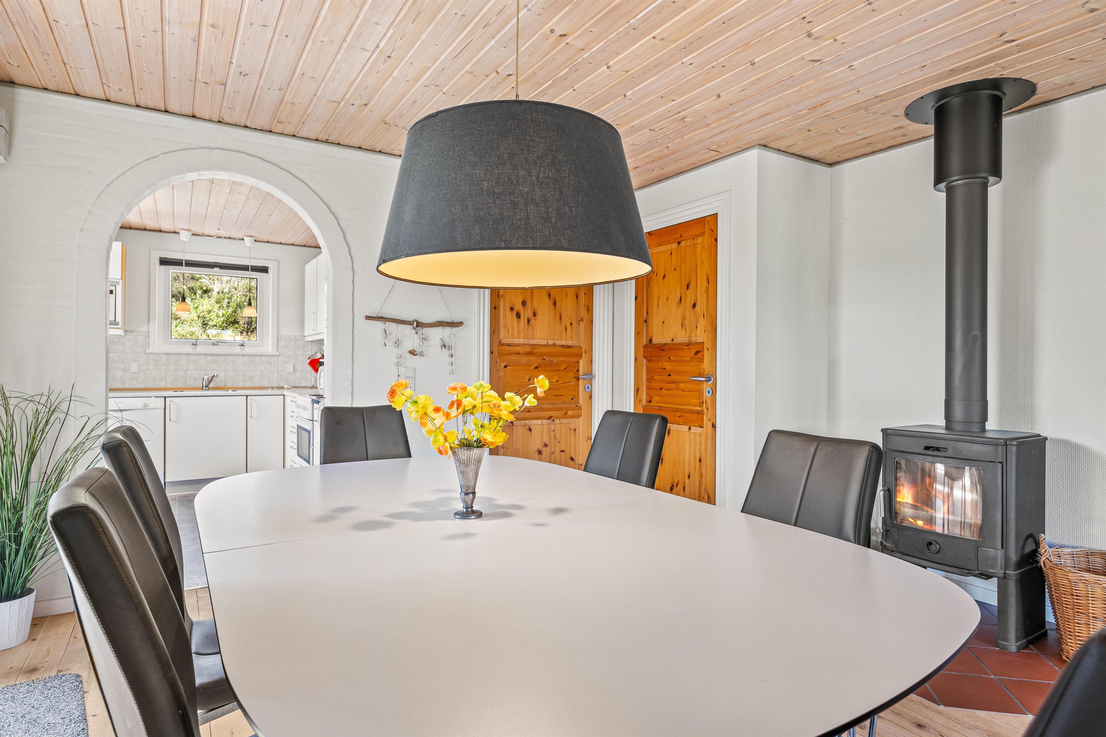 Stuen er udstyret med en hyggelig brændeovn, der skaber den perfekte atmosfære for de køligere aftener. Sommerhuset har desuden en luft til luft varmepumpe, der sikrer et behageligt indeklima hele året rundt. Chromecast som er indbygget i TV er også tilgængeligt, så I kan streame jeres yndlingsserier og -film direkte på sommerhusets tv.