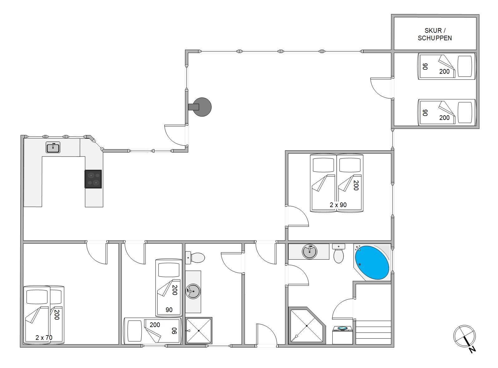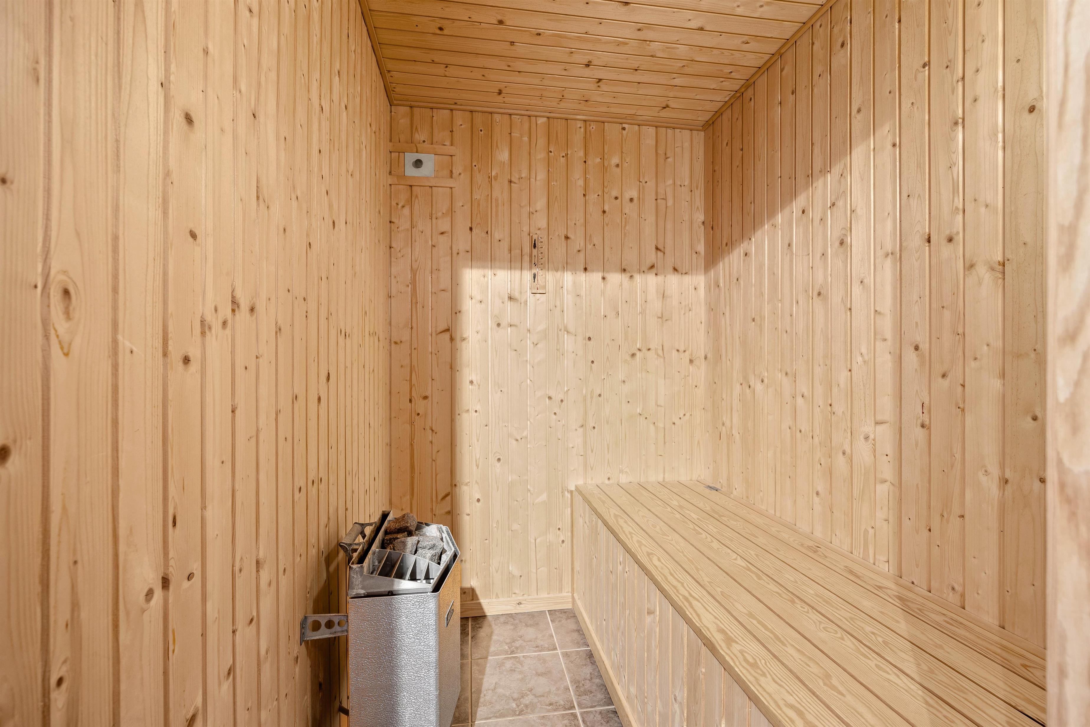 Skal I helt ned i gear? Så finder I sauna og spa på det ene af feriehusets 2 badeværelser. Her kan I forkæle jer selv, tage en ”svedtur” i saunaen og lade spabadets bobler massere de trætte muskler – helt perfekt efter en lang dag i naturen. Når timerne bliver sene, venter jer 4 fine soveværelser. Alle soveværelser har gulvtæppe og mulighed for opbevaring. Et højdepunkt for børnene bliver helt sikkert køjesengen, som findes på det ene værelse.