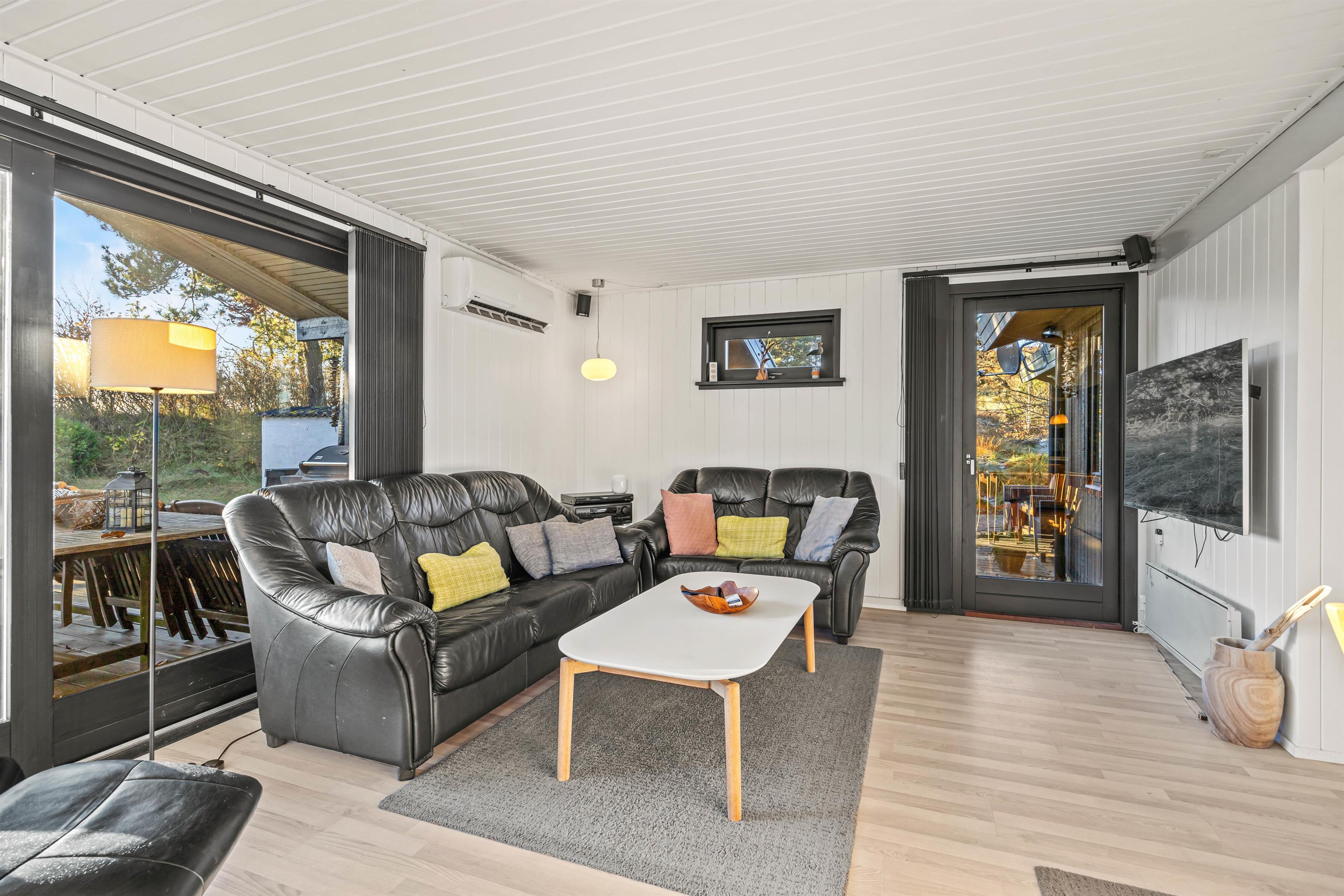 På den åbne og overdækkede terrasse venter hyggelige havemøbler, så I kan nyde lune sommeraftener, mens sommerhusets egen grill sørger for kulinariske højdepunkter. Til børnene er der både en sandkasse og en gynge, så de kan få mest muligt ud af fritiden udendørs.