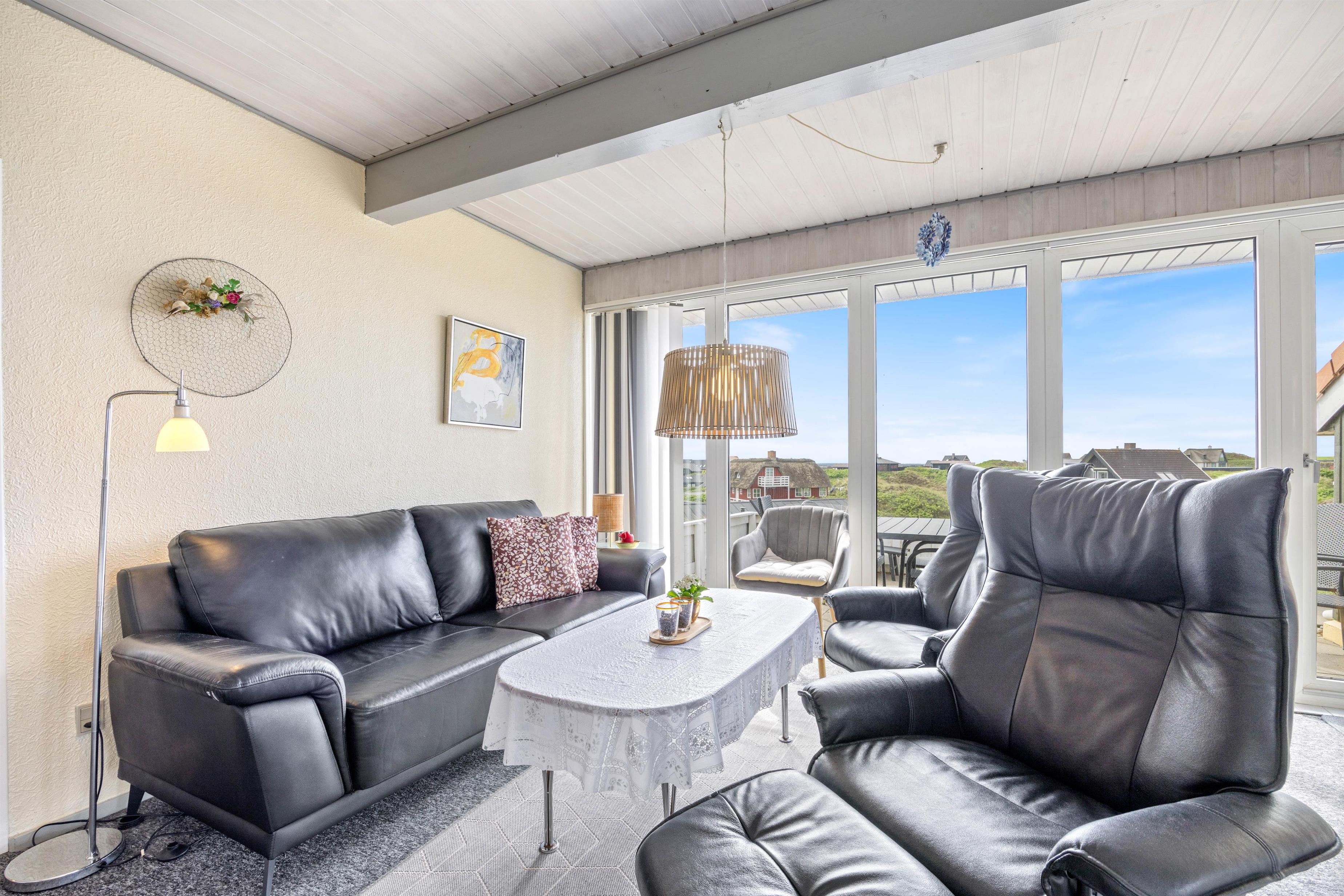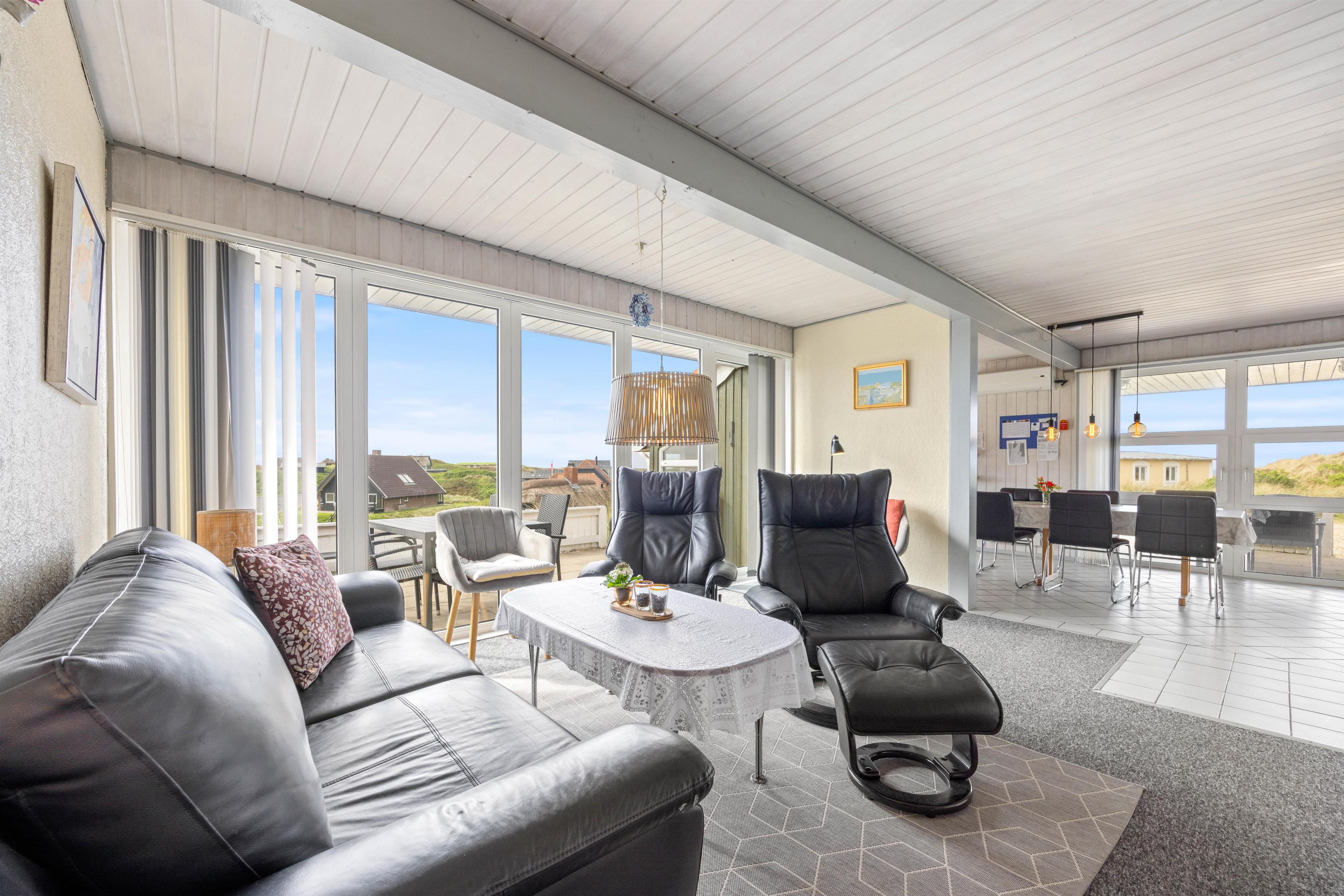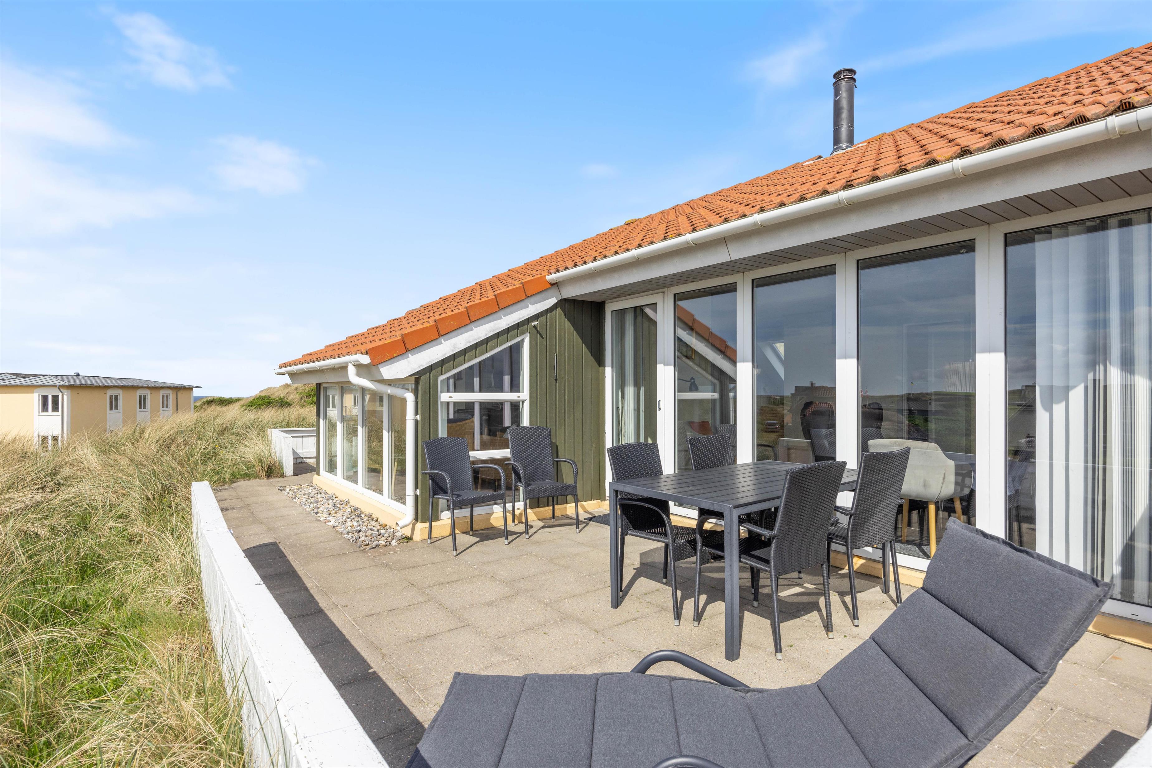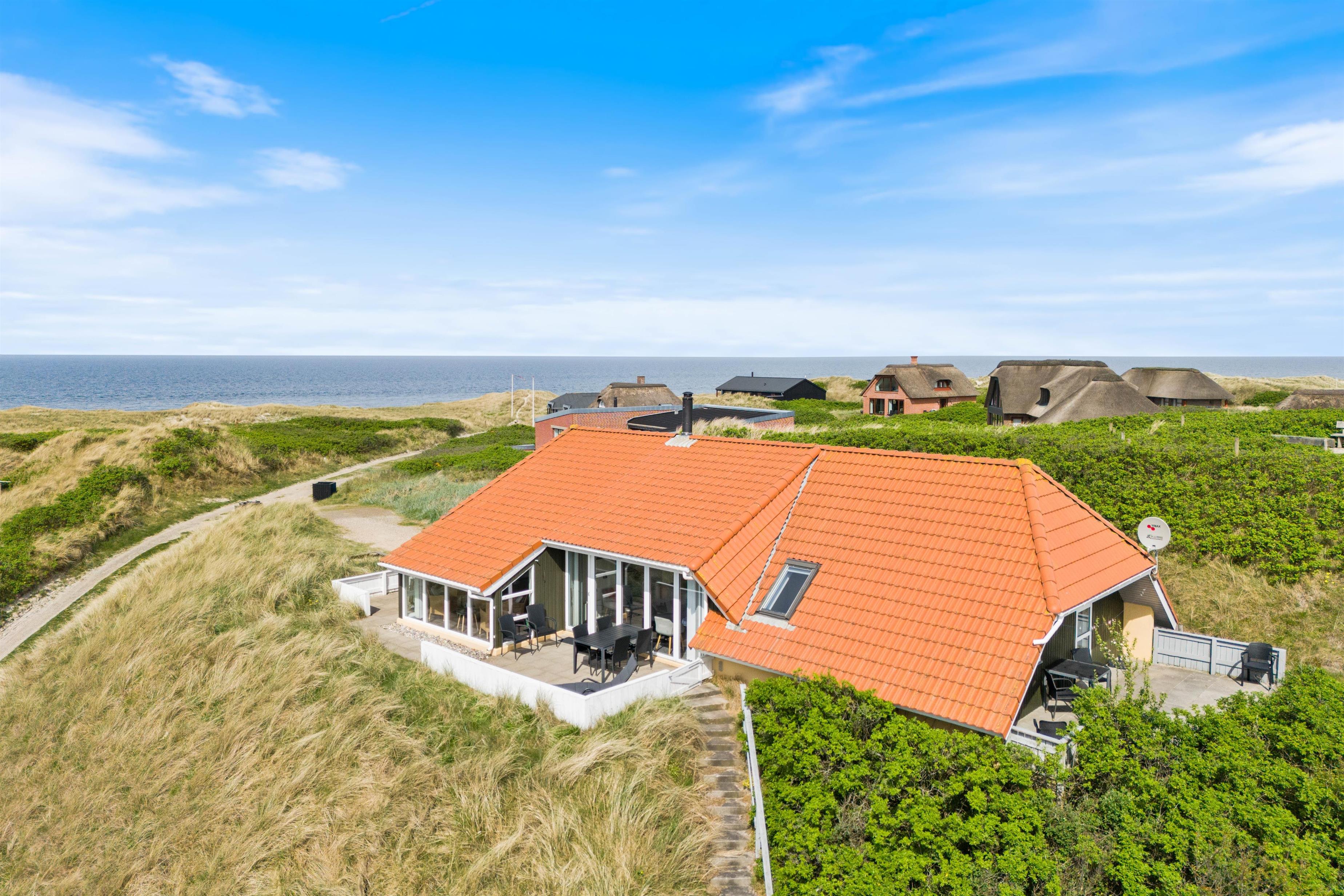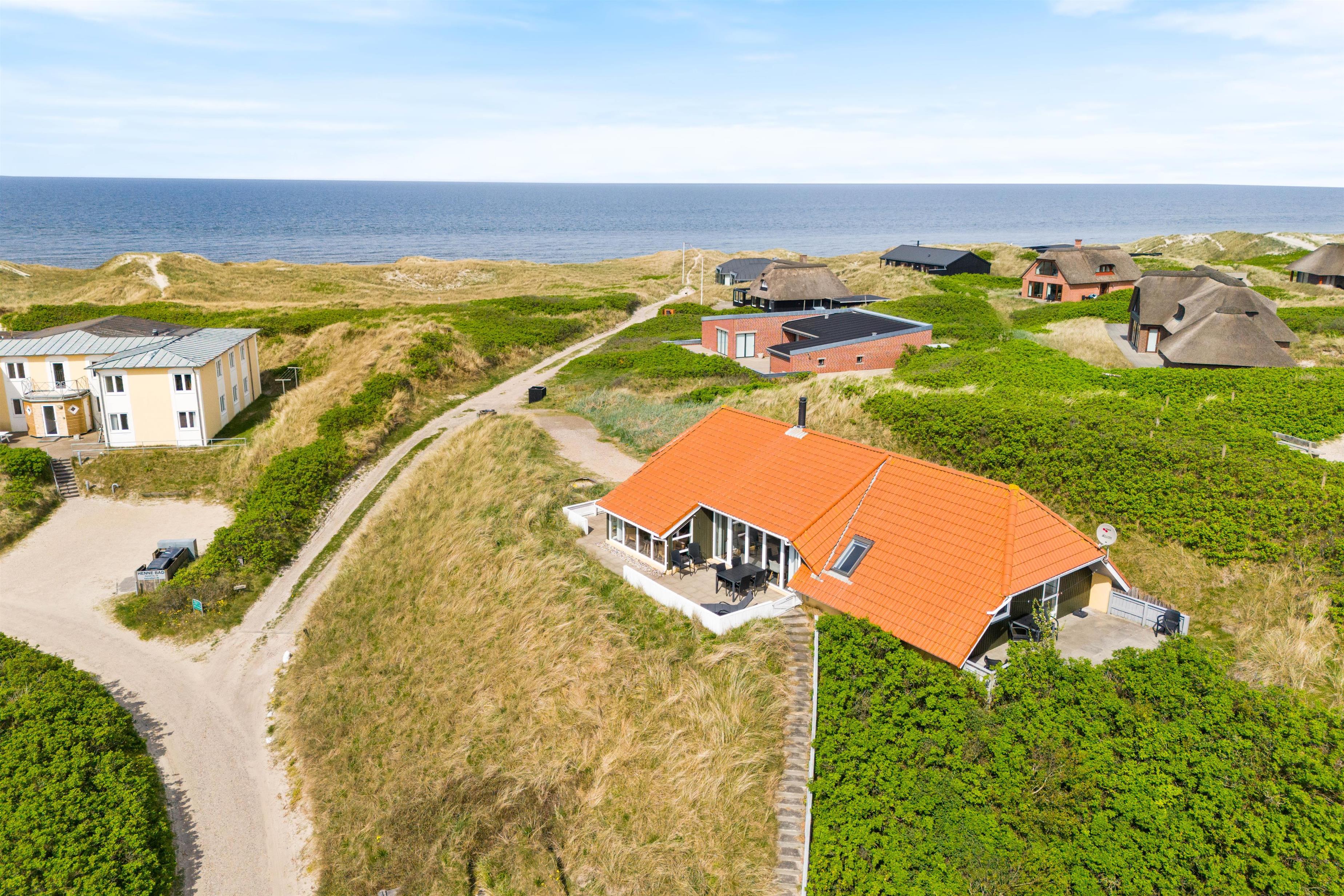 Sommerhusets beliggenhed er helt fantastisk; midt i Henne Strands lyngklædte sommerhusland og lige ved stranden. Det brusende Vesterhav ligger kun 150 meter fra jeres ferieadresse, og den kilometerlange sandstrand er et mekka for både store og små. Vesterhavet indbyder både til en kølig dukkert, drageflyvning eller skønne lange gåture – her er skønt uanset årstiden.