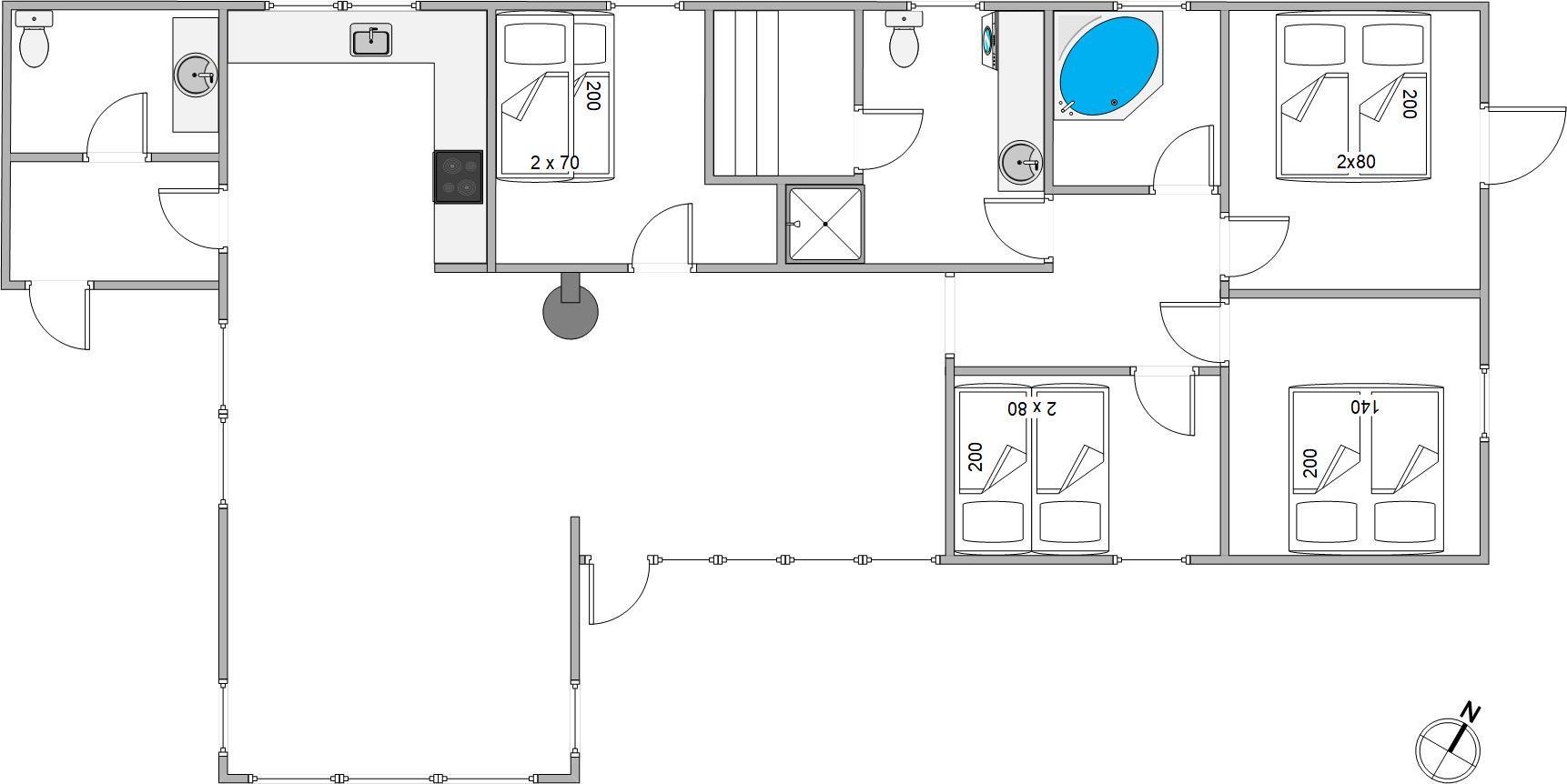 Sommerhuset på Gyvelvej 30 har plads til 6 gæster, og her er 4 soveværelser, som I kan fordele jer på. Her kan I slappe af og samle kræfter efter en dag fyldt med eventyr på stranden. Det ene værelse er udstyret med en køjeseng og bliver et hit hos familiens mindste. Efter en dag ude i naturen kan I nyde en varm sauna eller slappe af i sommerhusets tømmespa.