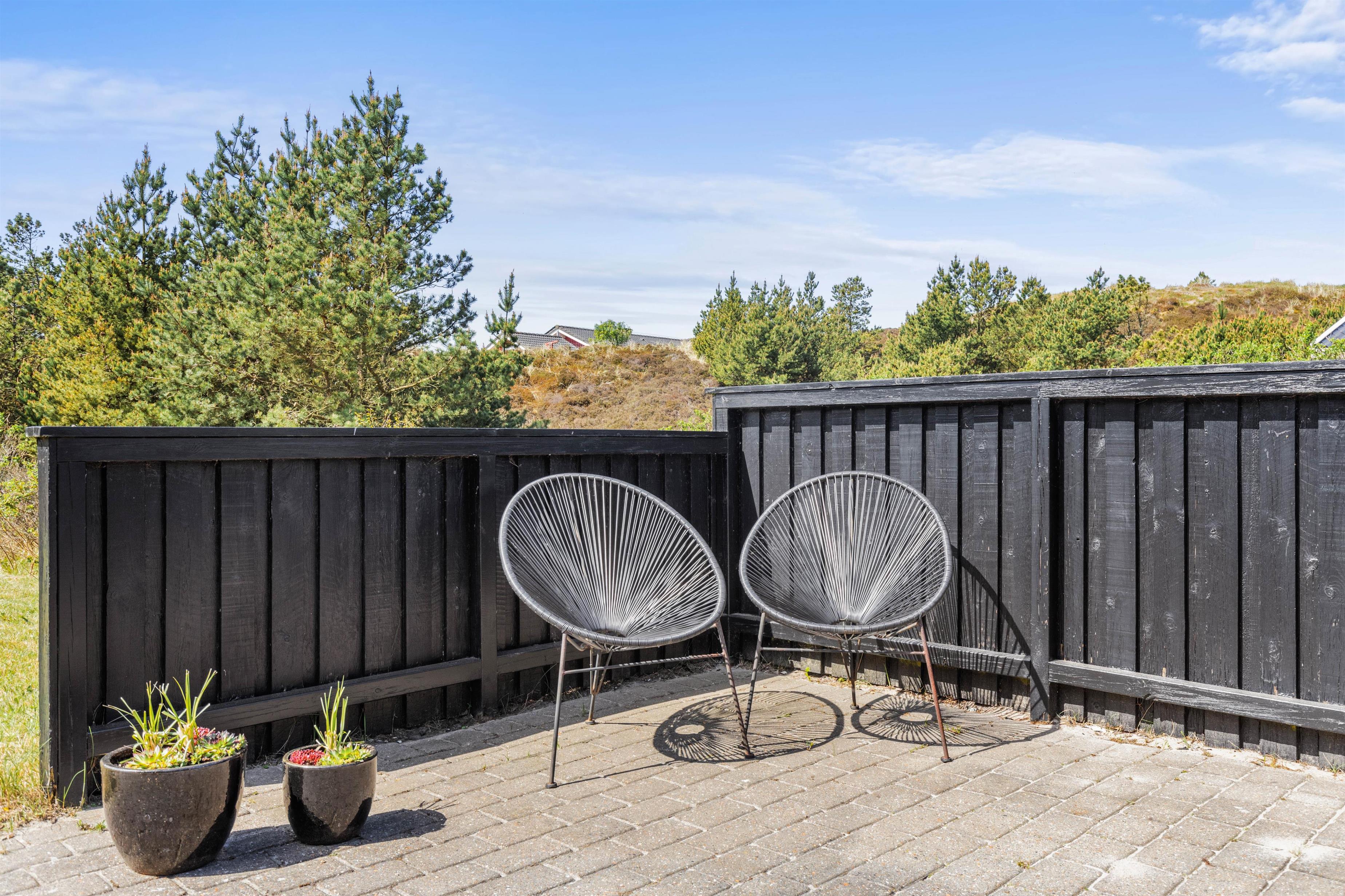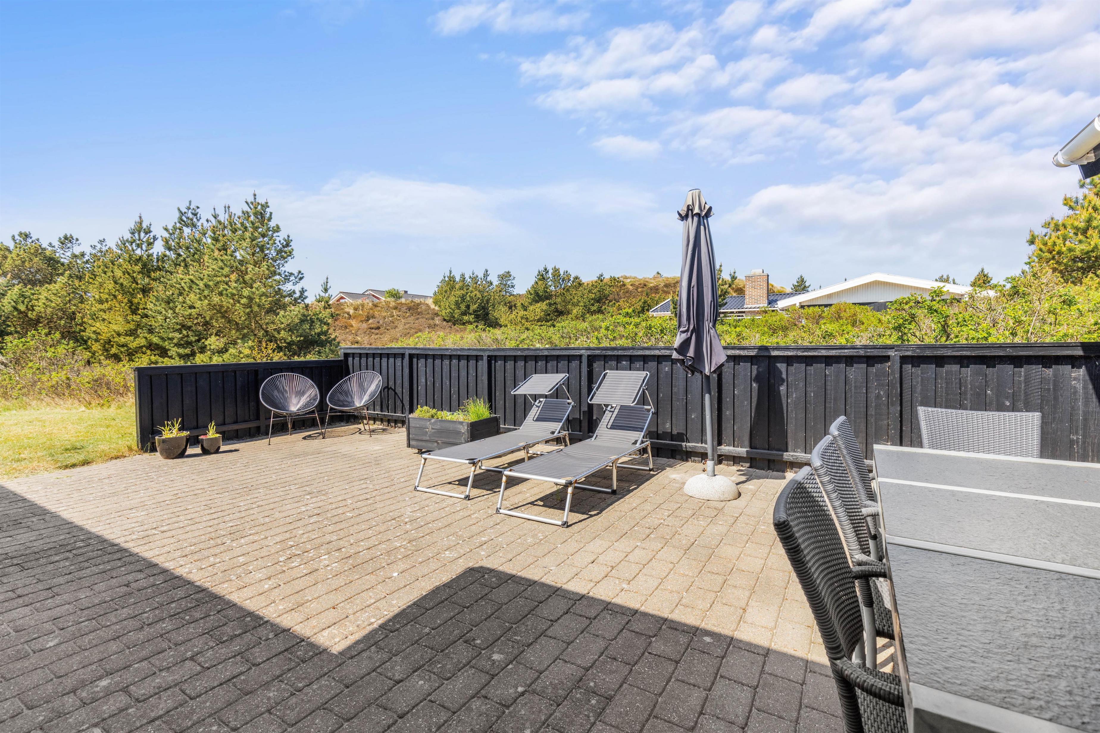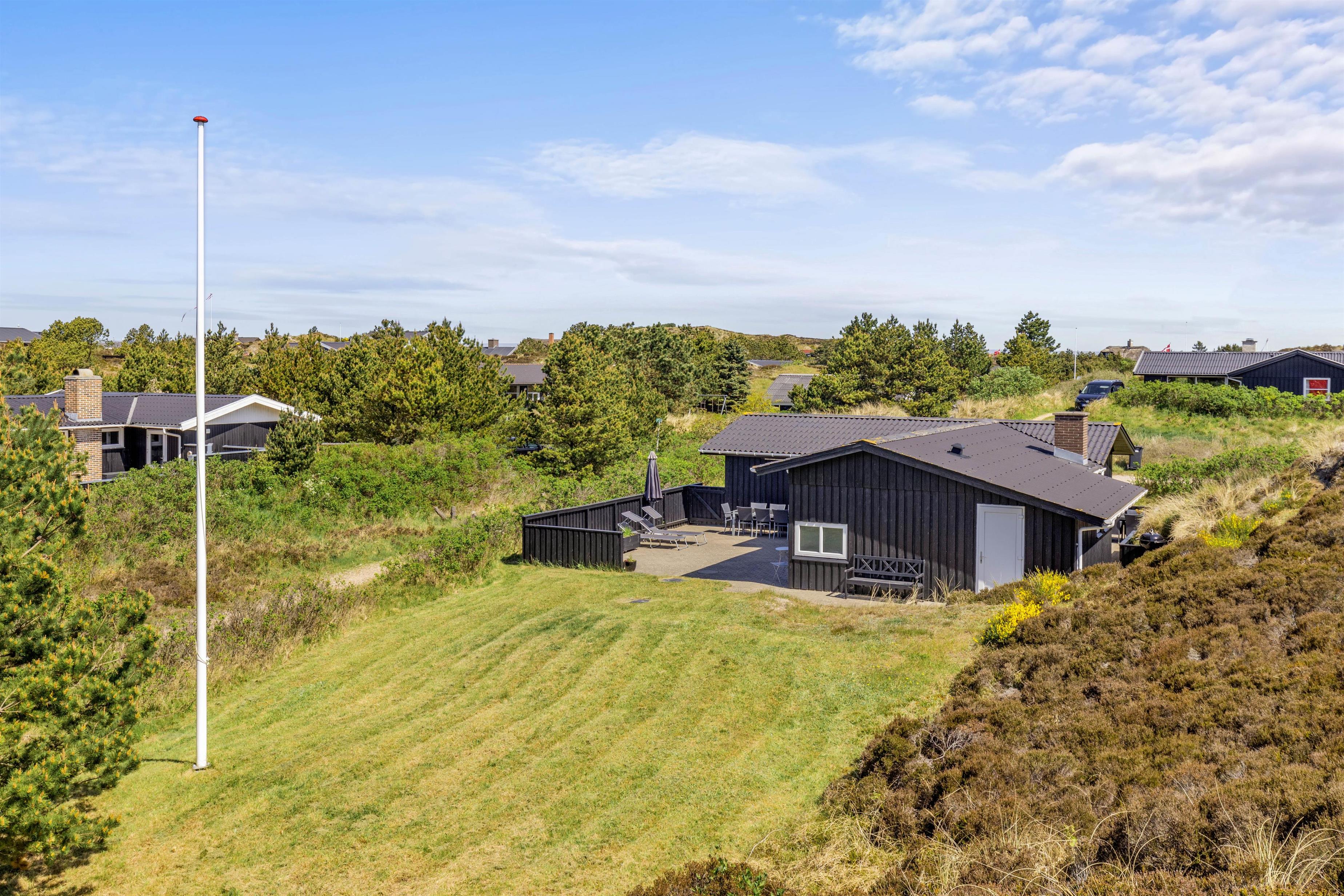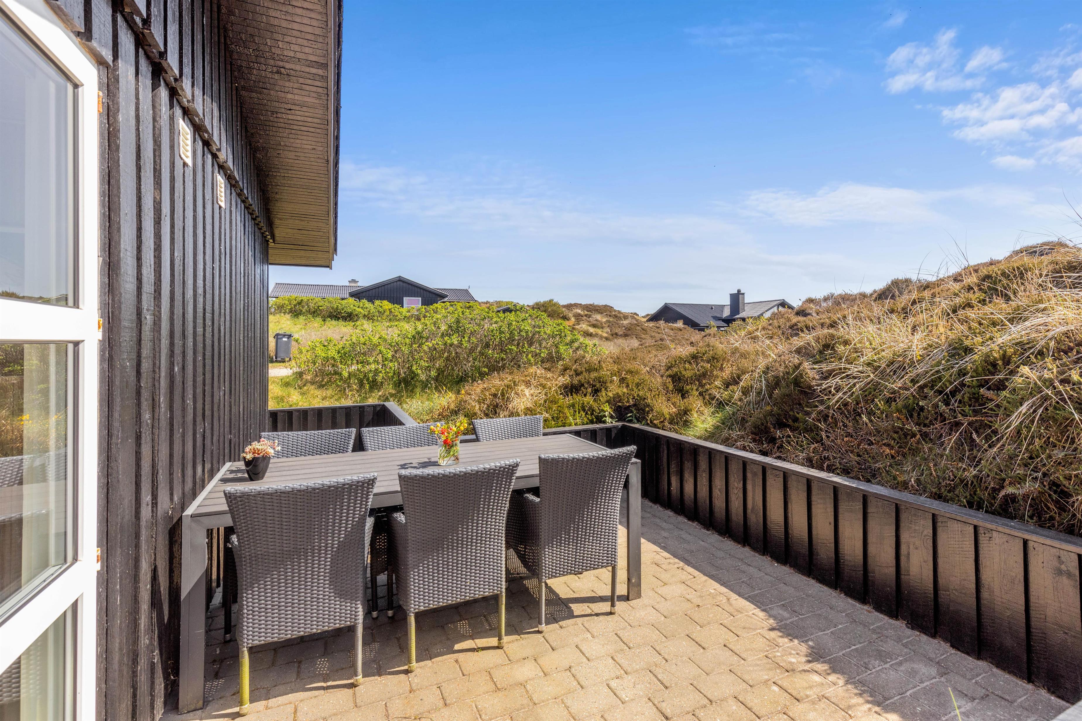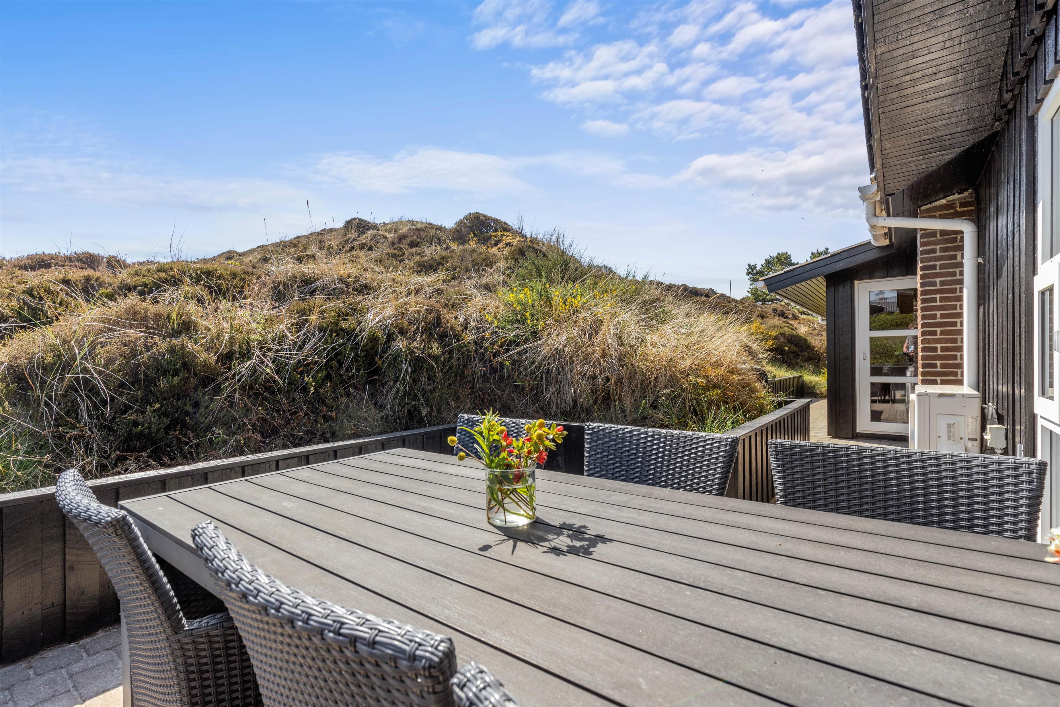 Det dejlige feriehus er beliggende på en 1717m2 stor klit/naturgrund. Rundt omkring feriehuset er der anlagt flere terrasser, og vil I uden tvivl kunne finde jer et plet i solen og i læ for vinden, imens I læner jer tilbage i de komfortable terrassemøbler med en friskbrygget kop kaffe og nyder den friske havluft, fuglenes sang og havets brusen. Feriehuset er et vidunderligt sted til at slappe af, nyde solen og glemme hverdagens stress.