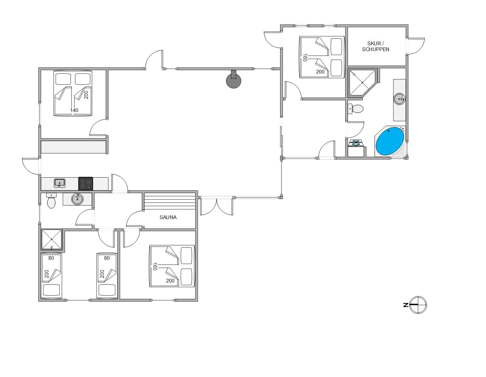 Modsat det ene badeværelse ligger saunaen, hvor I kan slappe af efter en lang tur på stranden. Bagefter kan I tage et varmt bad i boblebadet for virkelig at slappe af i musklerne. Så afslappende, at I efterfølgende kan kravle i seng i et de gode indrettede soveværelser og lade batterierne op igen. Feriehuset er udstyret med 4 soveværelser, hvoraf 3 af værelserne er indrettet med dobbeltsenge. Det fjerde værelse har 2 enkeltsenge.