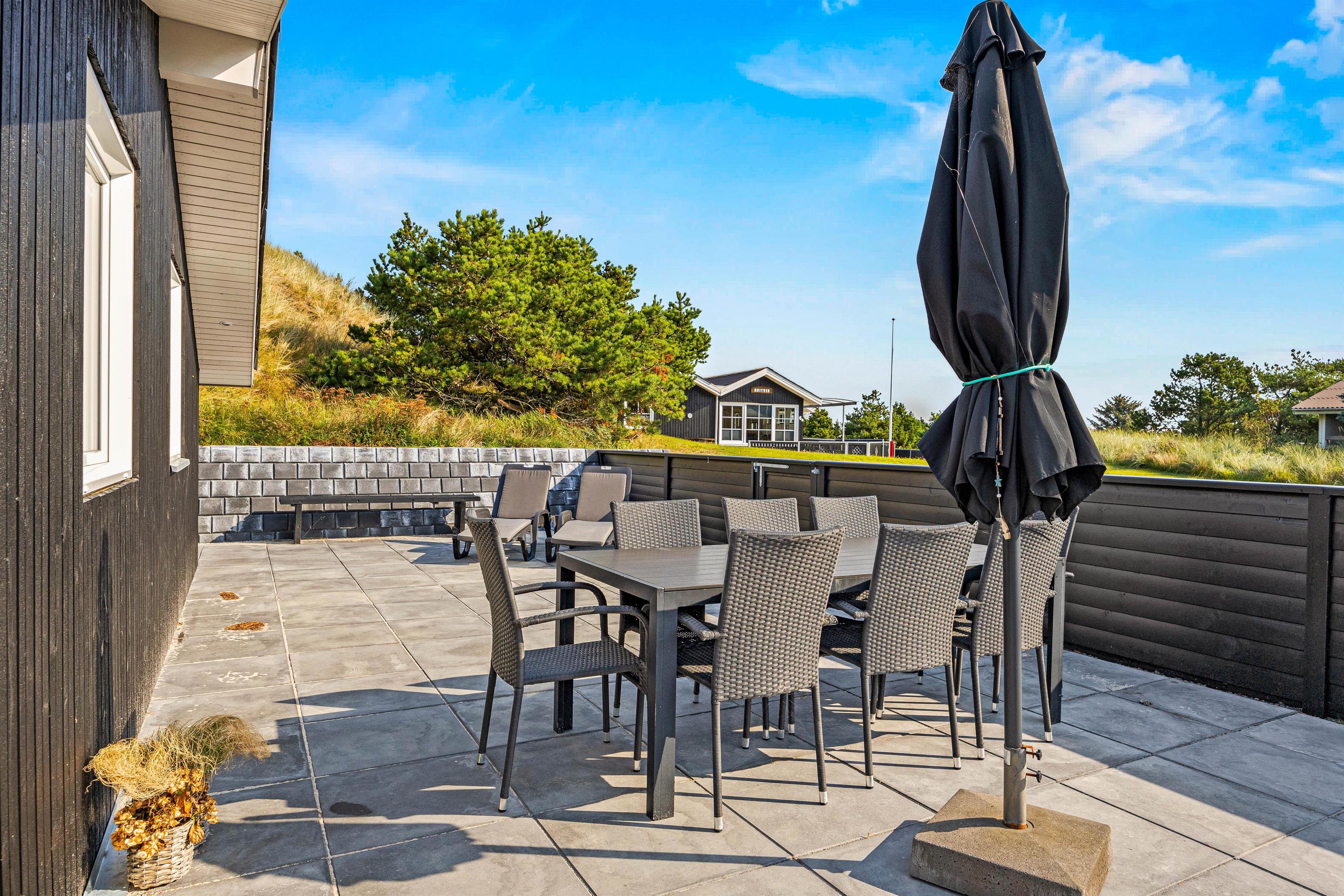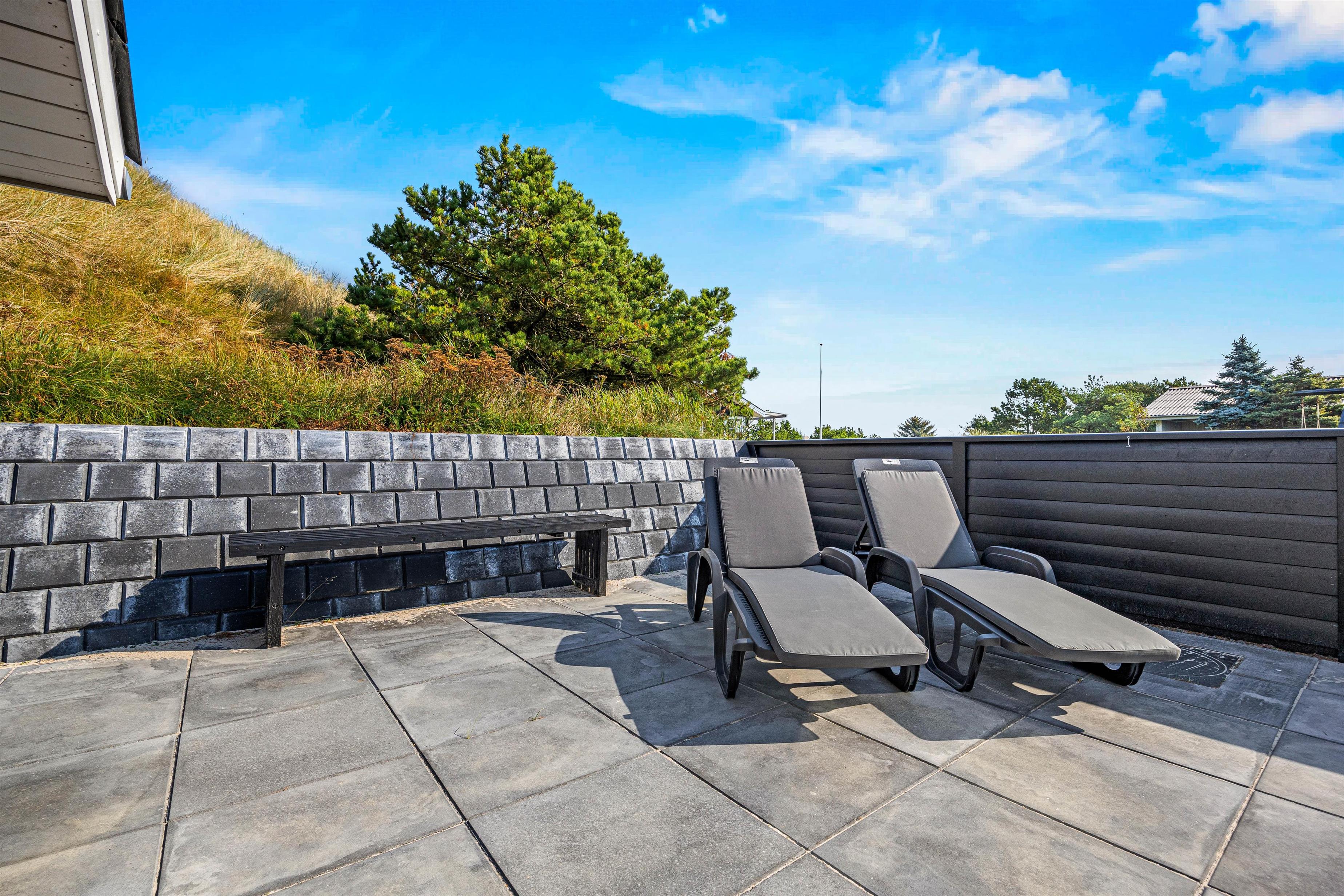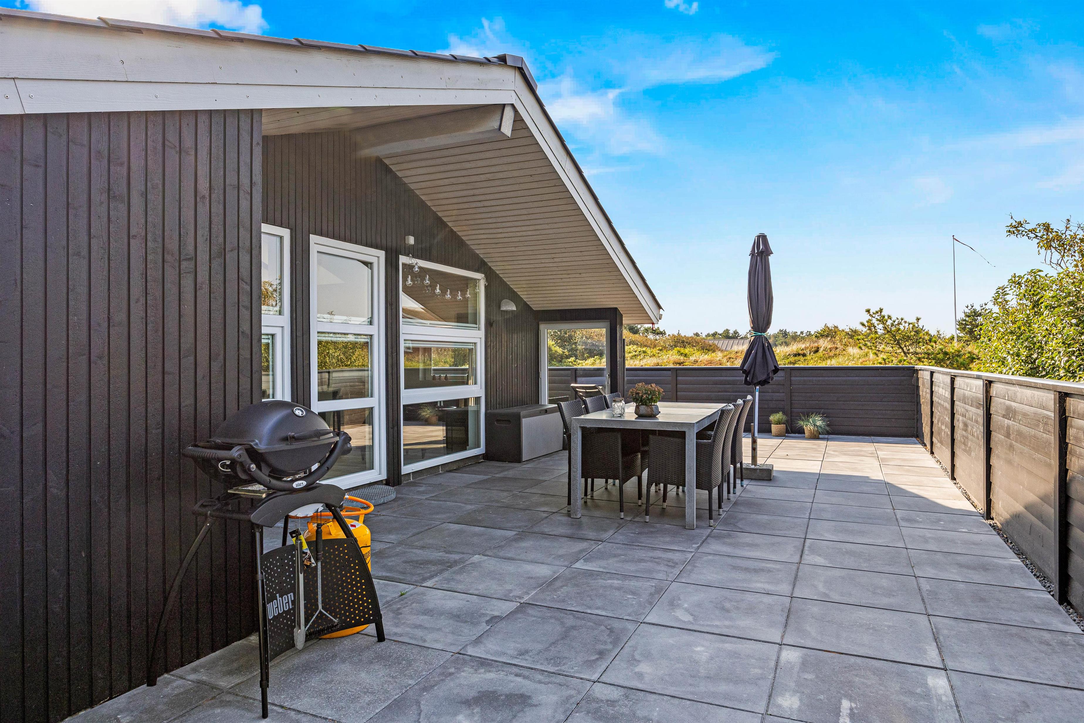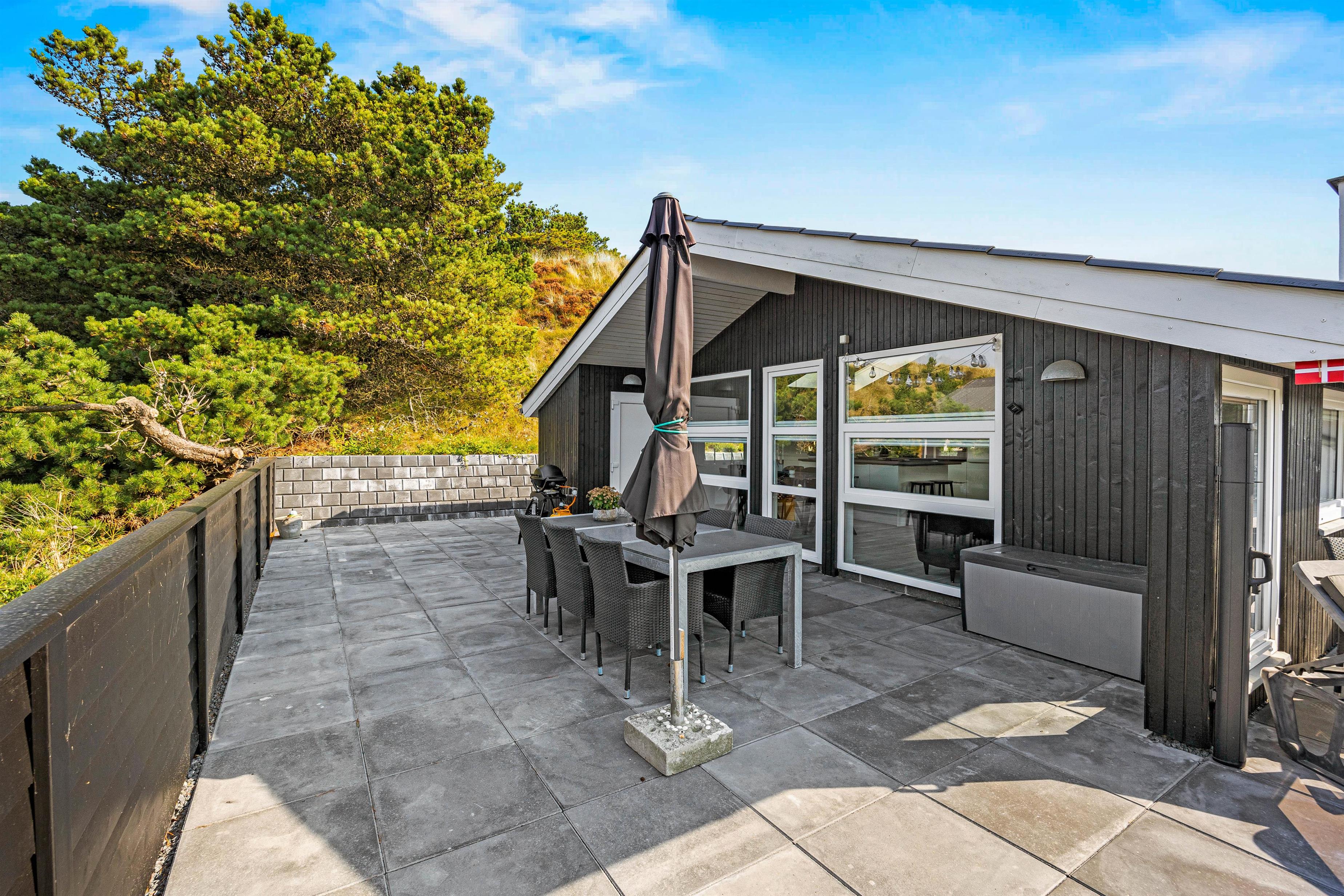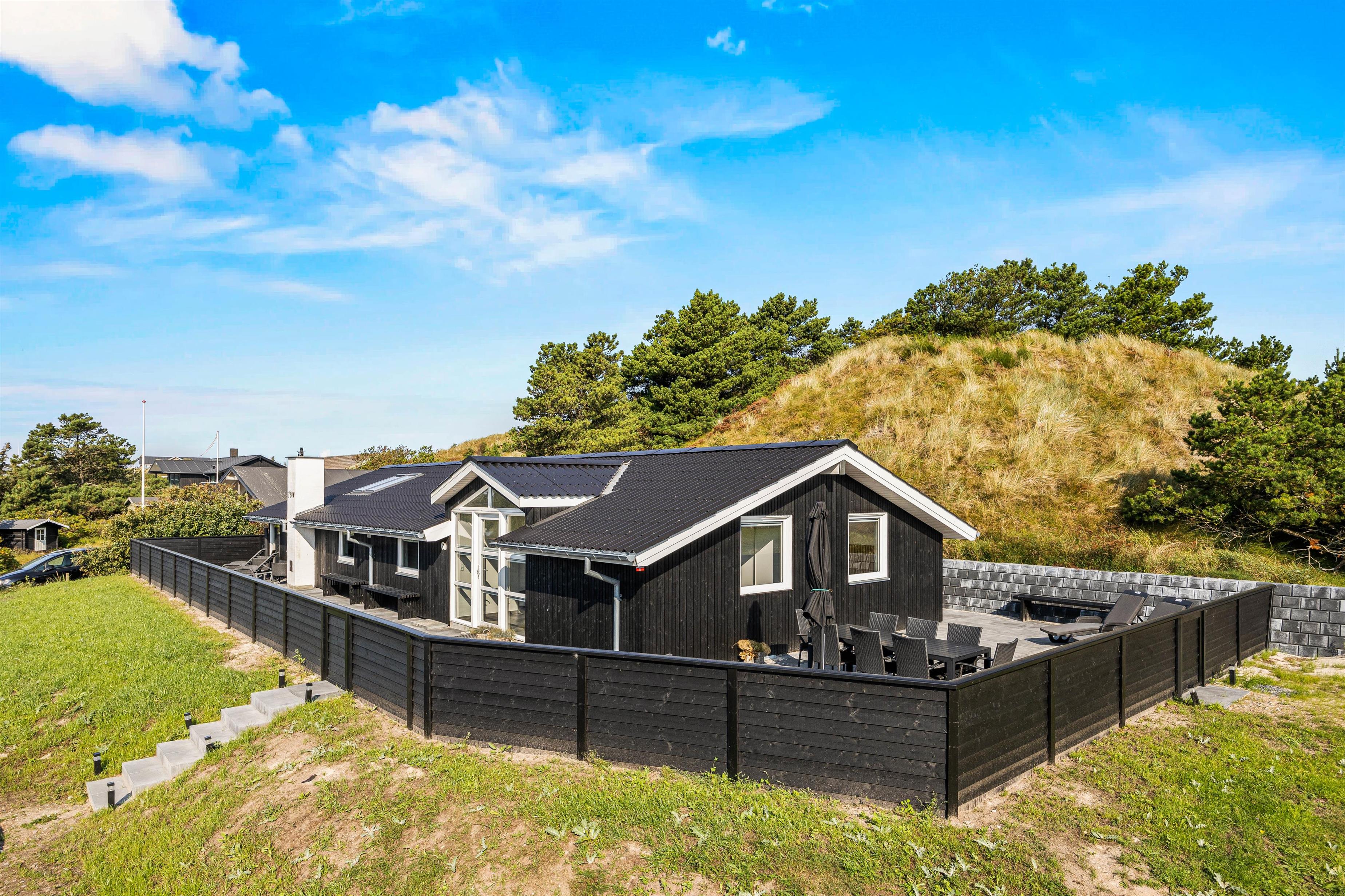 Med kun 700 meter til Vesterhavet og dens kridhvide strand, og 500 meter til de nærmeste indkøbsmuligheder, er beliggenheden af dette sommerhus på Høgevej 6B i Henne Strand helt perfekt. Sommerhuset ligger på en klitgrund med en naturskøn udsigt, og den indhegnede store terrasse gør det nemt at holde øje med både børn og hunden. Med komfortable havemøbler til rådighed er her nemt at nyde solskinsdagene udendørs.