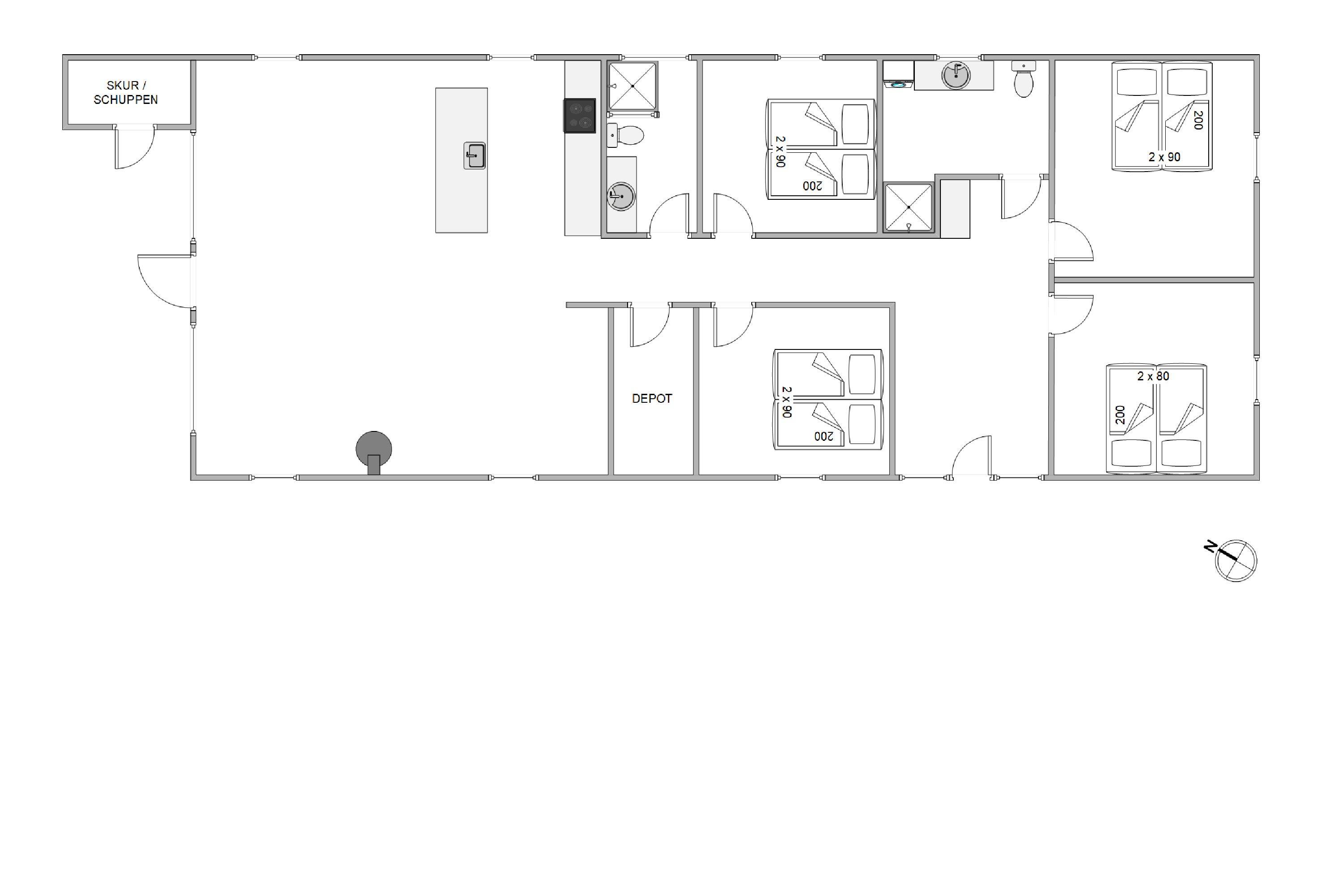 Sommerhuset rummer plads til 6 personer, hvilket gør det ideelt til en ferie med både familie og venner. Her er 3 rummelige soverum, hvoraf 2 er indrettet med dobbeltsenge. Det tredje værelse er indrettet med 2 enkeltsenge.