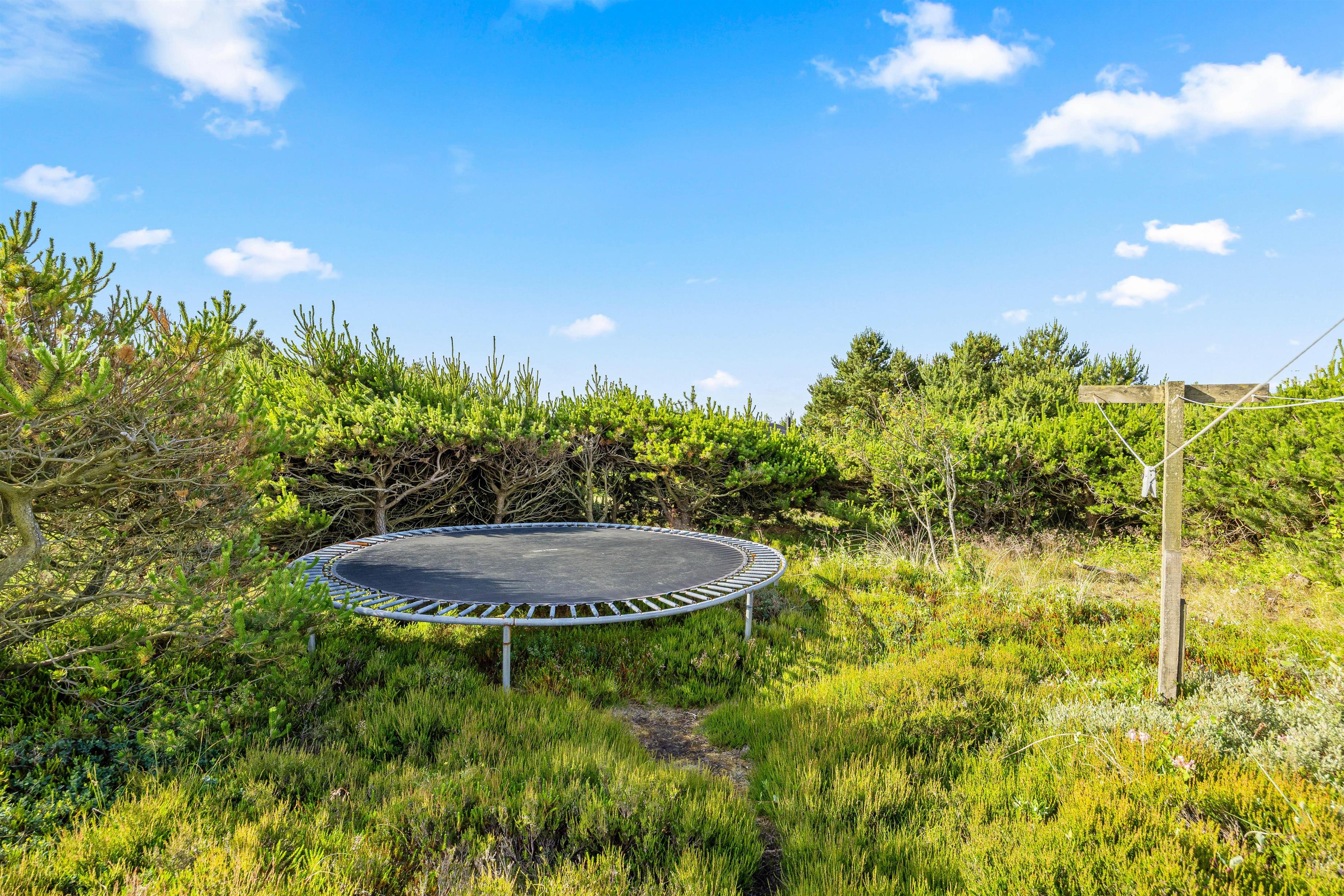 For de energiske er det tid til at få armene op i vejret på den indbydende trampolin, mens de små kan lege på gyngen lige ved siden af. Alt sammen lige uden for feriehusets døre.